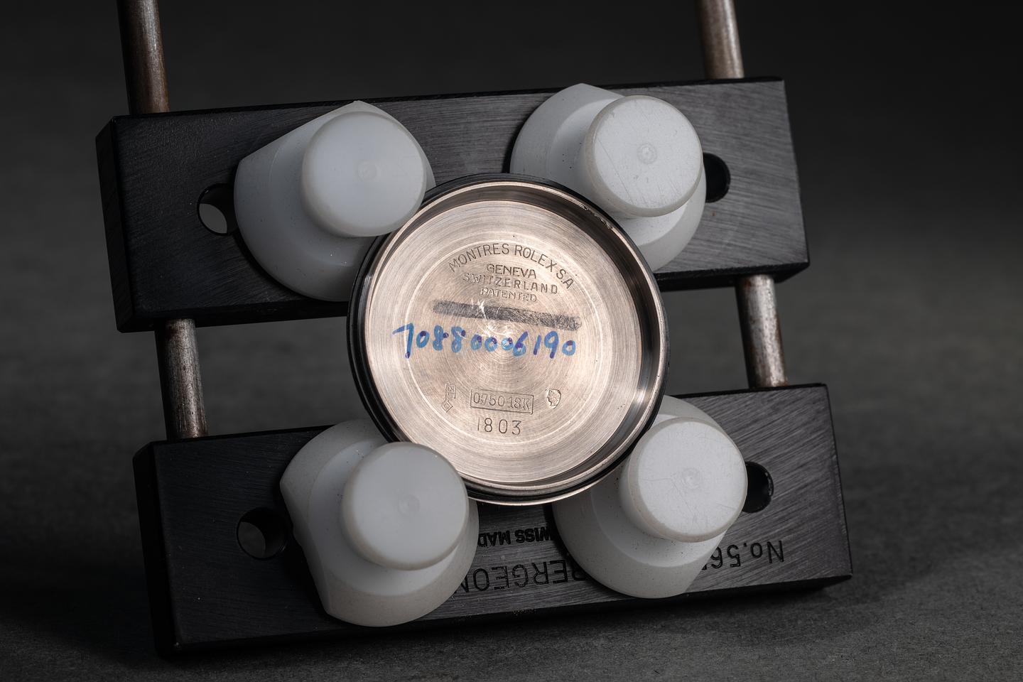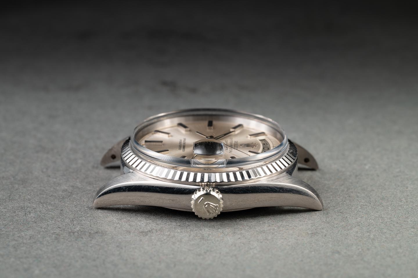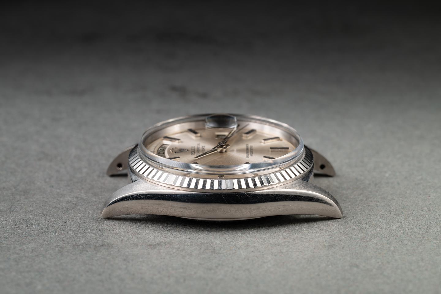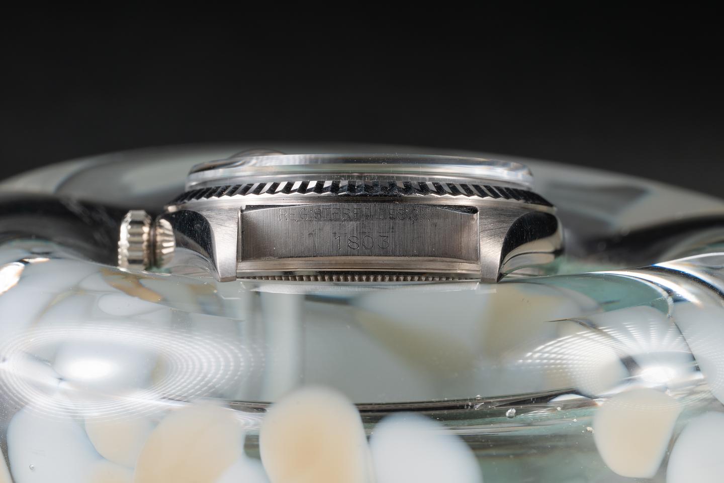 Case: The sharp 36mm 18K white gold case is excellent, showing only light wear from use. The sharp 18K white gold fluted bezel is also in excellent condition, showing only light wear from use.