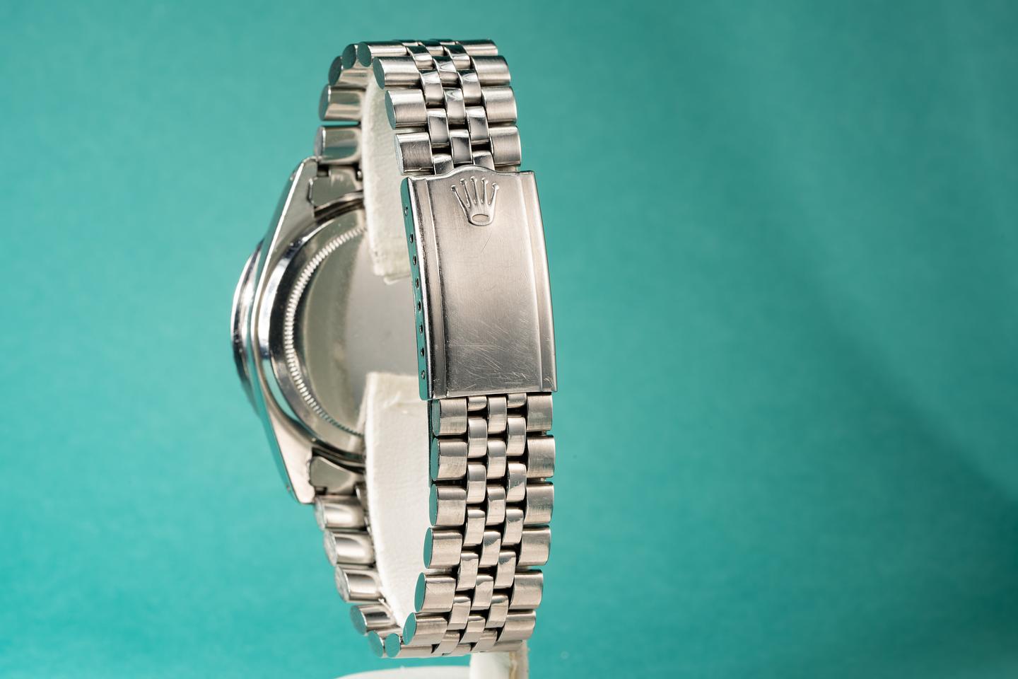 Bracelet: Excellent made in Mexico oval link jubilee bracelet. The bracelet has 20 links and shows light stretch considering its age.