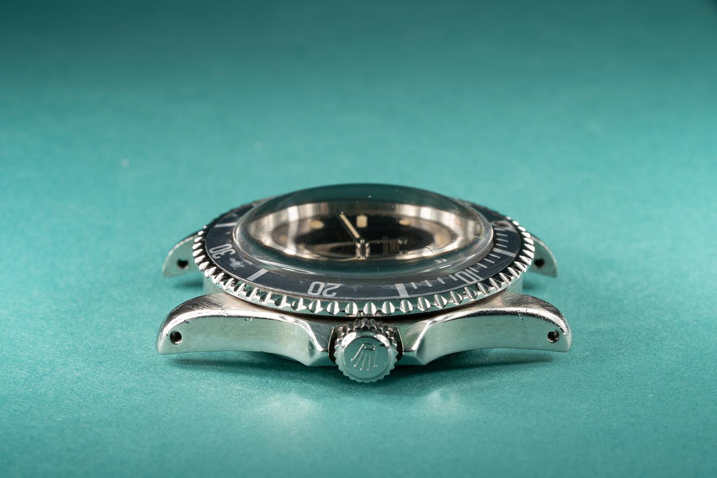 Case: Excellent pointed crown guard case with a sleeve polished appearance that has been polished in the past. The bezel has faded to a light blue-grey and shows some light wear from age.