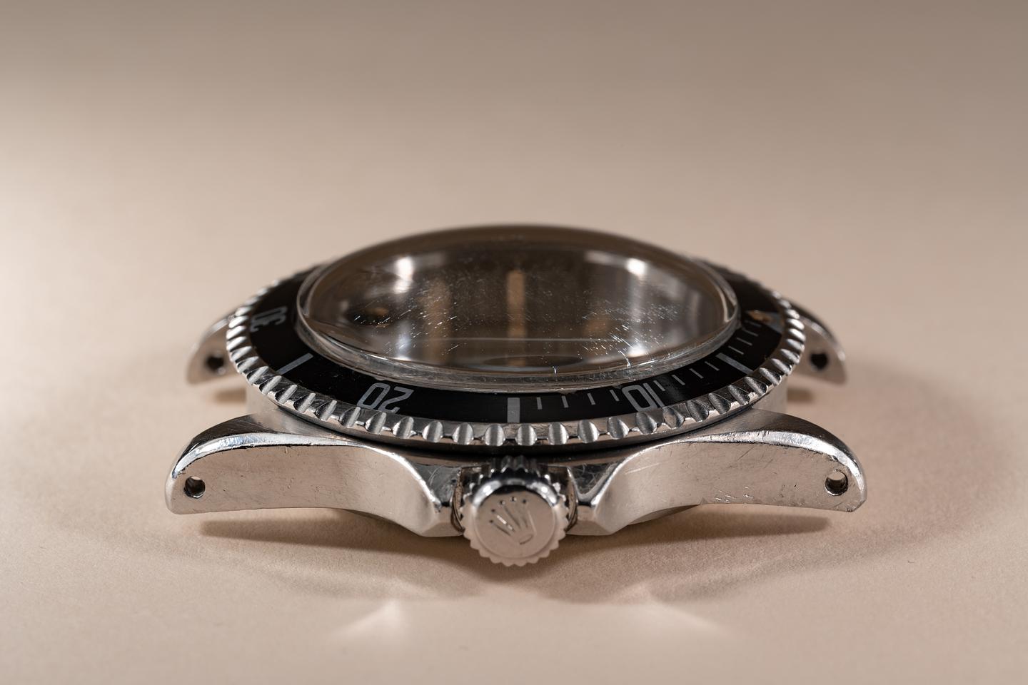 Case: The previously polished case is in excellent condition showing some wear from use. The black bezel insert is also in excellent condition showing only light wear from use. The crystal shows some light crazing from age.