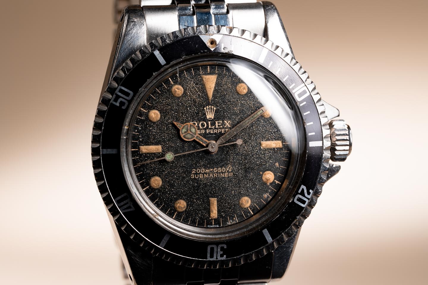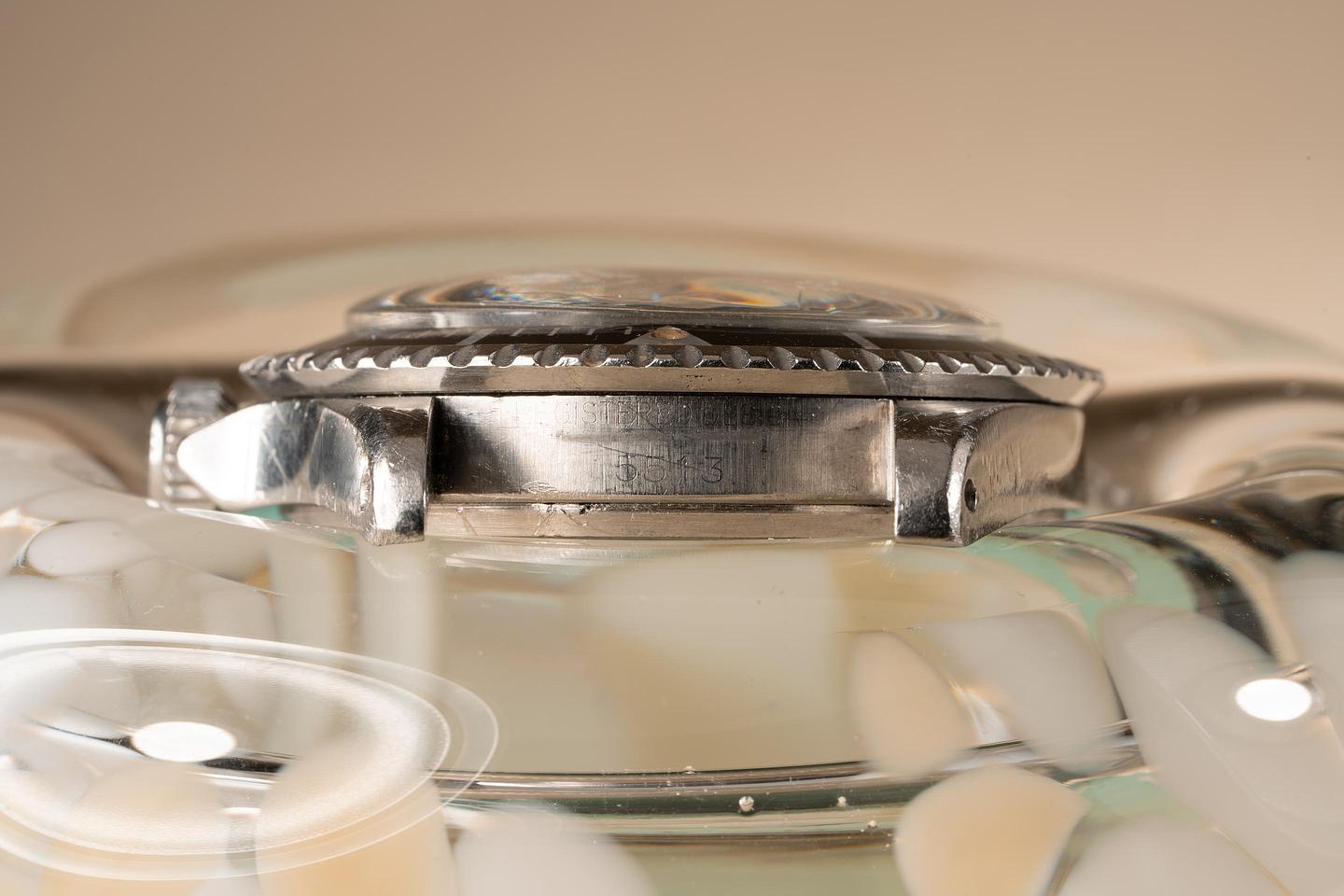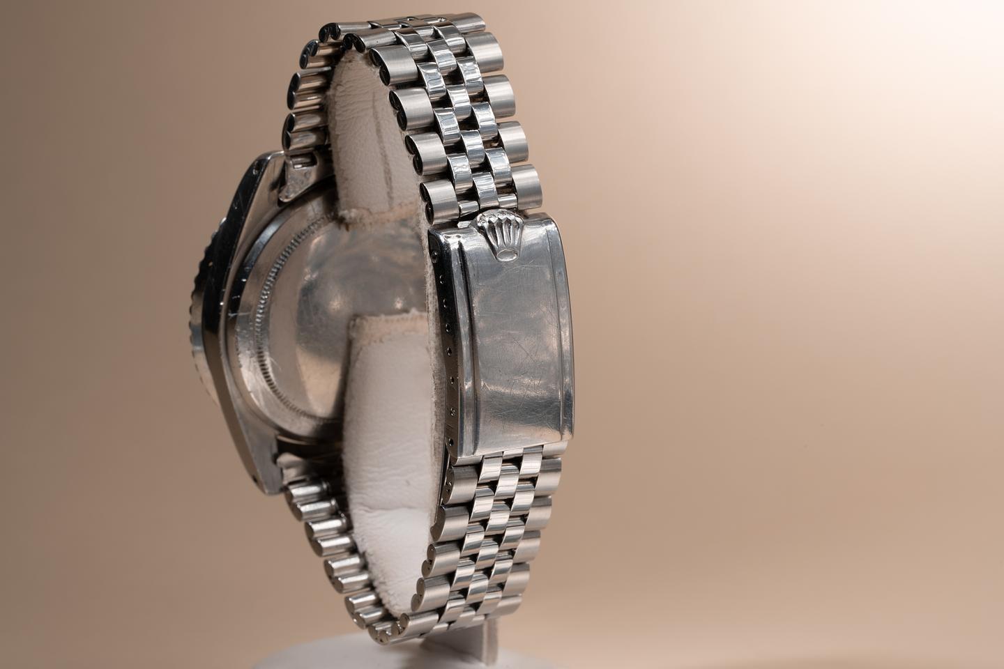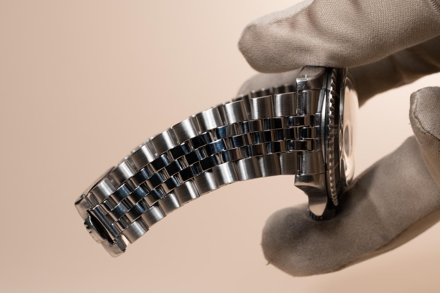 Bracelet: The 20 folded link Jubilee bracelet is excellent showing average stretch for its age. The clasp is stamped with a matching 1963 date code.