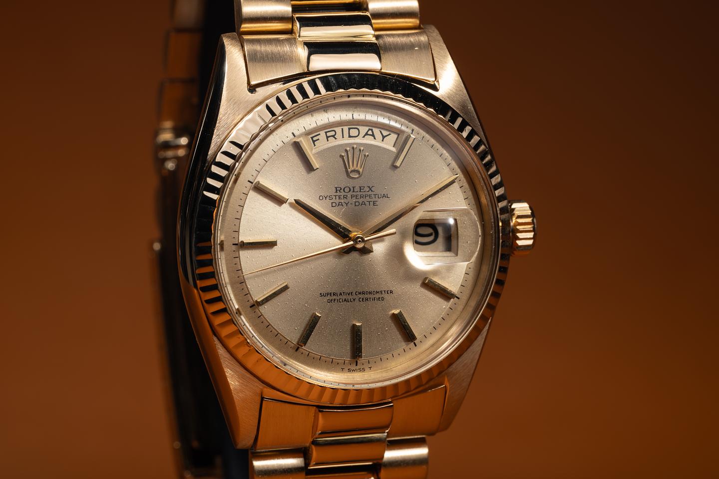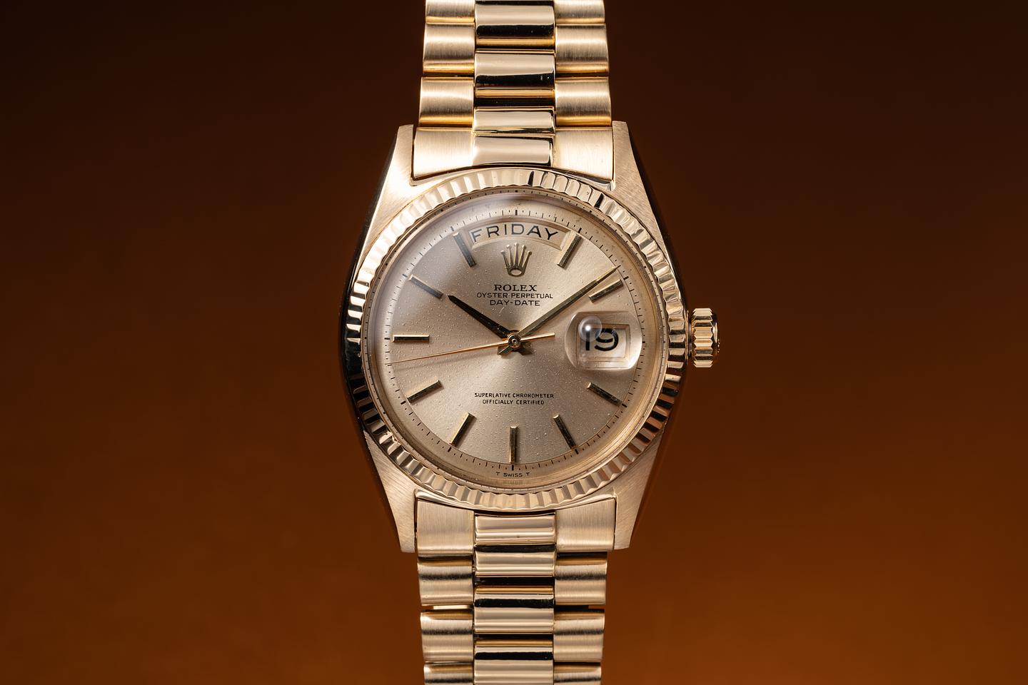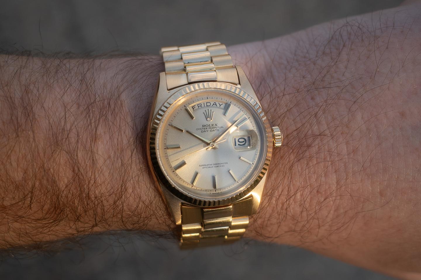 Bracelet: The 19-link 18K yellow gold president bracelet is excellent, showing light to average stretch for its age. The bracelet will fit up to a 7.5in wrist.