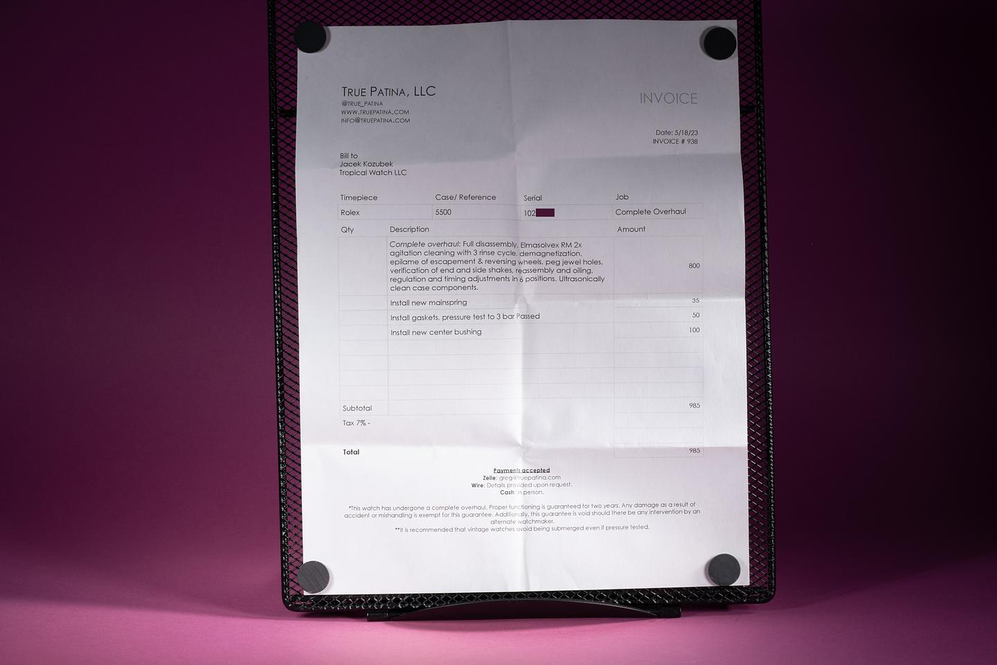 Accessories: May 2023 Service Papers from True Patina.