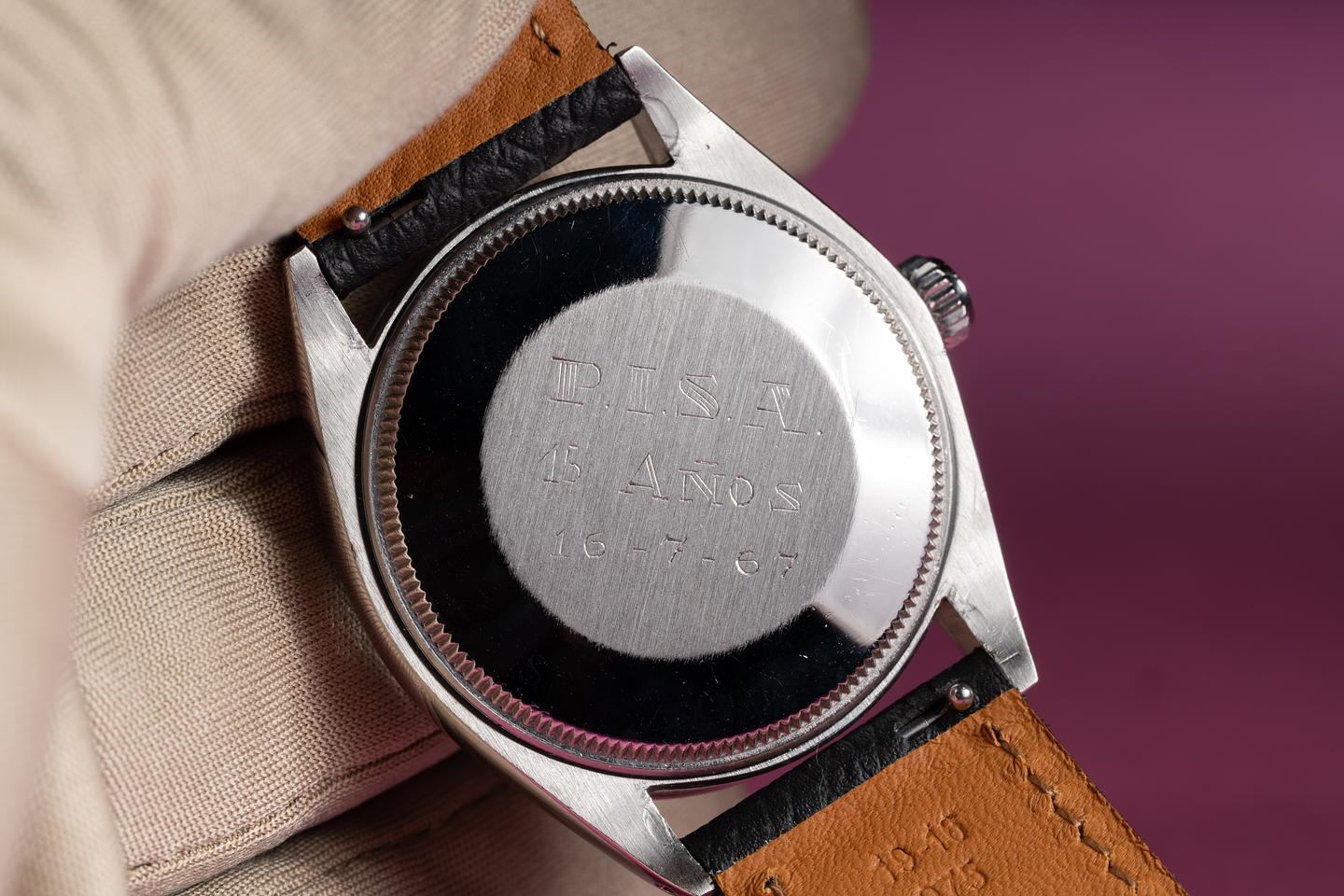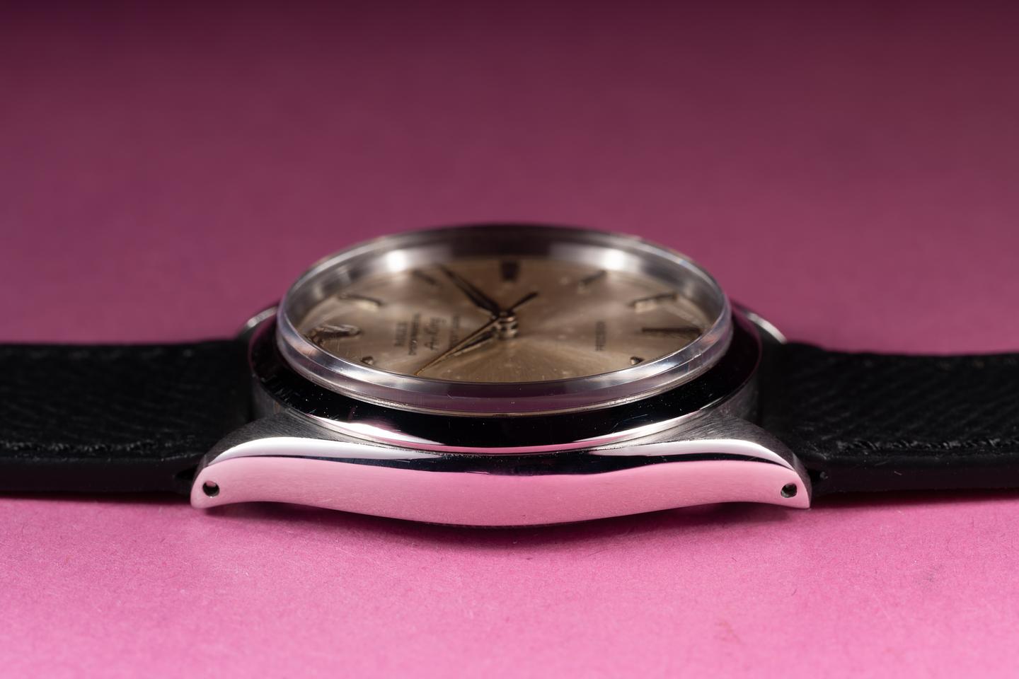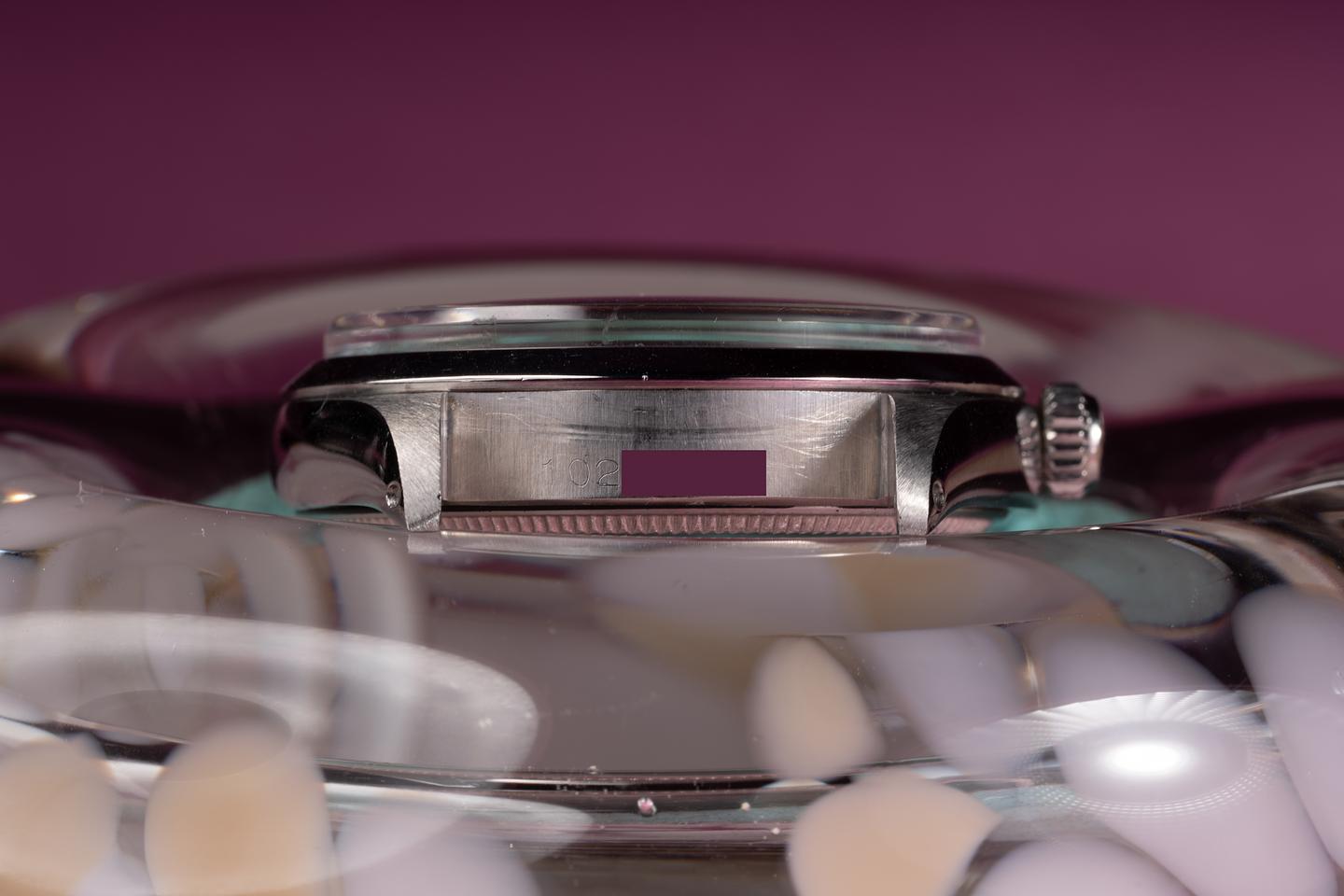 Case: The recently polished 34mm case is excellent showing only very light wear. The smooth bezel is also in excellent condition showing only very light wear.