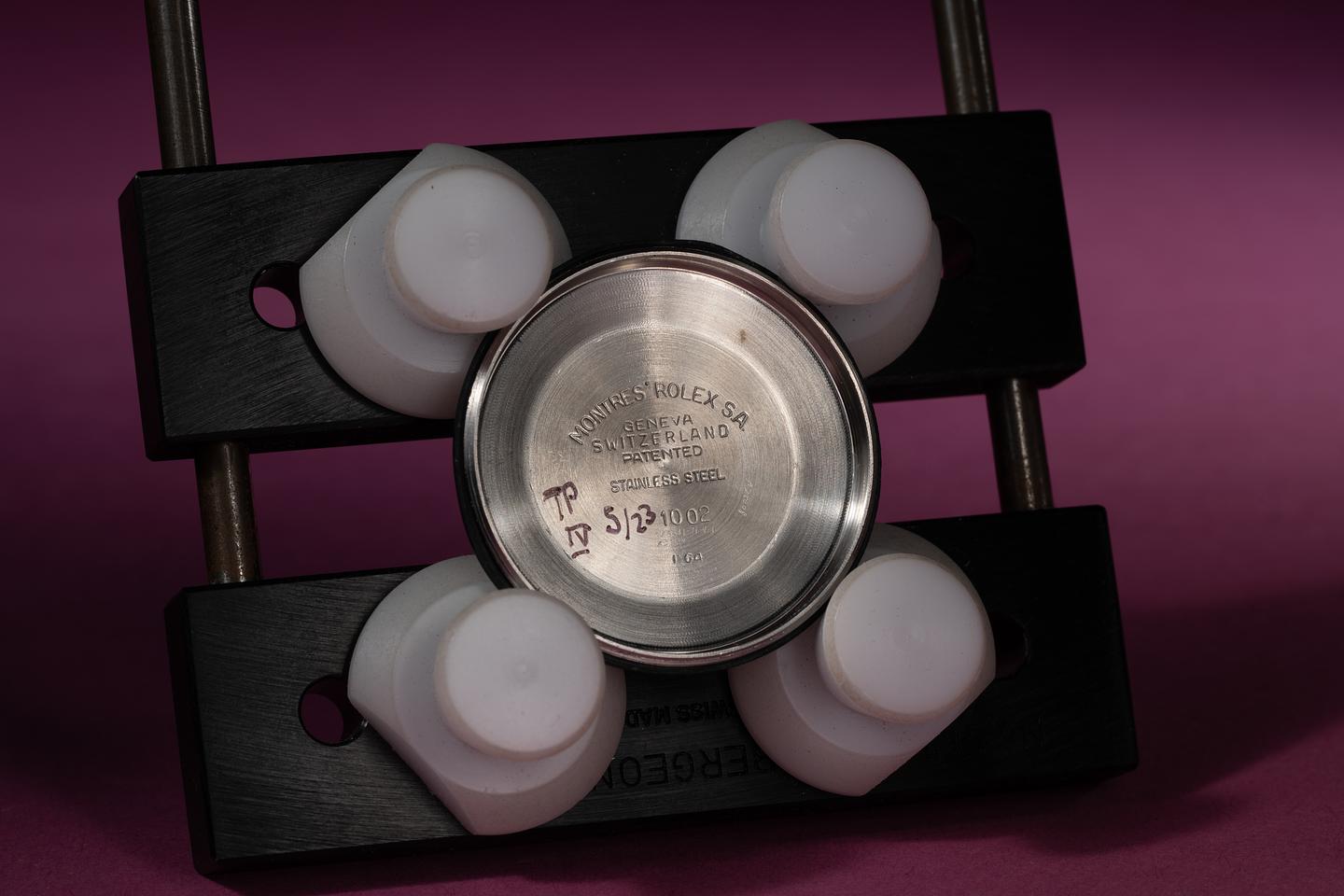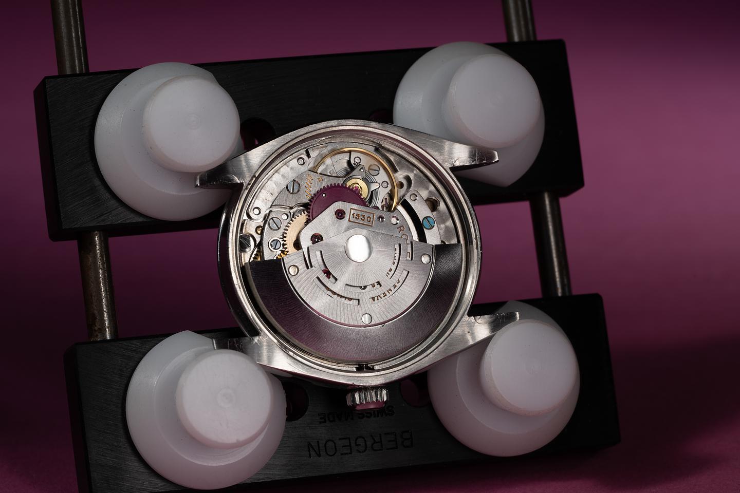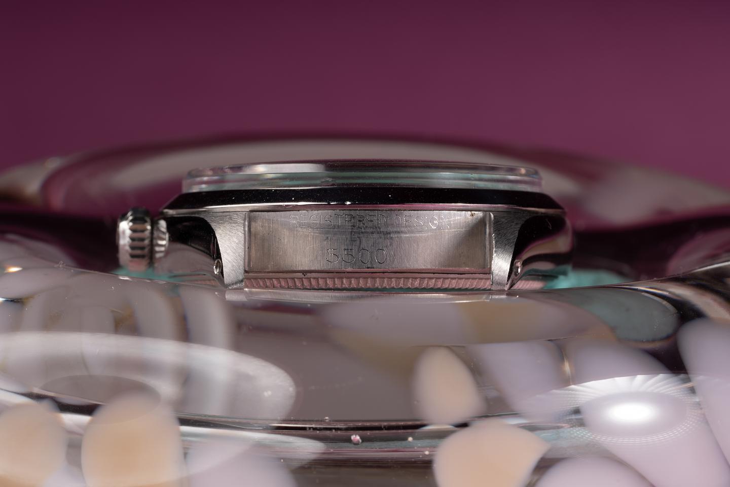 Case: The recently polished 34mm case is excellent showing only very light wear. The smooth bezel is also in excellent condition showing only very light wear.