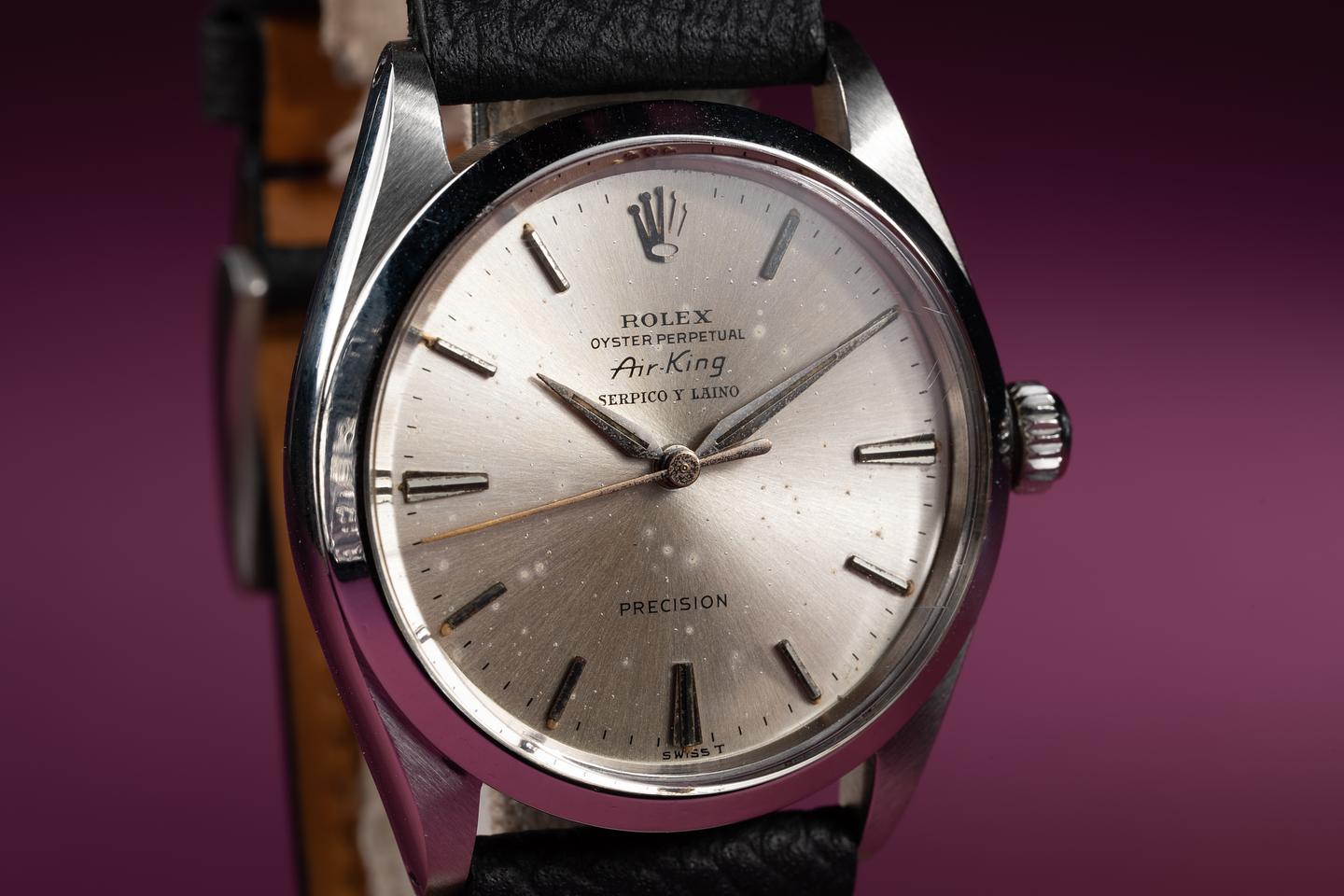 Dial: The silver Serpico Y Laino dial is excellent showing a light speckling patina across its surface. The lume has aged to a warm sandy hue and the hands match perfectly.