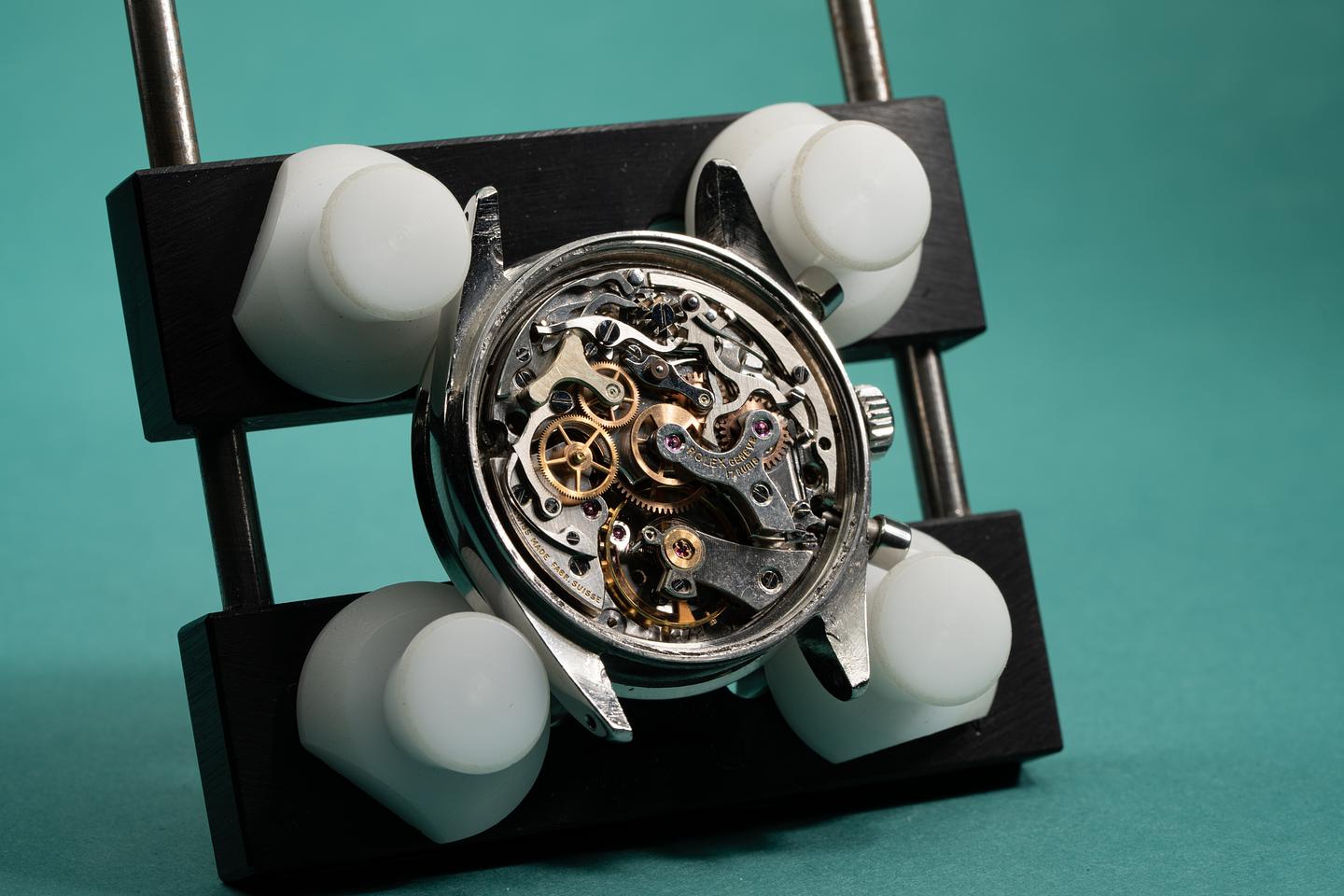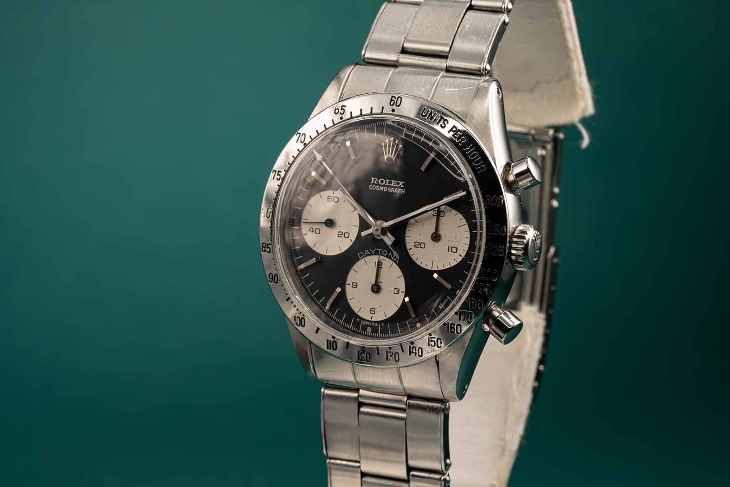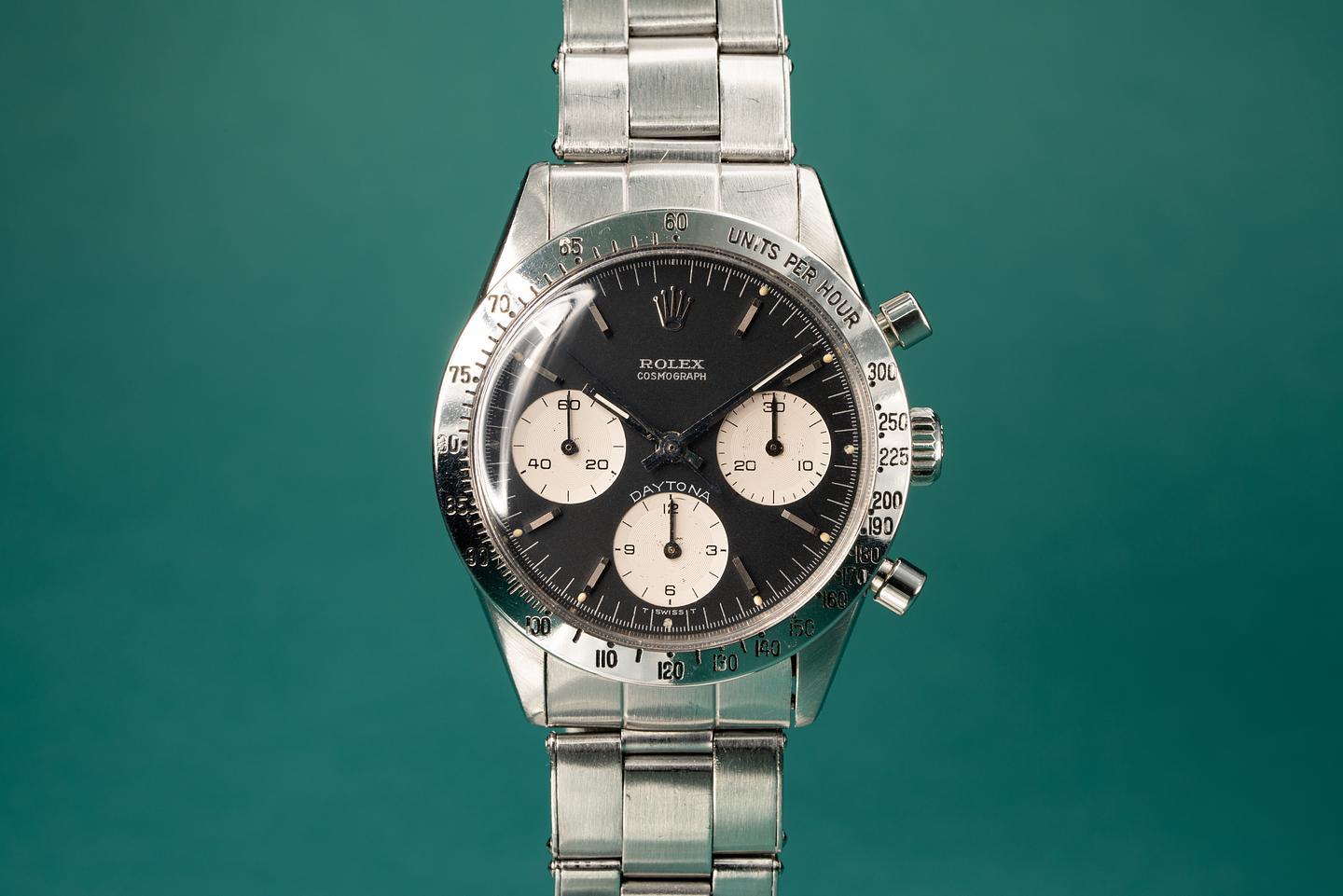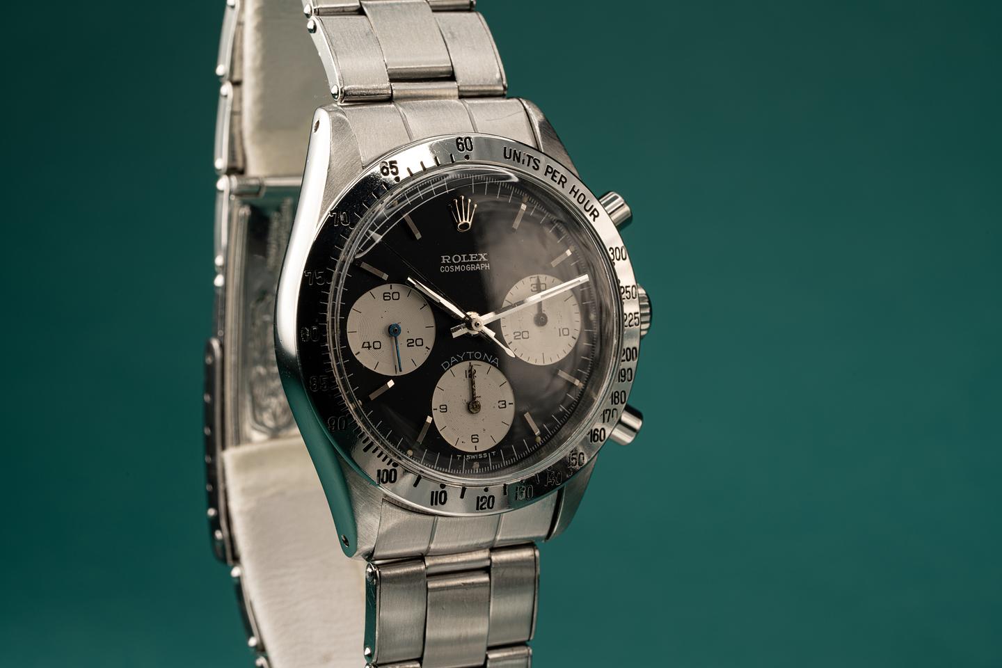 Notes: The slight blue tint of the white enamel spelling out "Daytona" on the black dial 6239s is the reason why people first started calling these Blue Daytona Dials.