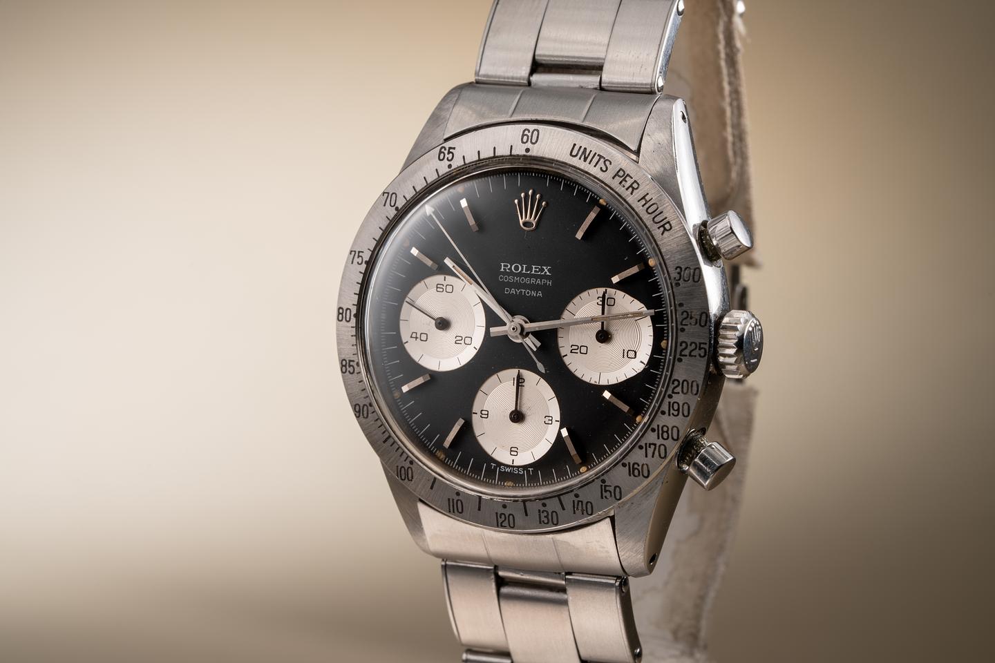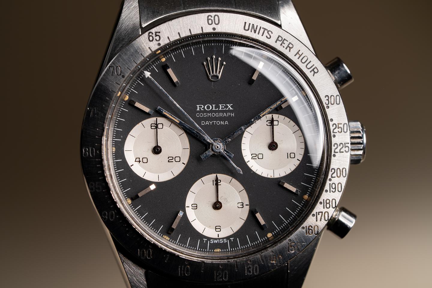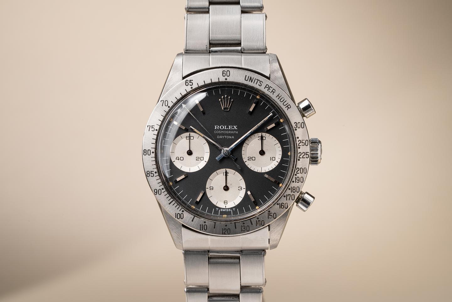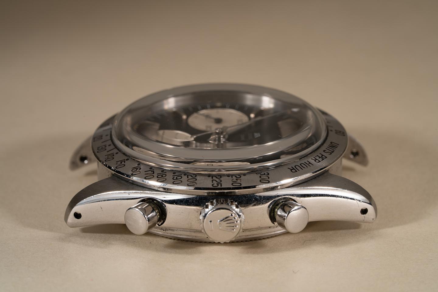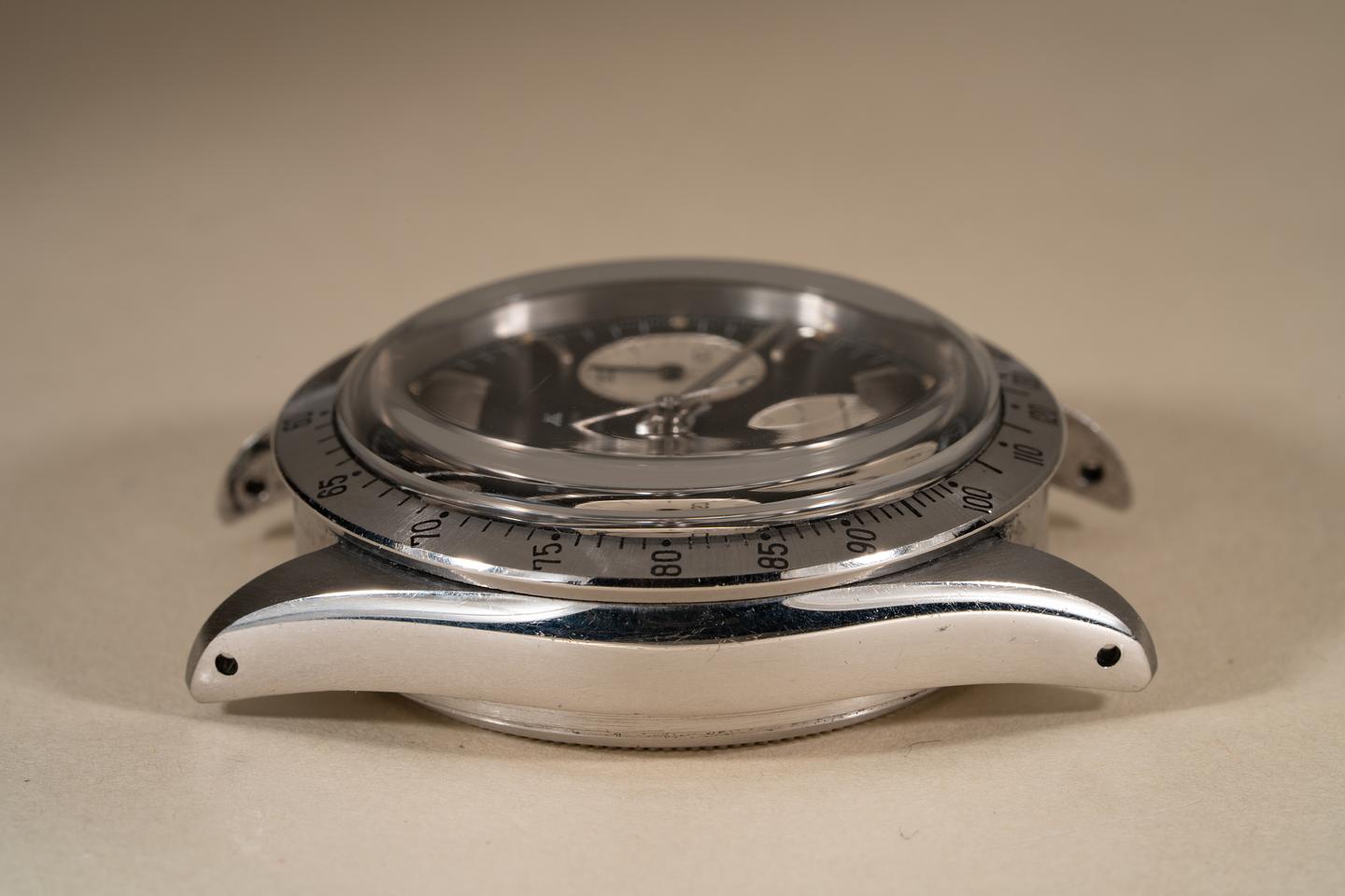 Notes: A beautiful and very early Daytona with a very uncommon dial and an even less common bezel.