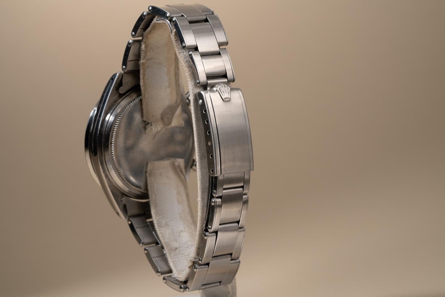 Bracelet: The 12 link Swiss rivet bracelet is excellent showing only light stretch for its age. The clasp is stamped with a 1963 date code.