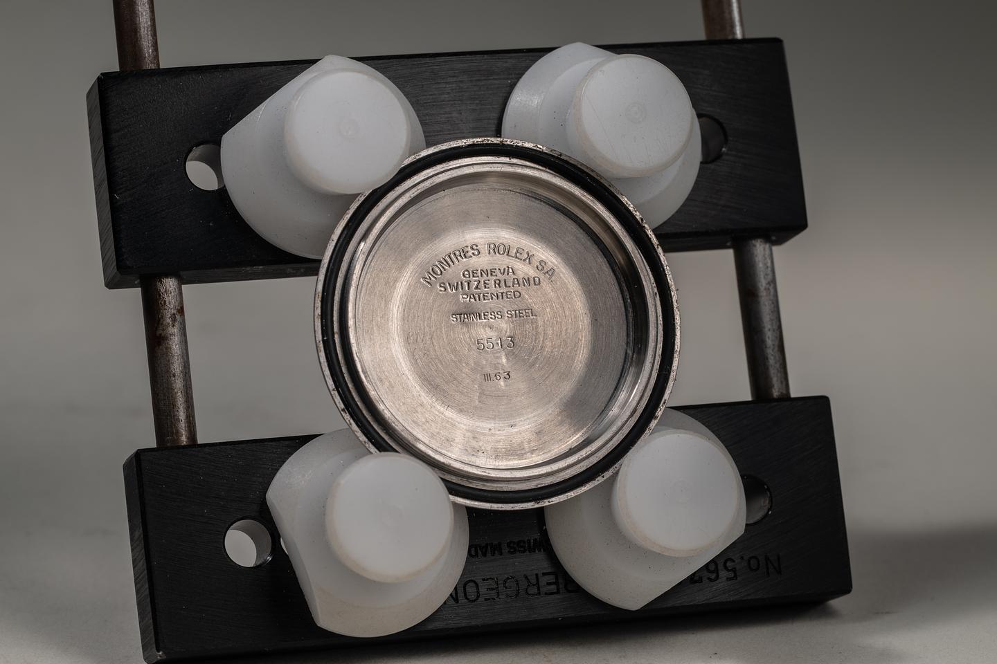 Bracelet: The 12-link Oyster flex bracelet is excellent, showing only very light stretch for its age. The clasp is stamped with a matching 1964 date code.