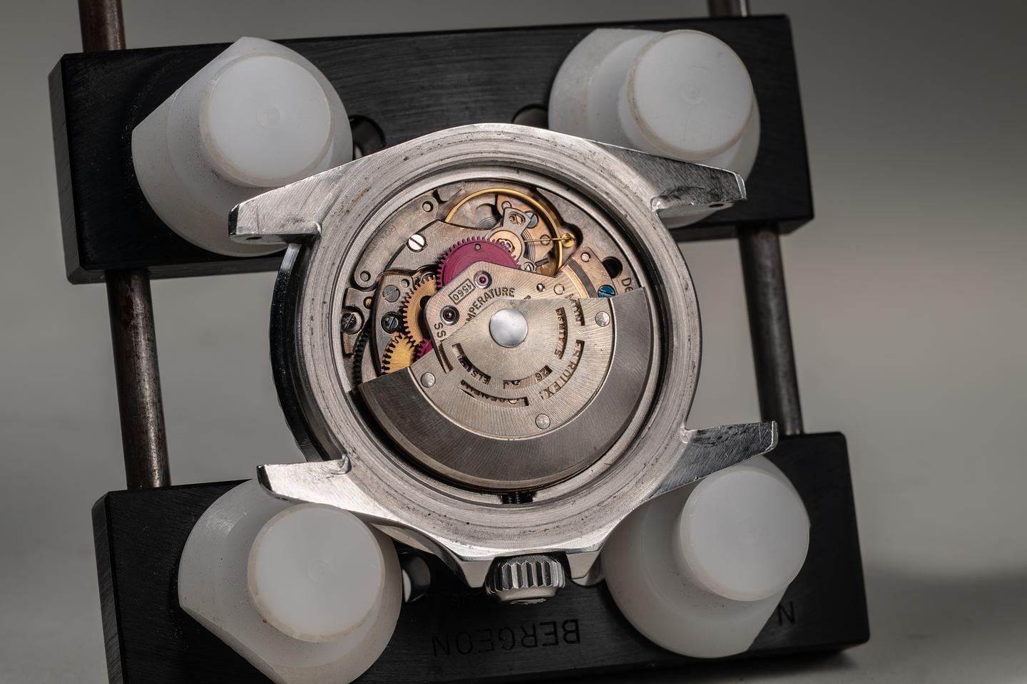 Dial: The glossy gilt "Underline" dial is excellent, showing some very subtle speckling patina across its surface. The lume has aged to a warm, creamy hue, and the hands match perfectly. All lume glow brightly when exposed to UV and fall off rapidly at the same rate.