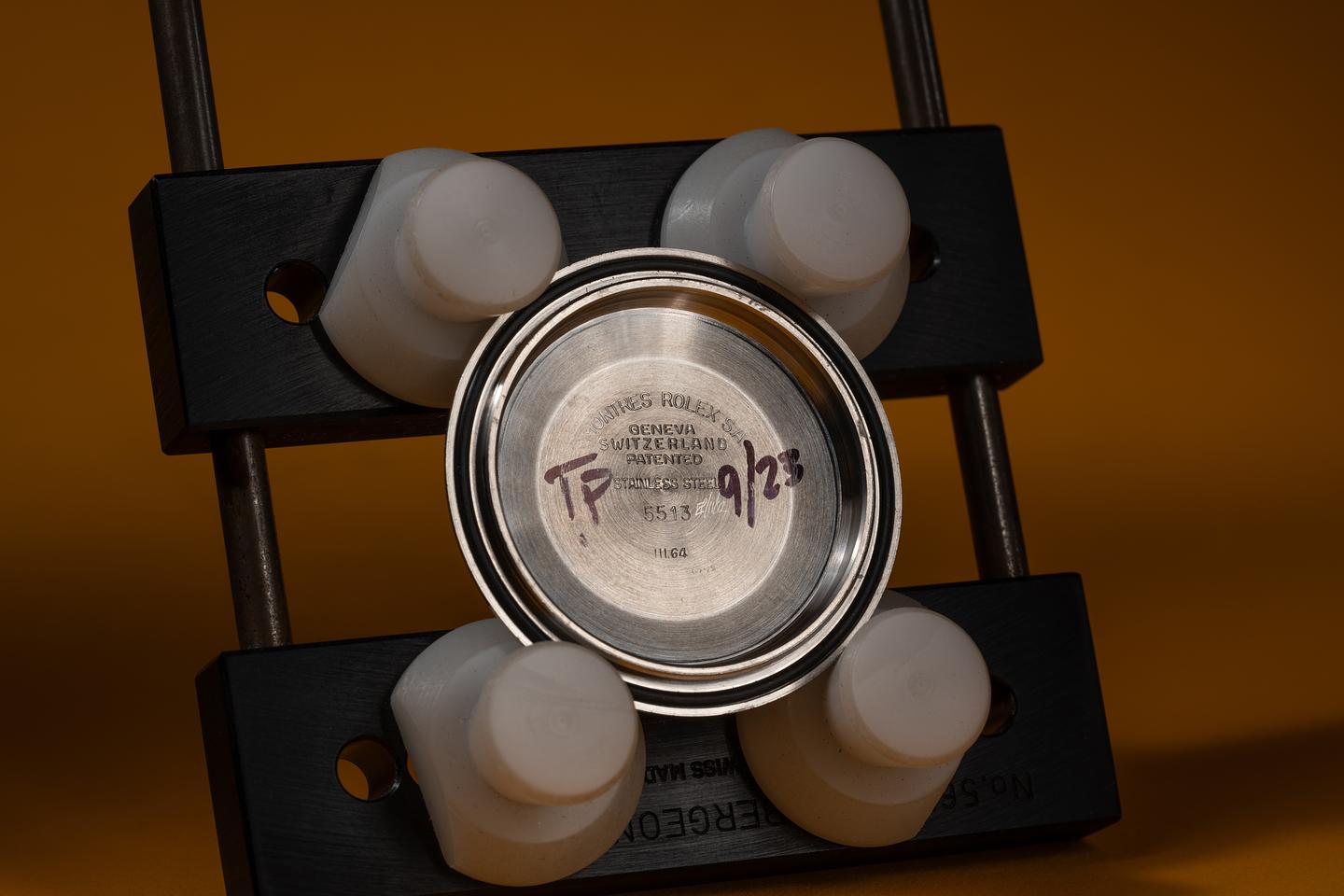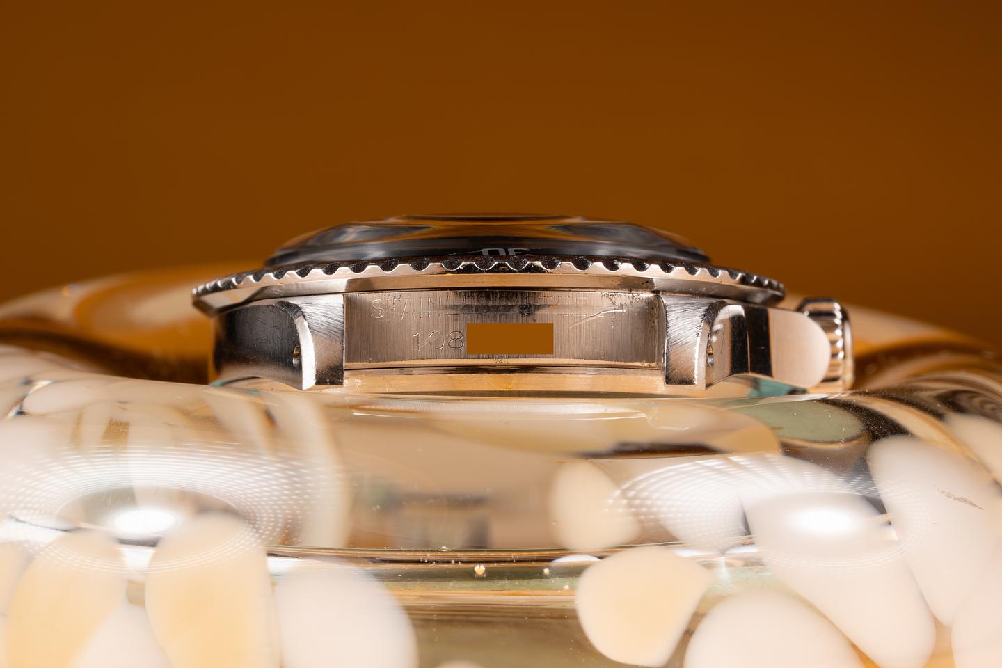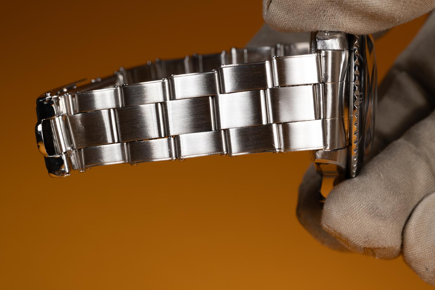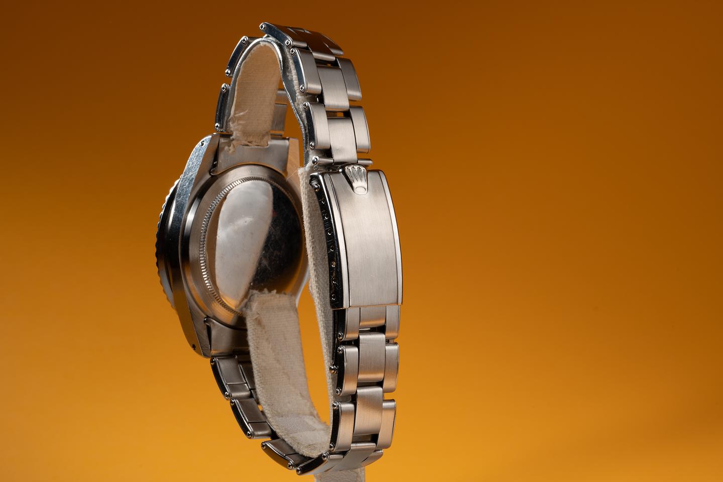 Bracelet: The 12 link Swiss rivet bracelet is excellent showing only very light stretch for its age. The clasp is stamped with a 1965 date code.
