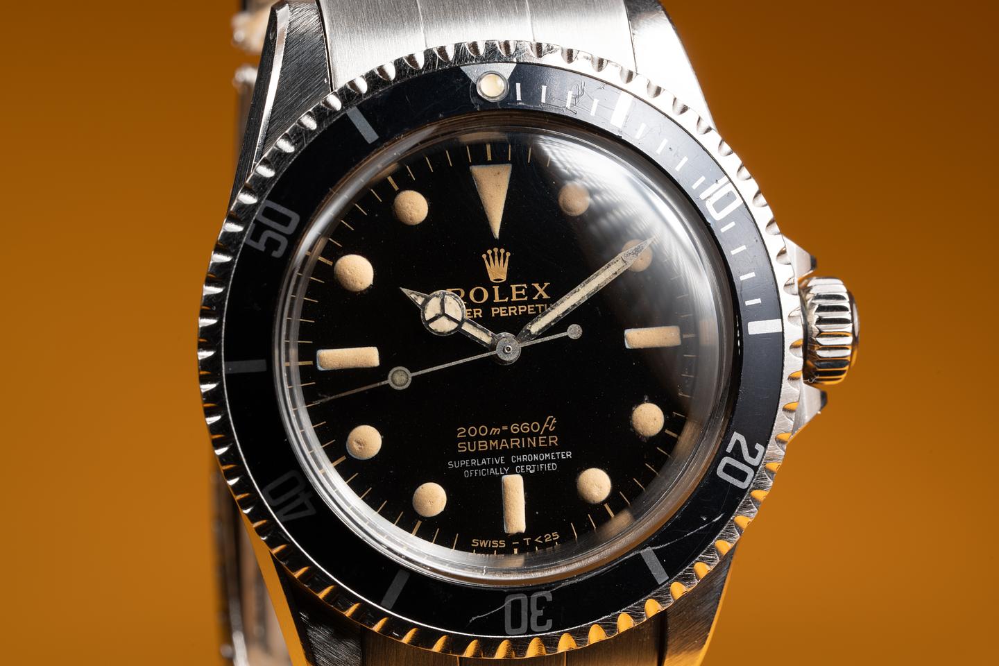 Dial: The glossy gilt dial is excellent showing an extensive and even pattern of tropical speckling patina across its surface. The lume has aged to a warm creamy hue and the hands have aged just slightly lighter than the dial.