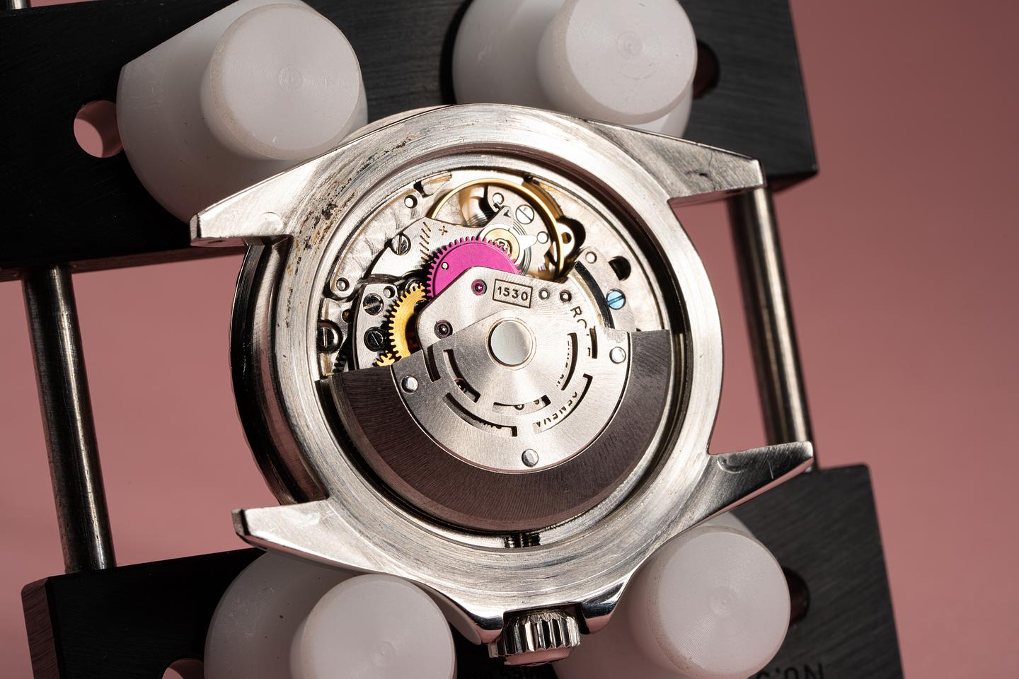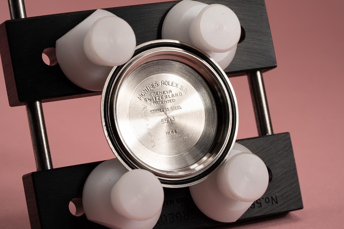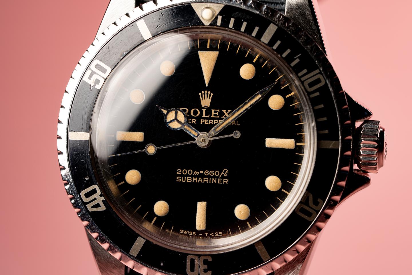 Case: Very good case has been polished recently and has very light wear from use. The kissing 40 fat font bezel shows some wear and the silver print is warming to a bronzy golden hue.
