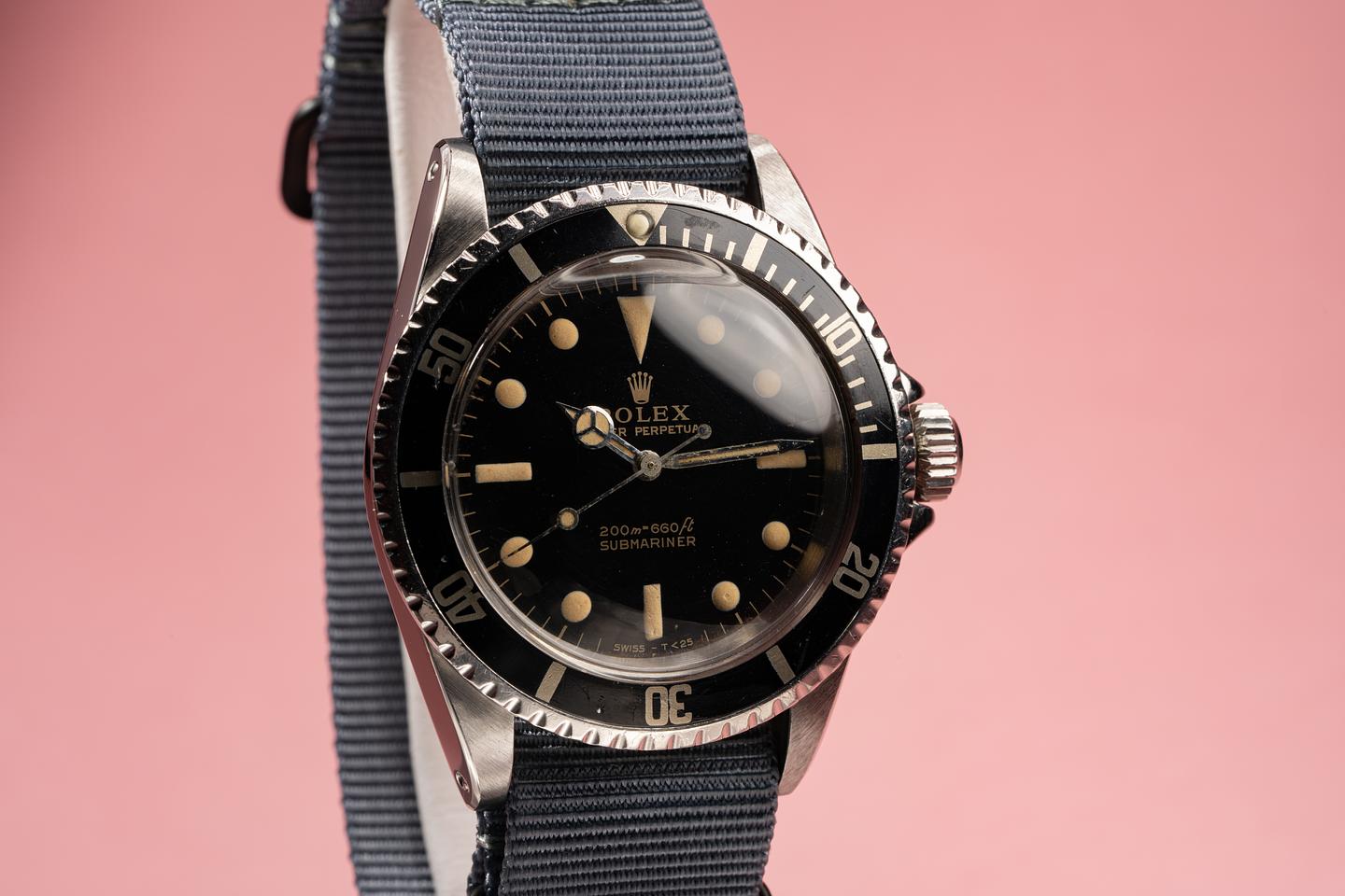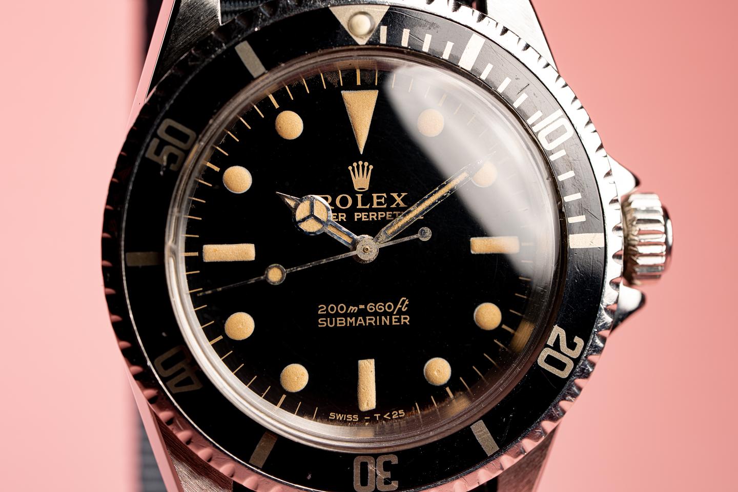 Dial: Excellent glossy black gilt dial with creamy markers and matching original hands. All lume glows at the same rate when exposed to UV and falls off rapidly at the same rate. The lume markers on the dial are full and puffy with extremely small lume loss on the tops of a few of the markers. There is some patina forming on the edge of the dial from 12-3 and around the 6 o'clock markers. Please examine the very high resolution photos for the condition.