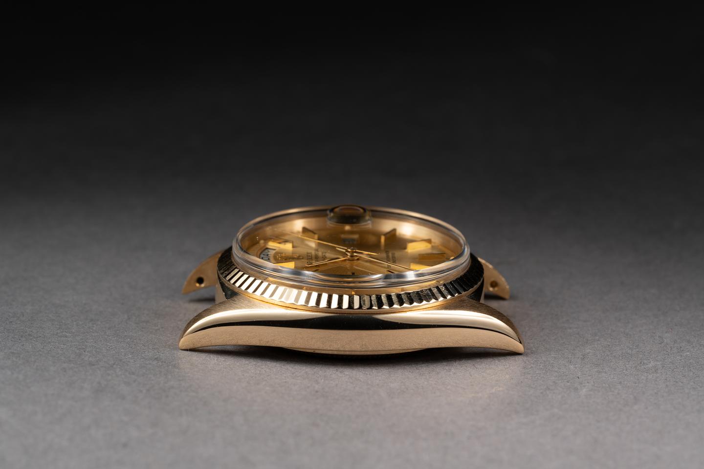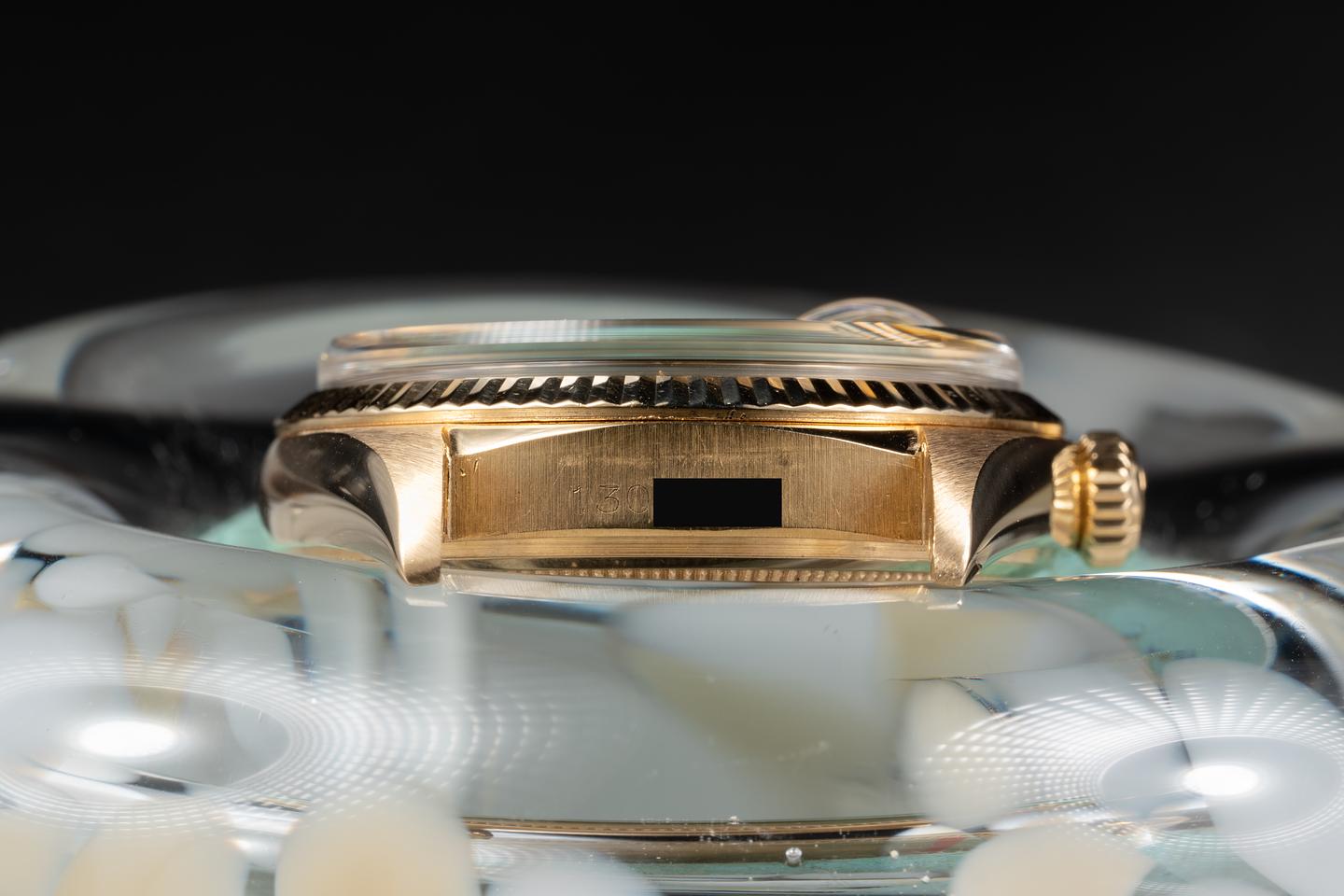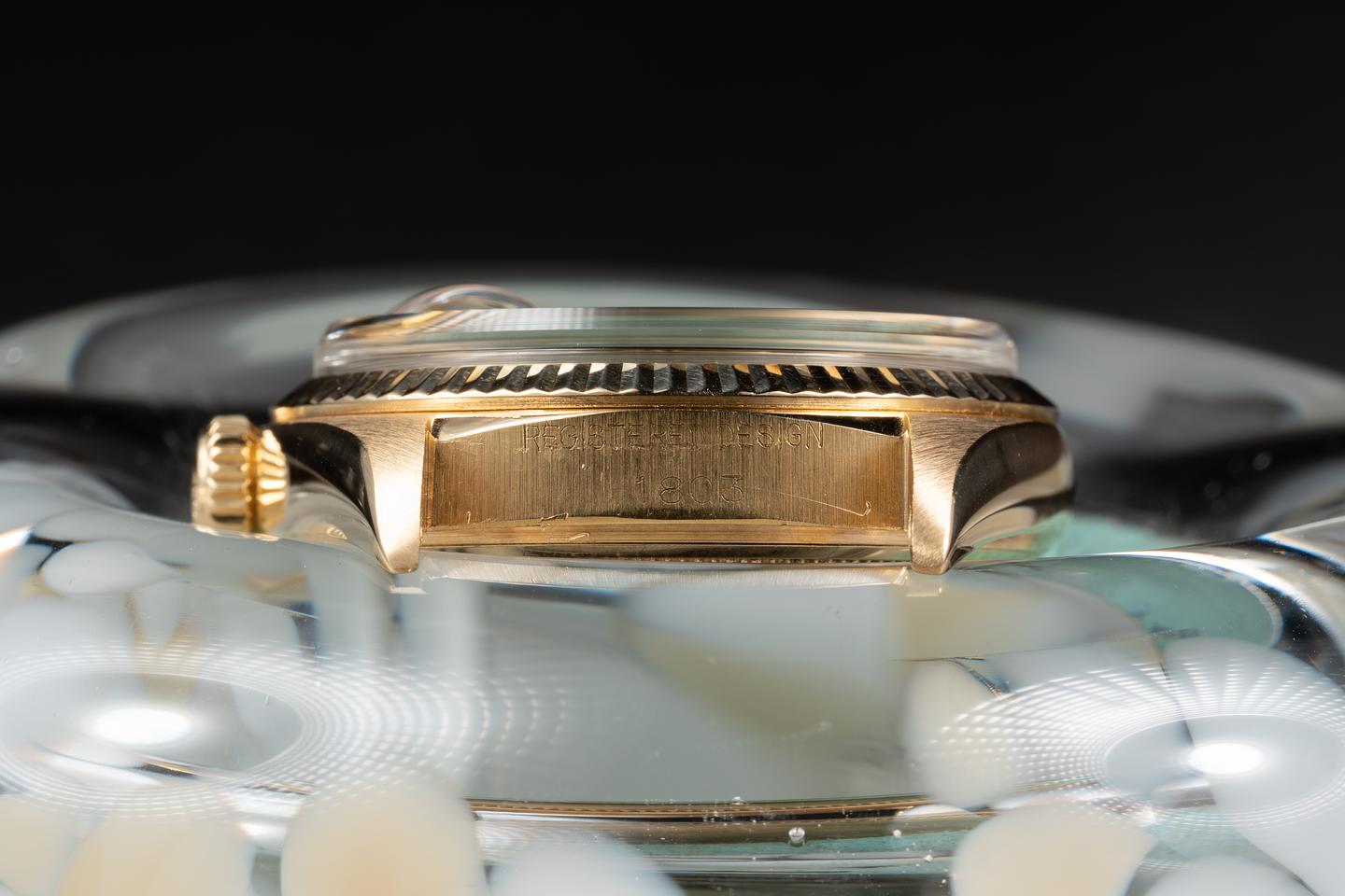 Case: The 18k yellow gold case is excellent showing only light wear from use. The sharp 18k yellow gold fluted bezel is also in excellent condition showing only light wear from use.
