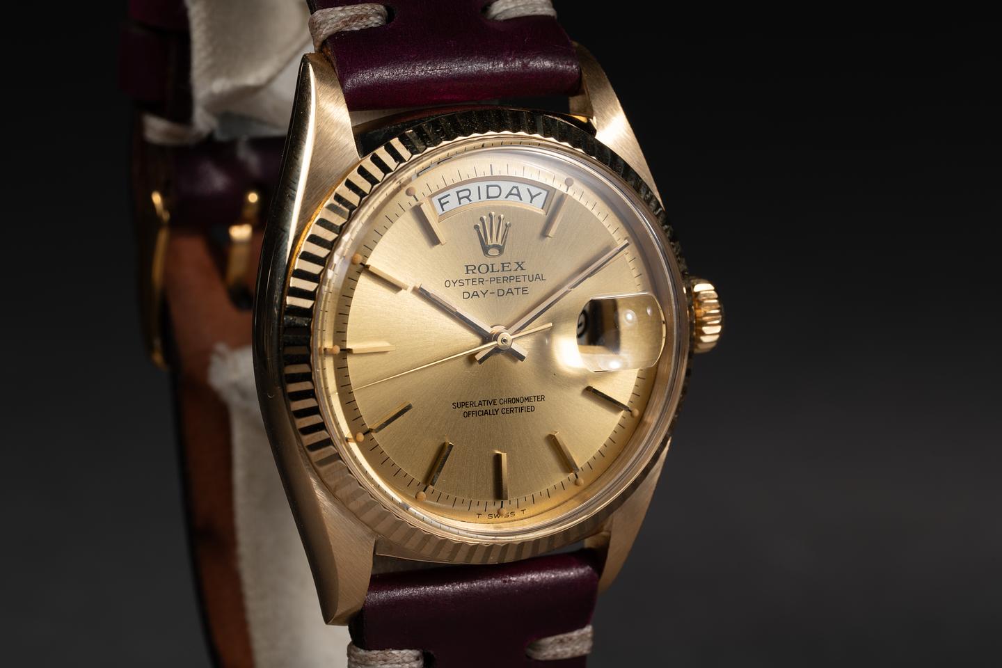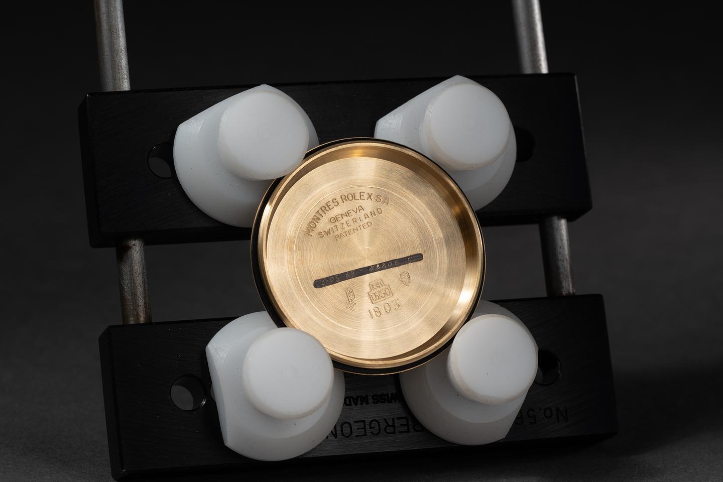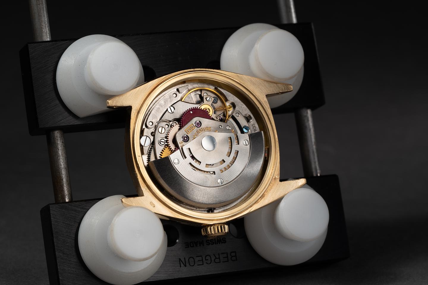 Case: The 18k yellow gold case is excellent showing only light wear from use. The sharp 18k yellow gold fluted bezel is also in excellent condition showing only light wear from use.
