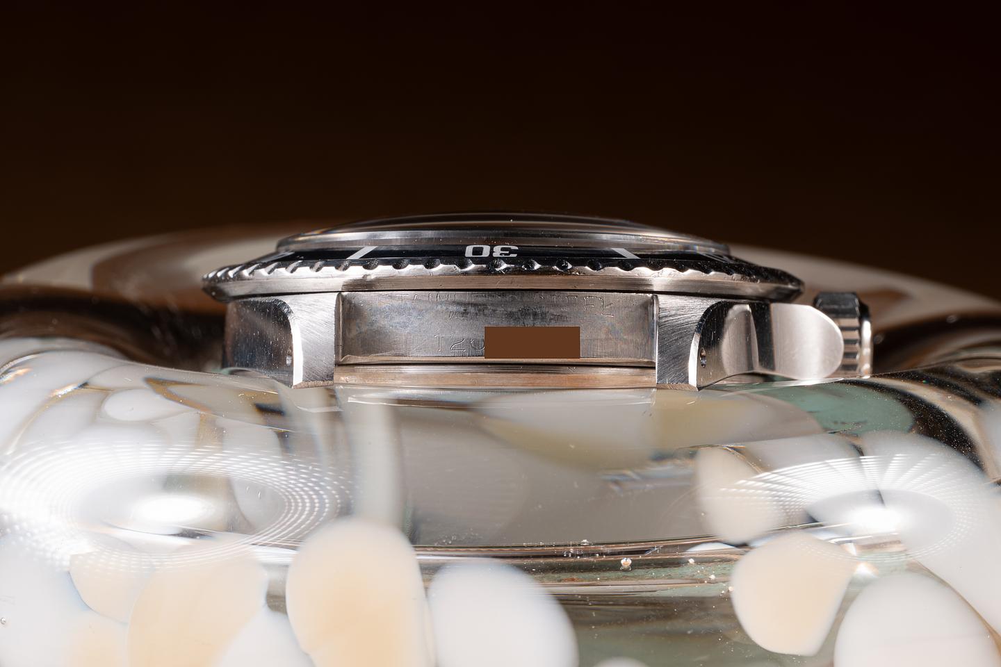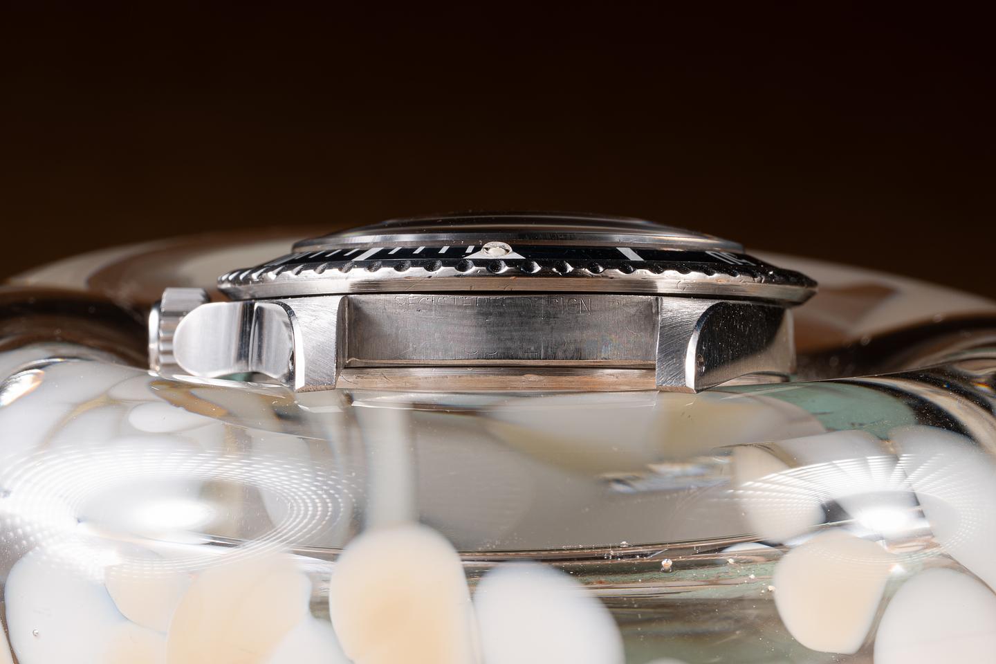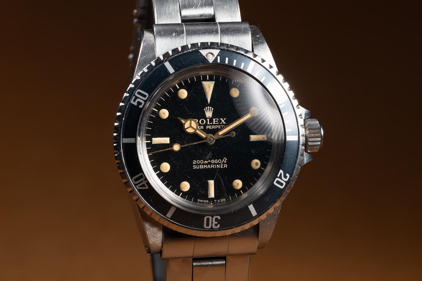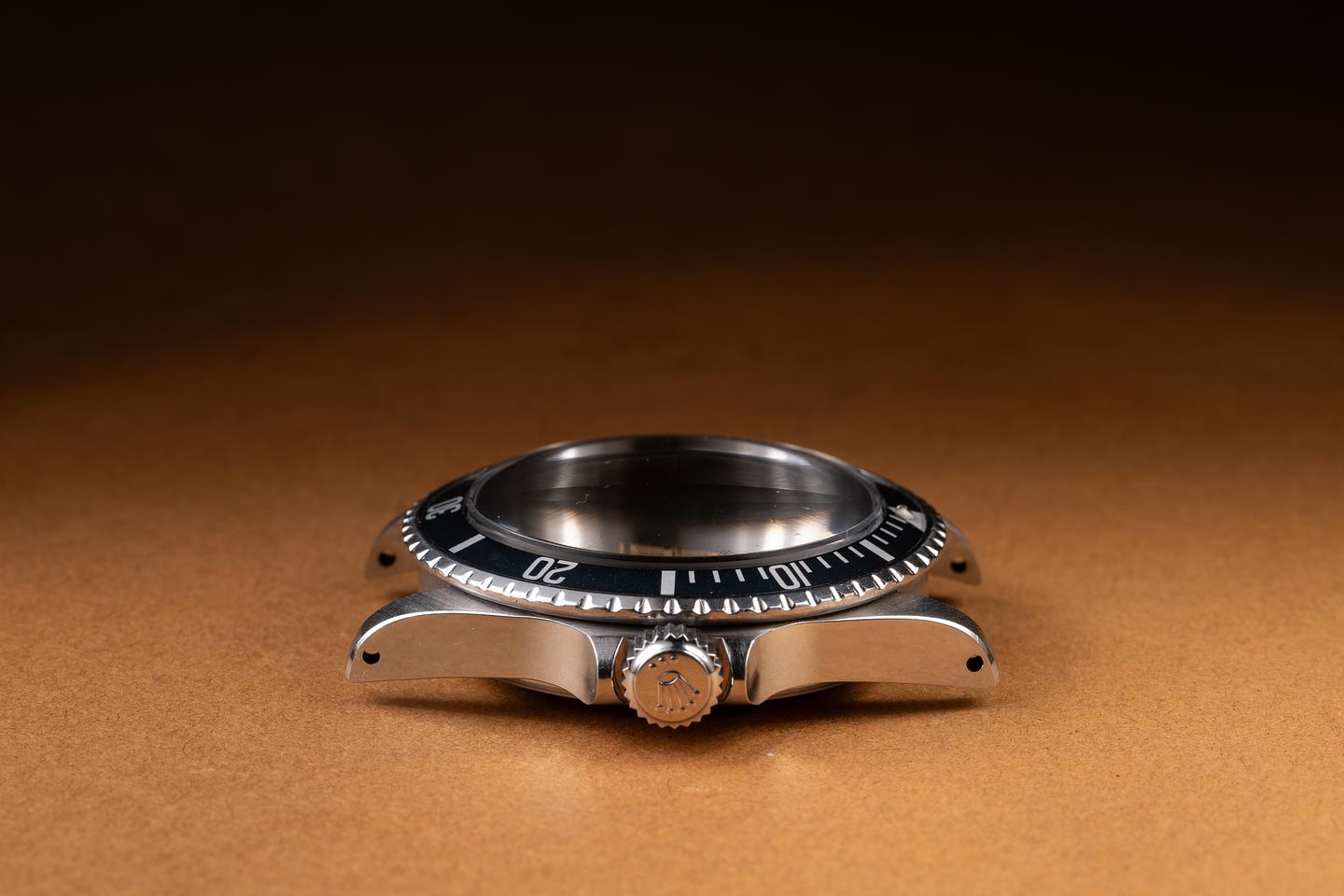 Case: The recently polished case is excellent, showing sharp, prominent bevels and only very light wear. The bezel insert is also in excellent condition and has aged to a navy blue hue.