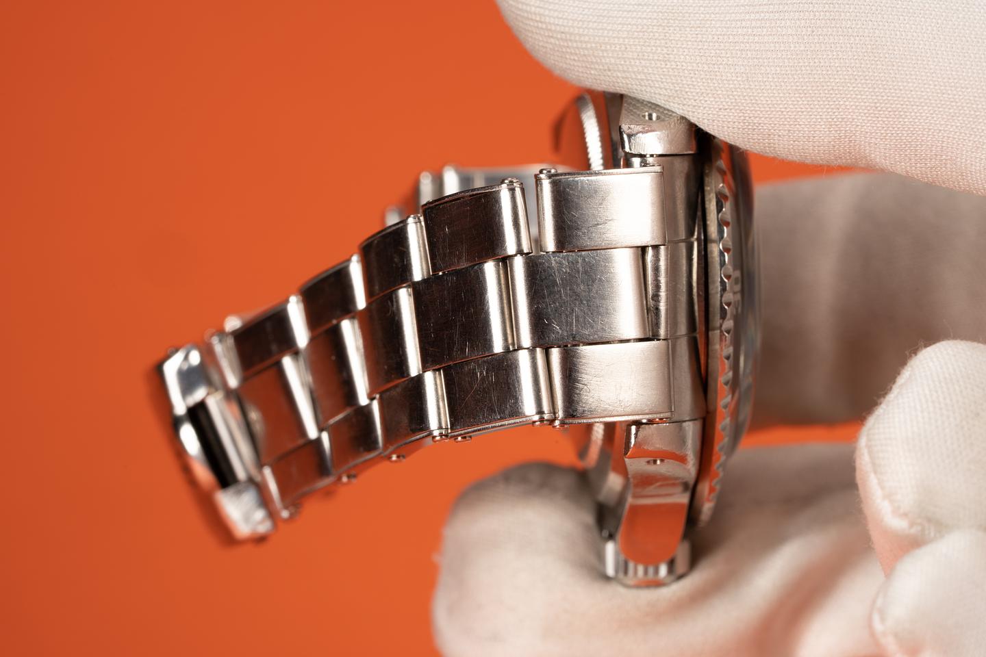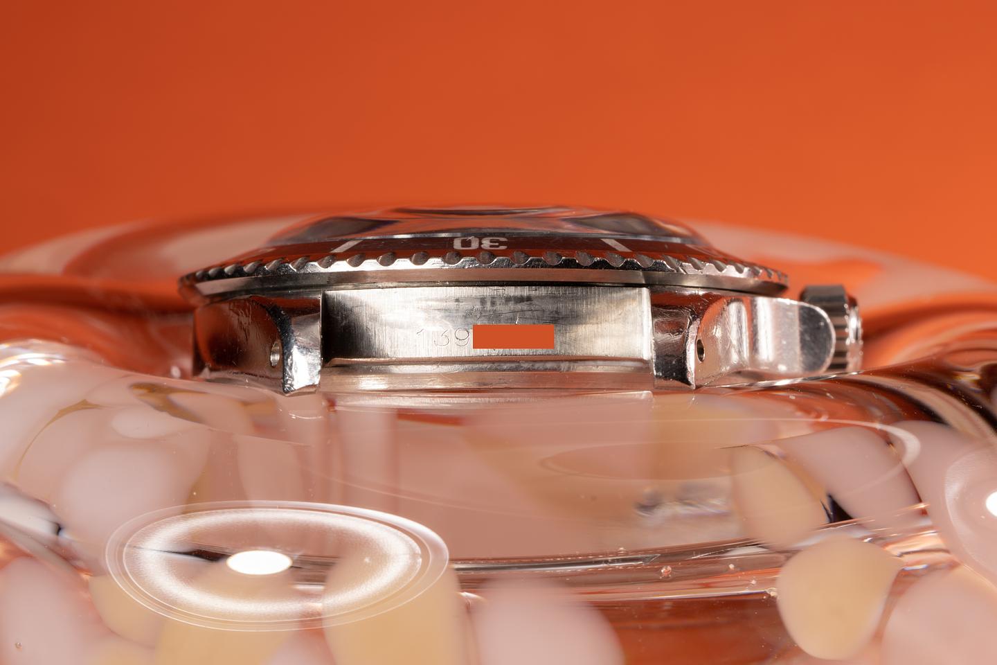 Case: An excellent thick case with a bright sleeve polished finish that shows light overall wear. The watch is fitted with a brand new TrueDome crystal. The long 5 bezel insert has faded to a medium grey and shows light wear overall.