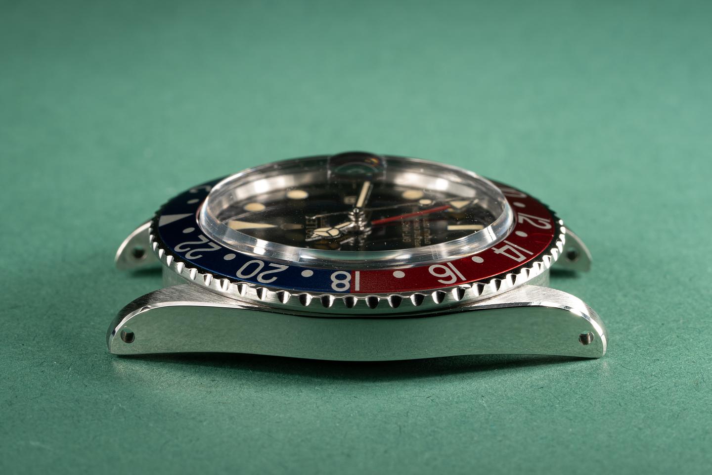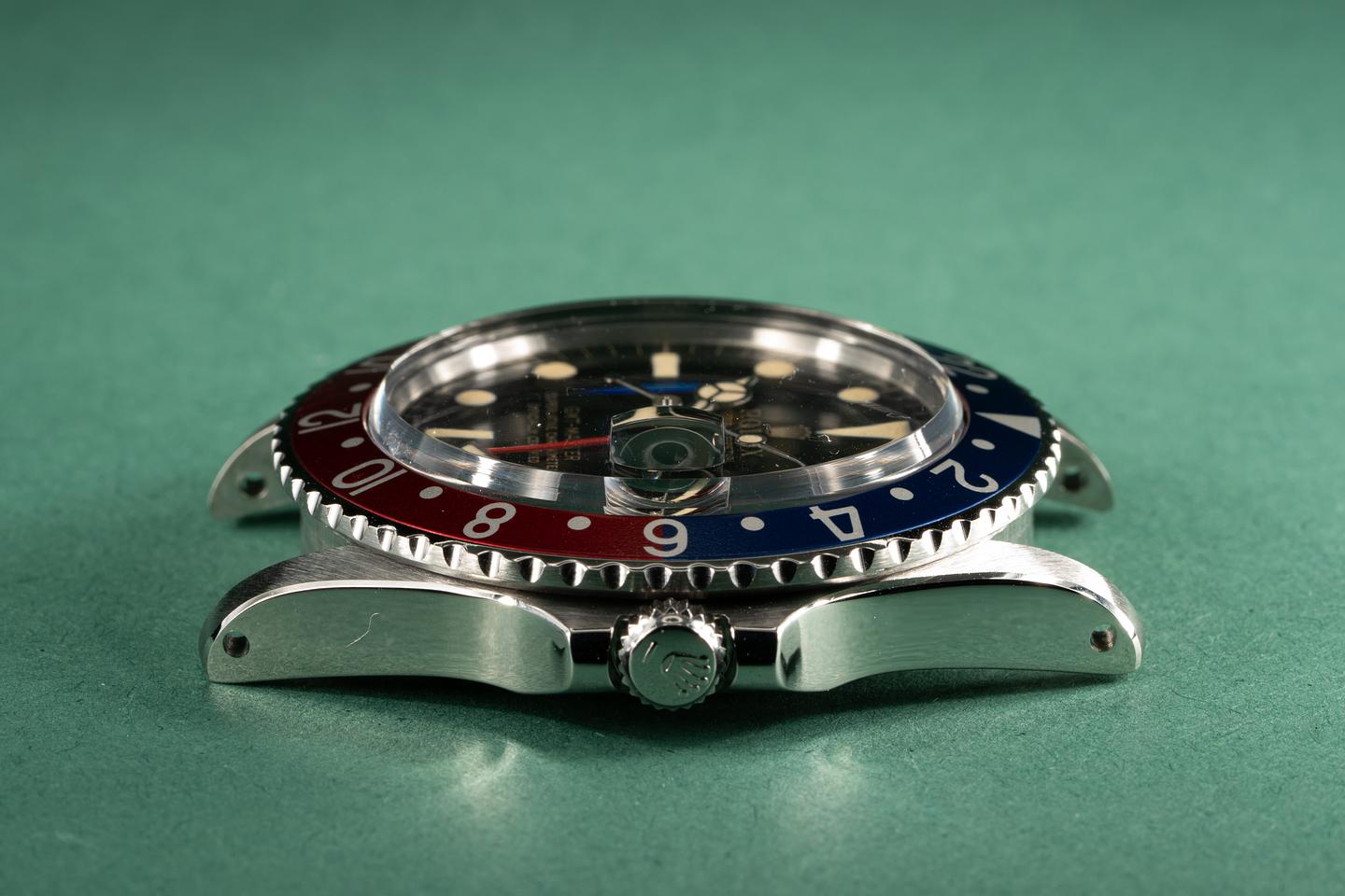 Case: Excellent case that has just returned from polishing. The blue and red bezel insert is also in excellent condition and shows very light wear.