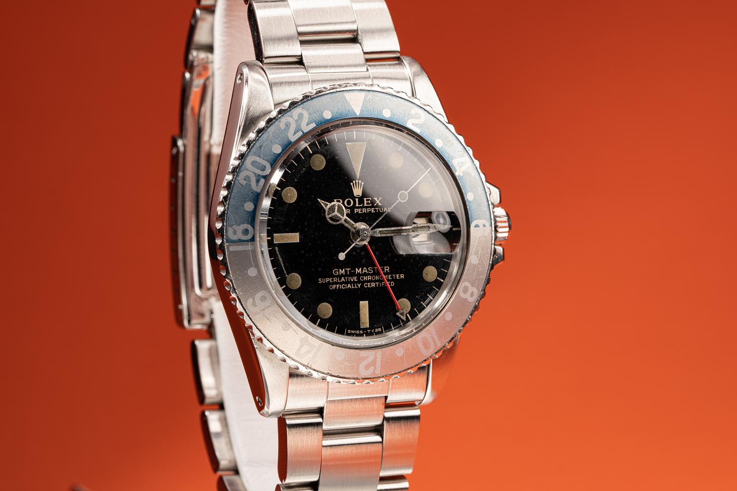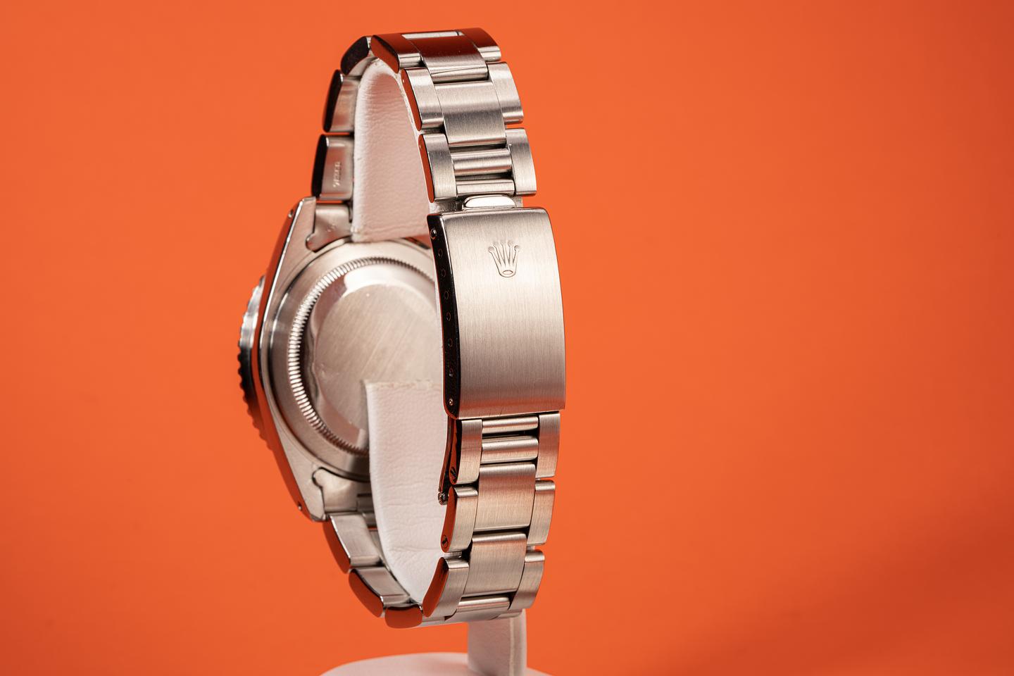 Bracelet: The newer 12 link oyster bracelet is attached to the watch with 501 end links. It shows very light wear, and the clasp is stamped with a 1984 date code.