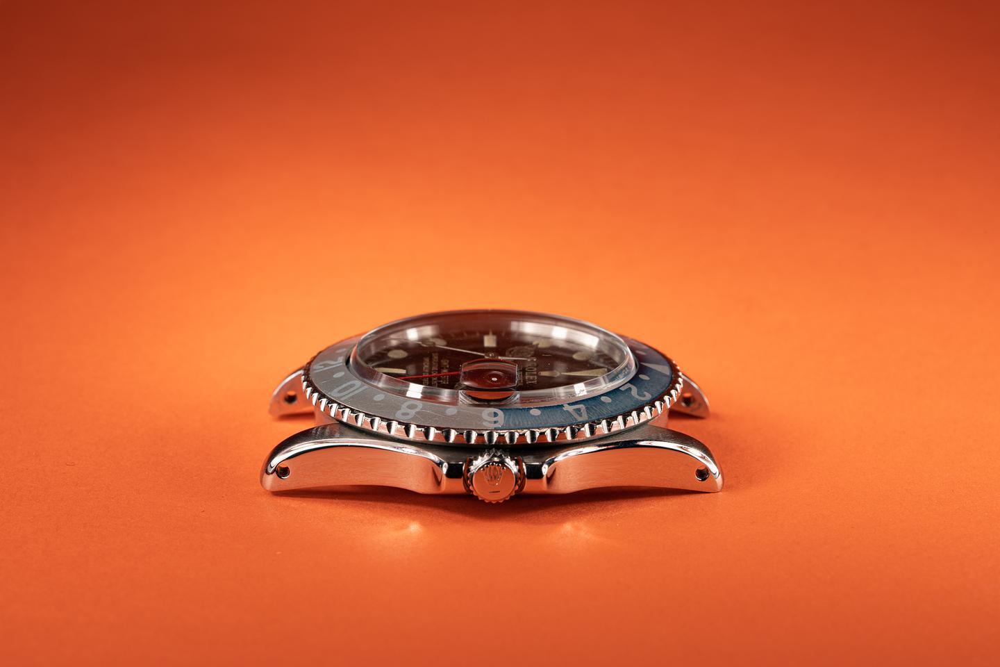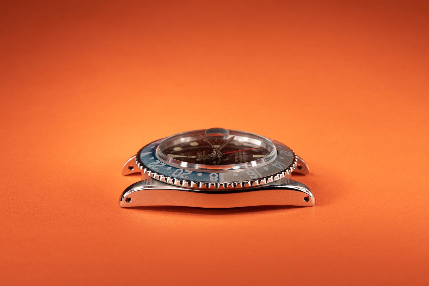 Case: This very good case shows very light wear since the last time it was polished. The beautifully faded fat font insert shows light wear for its 55 years of service.