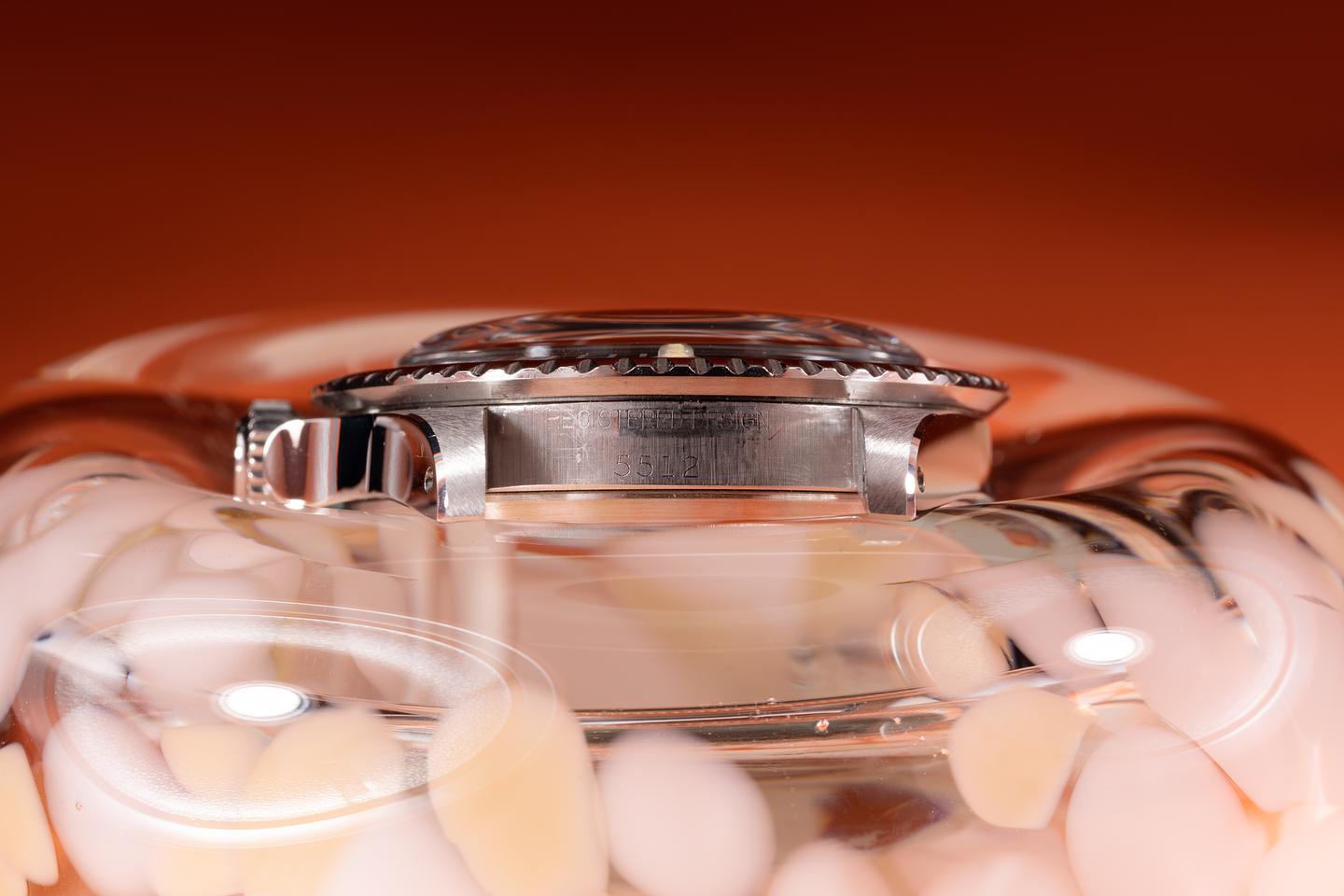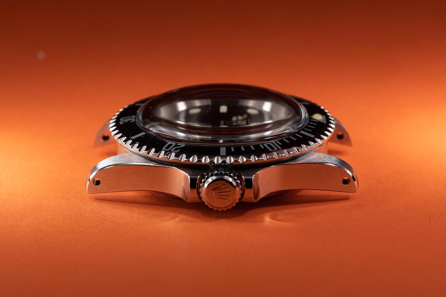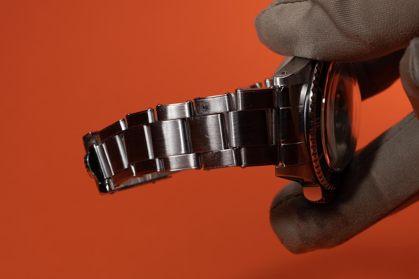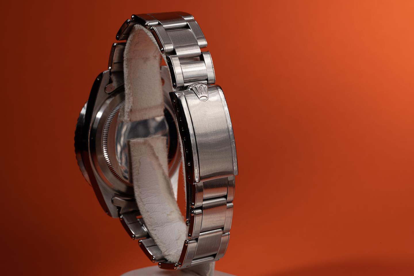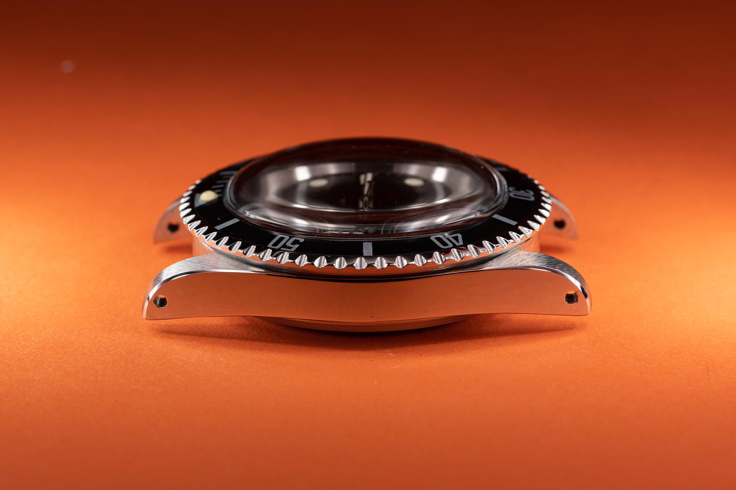 Case: The thick and even case has recently been polished showing sharp, prominent bevels and only light wear from use. The black fat font bezel is also in excellent condition showing only very light wear from use.