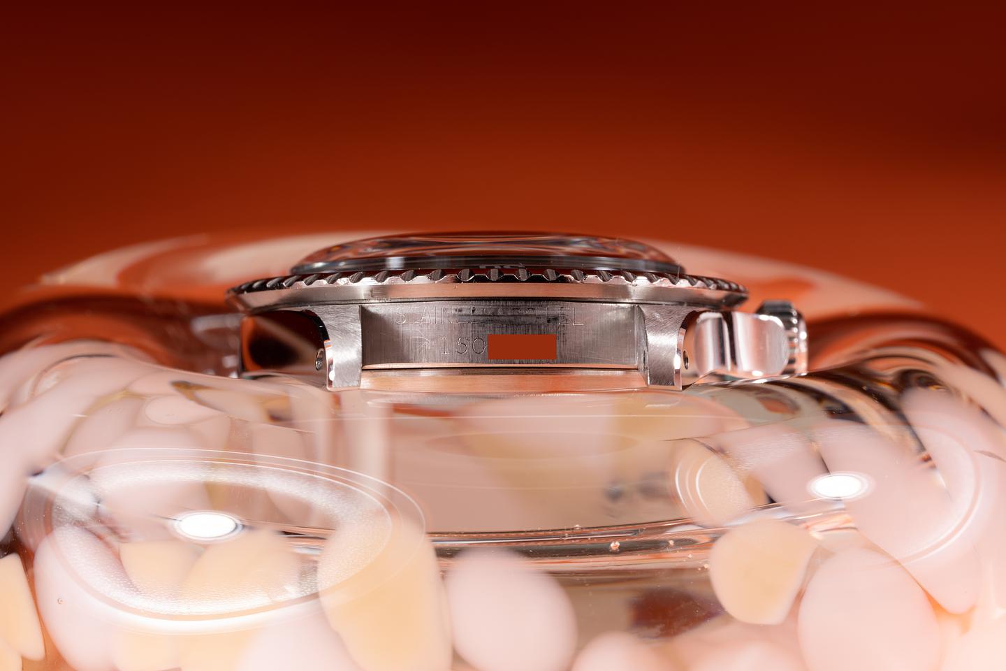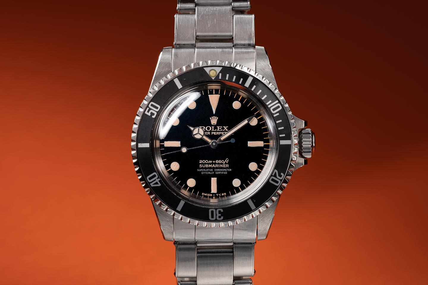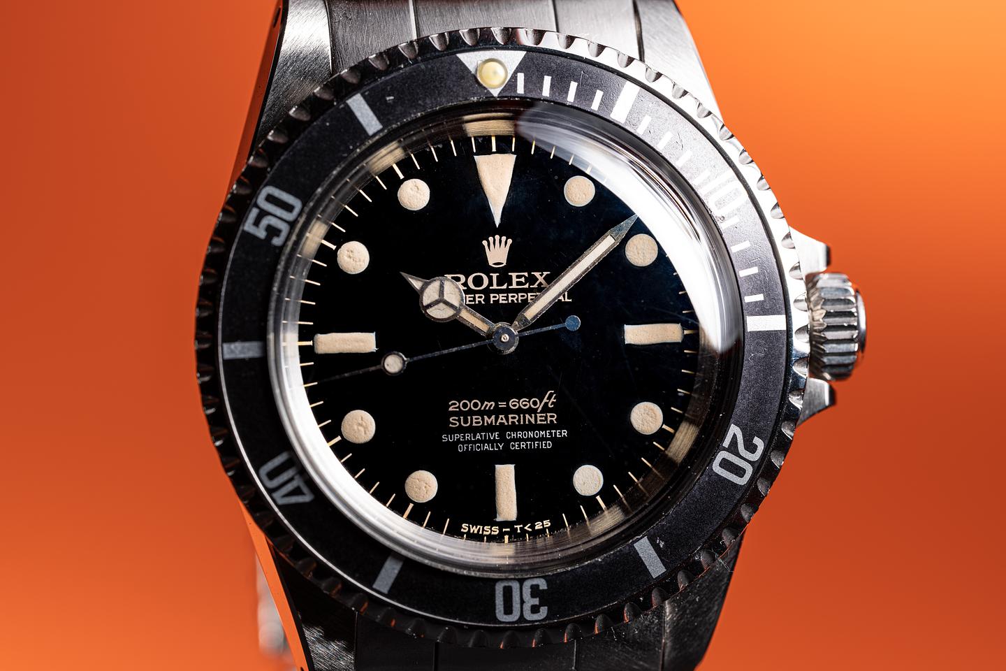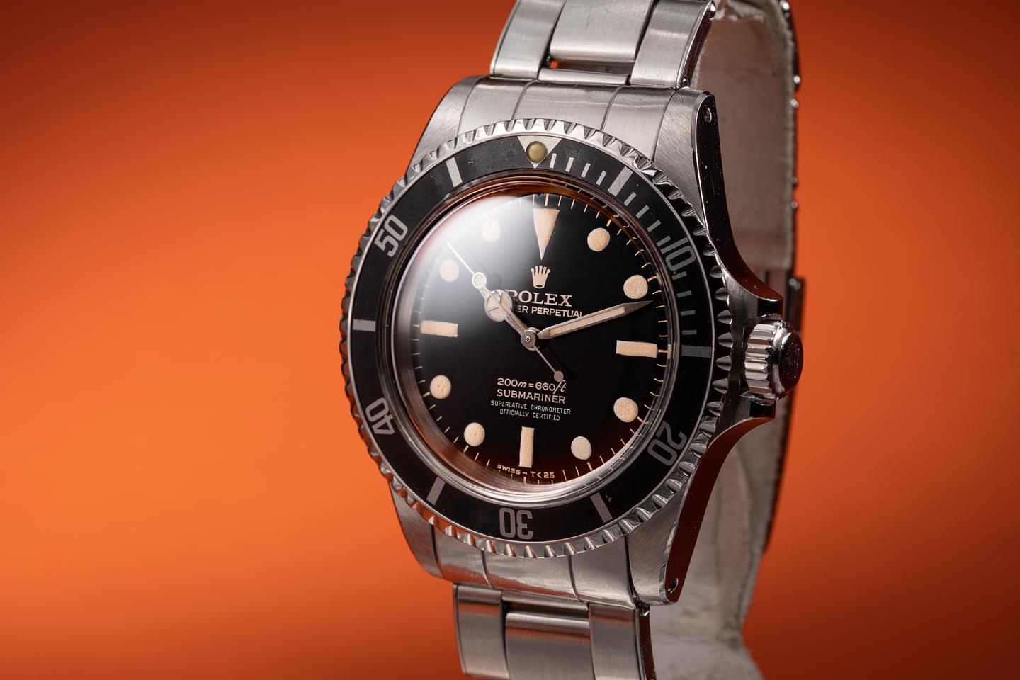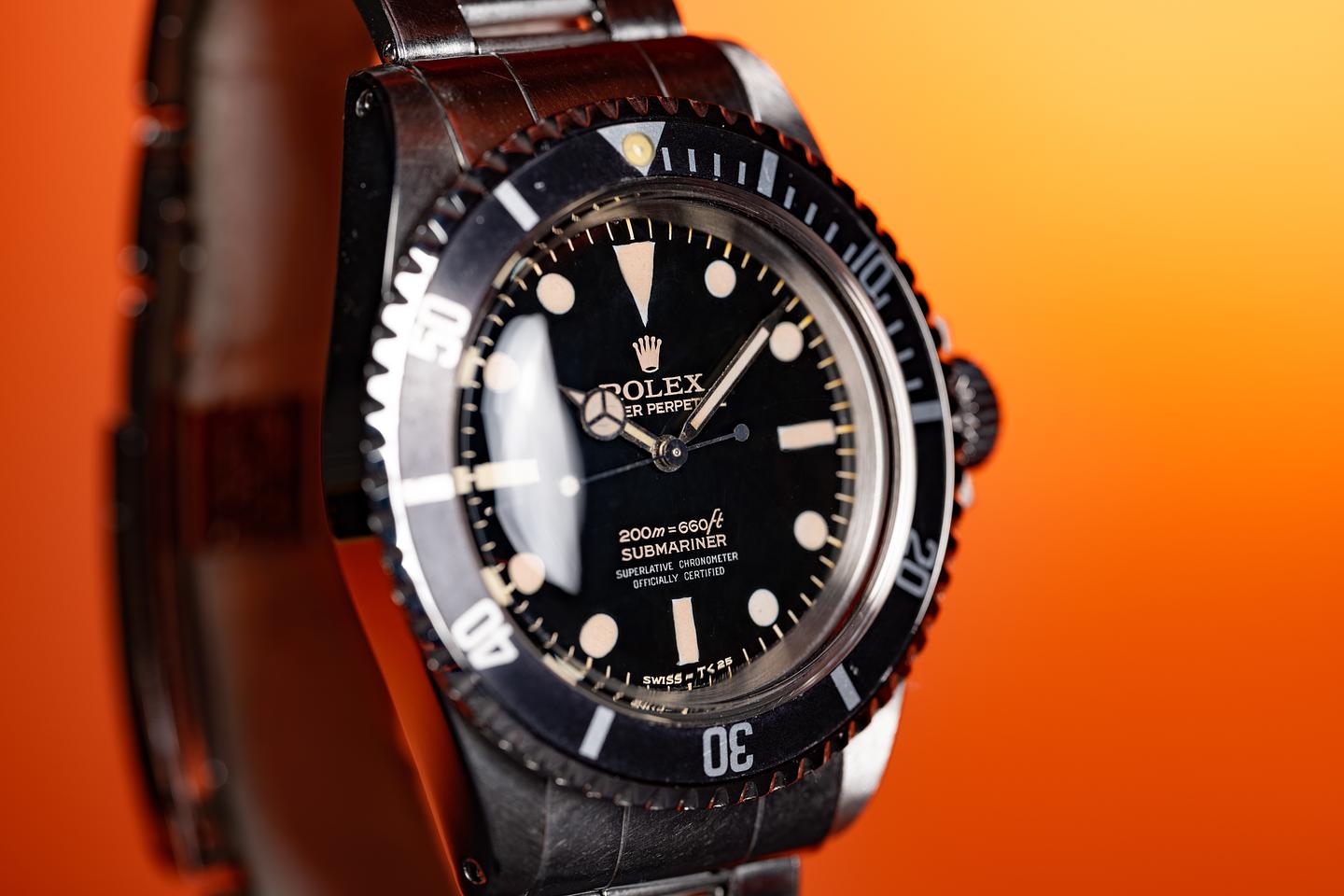 Case: The thick and even case has recently been polished showing sharp, prominent bevels and only light wear from use. The black fat font bezel is also in excellent condition showing only very light wear from use.