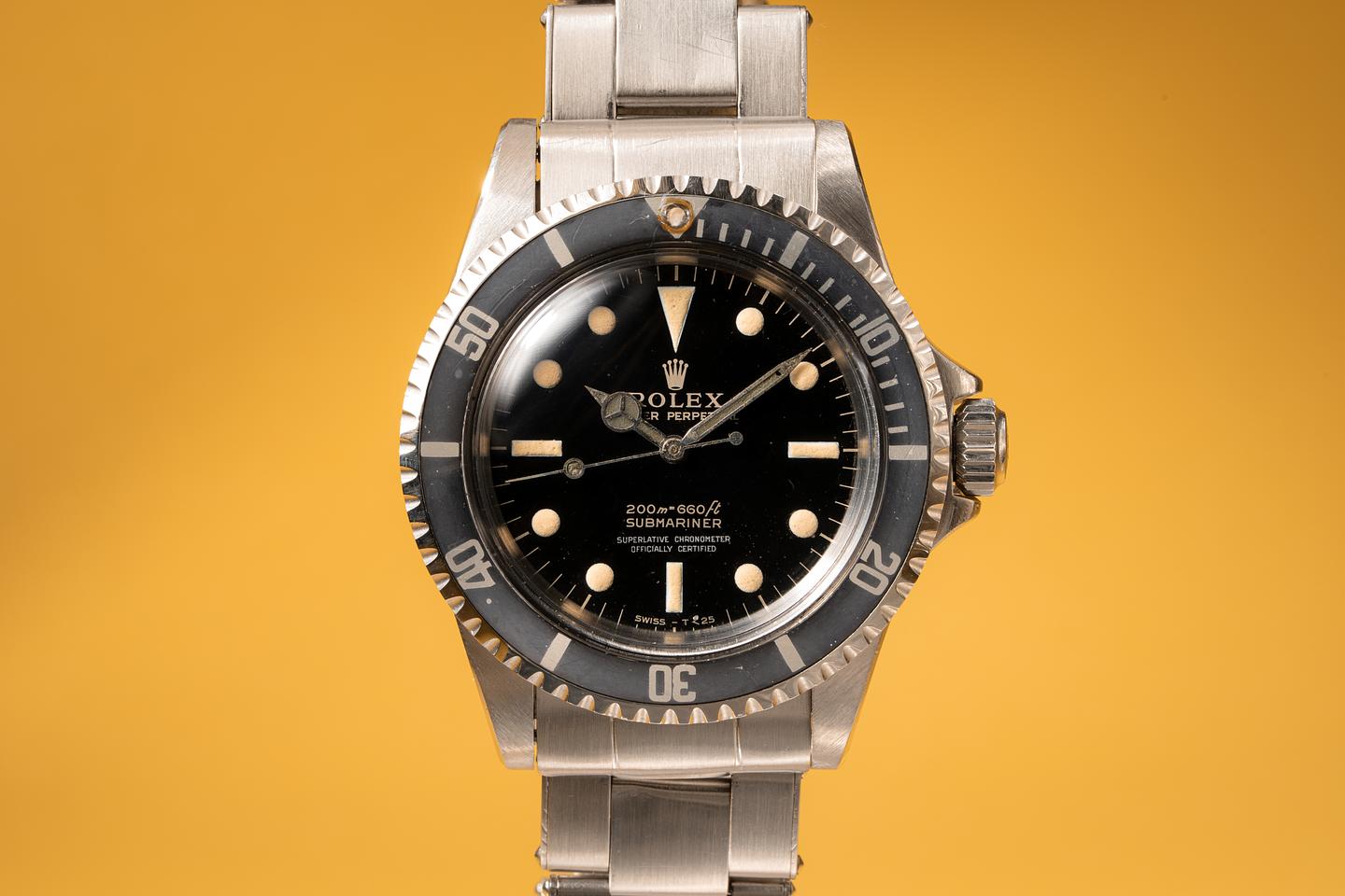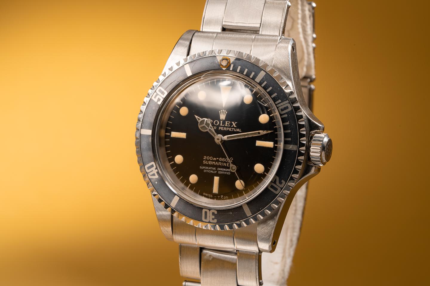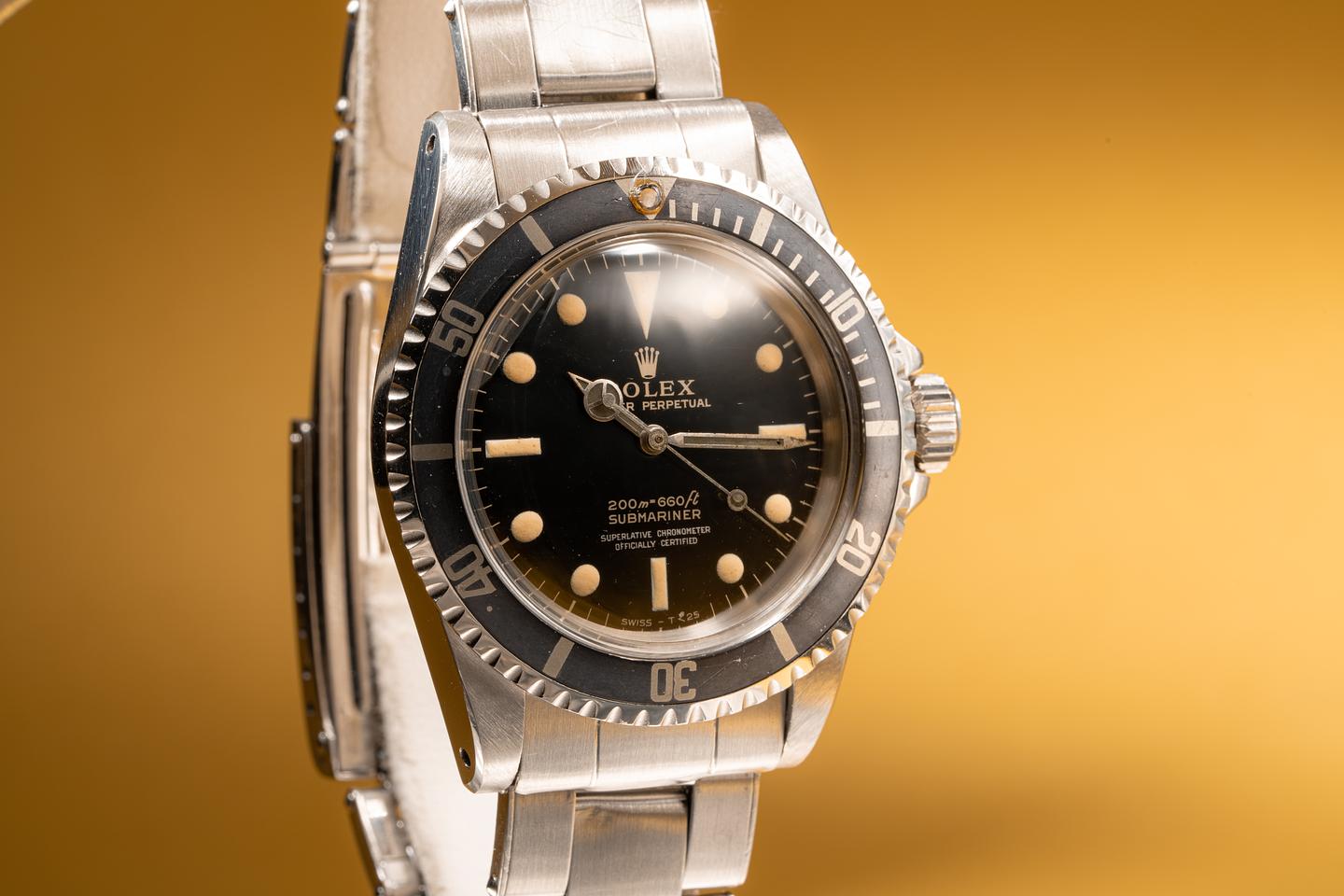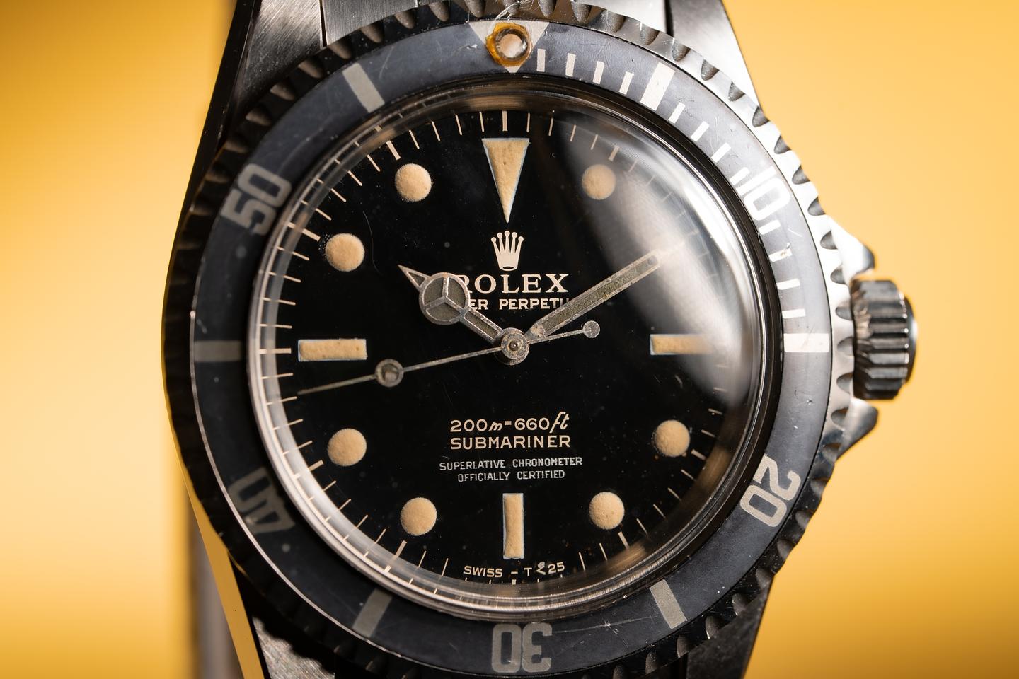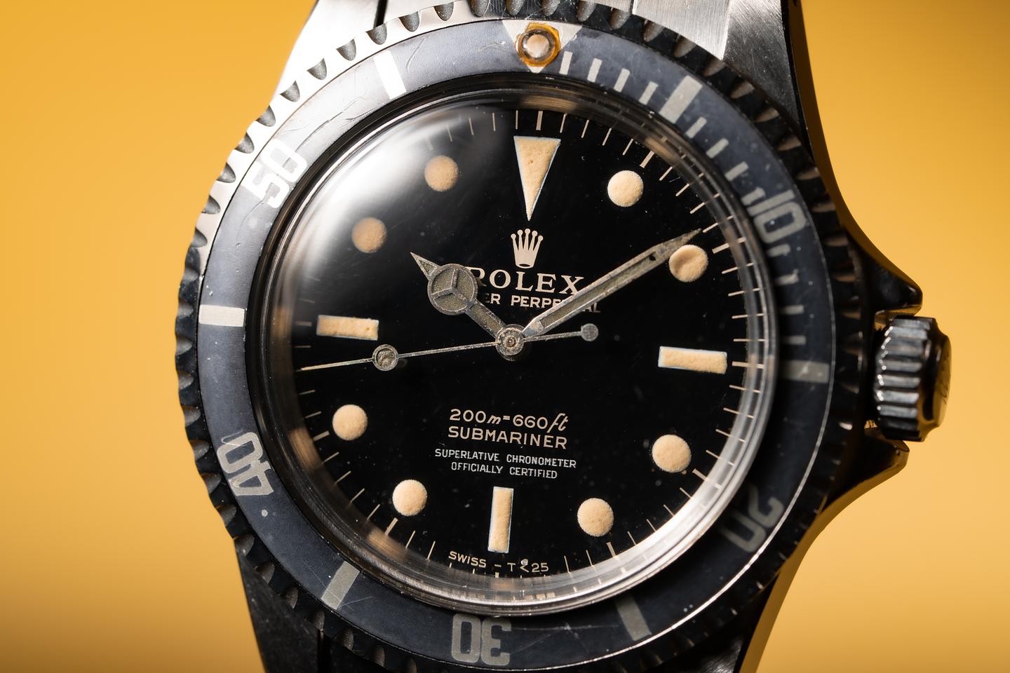 Case: The previously polished case is excellent and features sharp prominent bevels. The case looks to only have been lightly worn since it was polished. The fat font "French" kissing 40 bezel insert is excellent and has faded to a satin blue-grey hue and shows light wear for its age.
