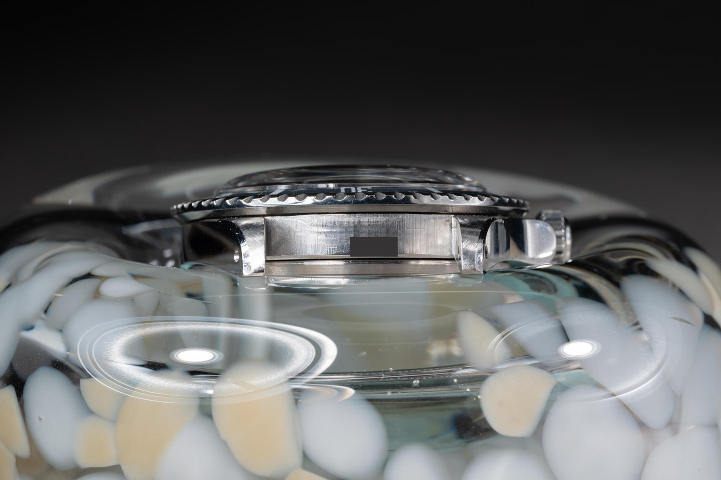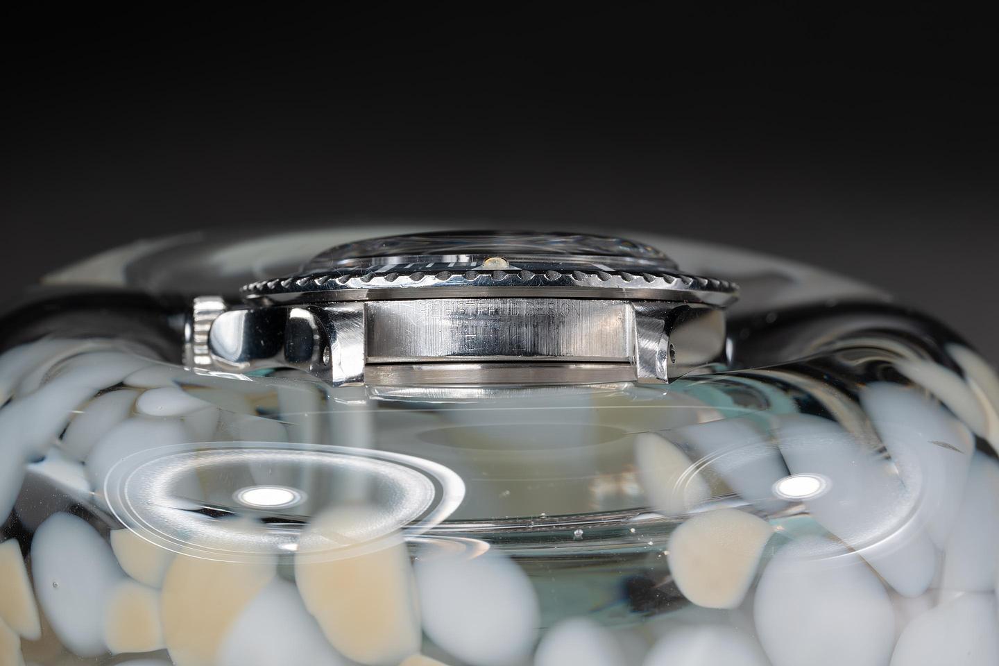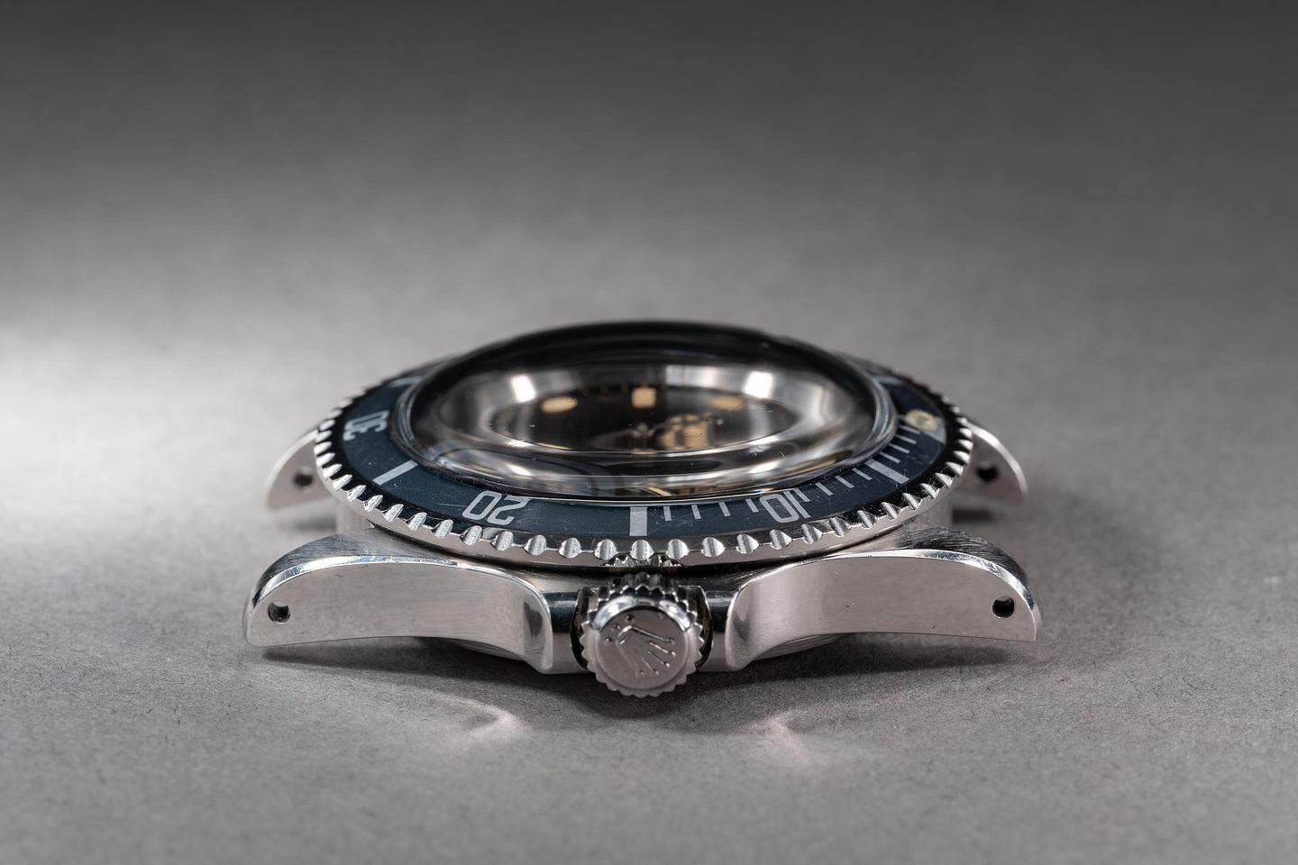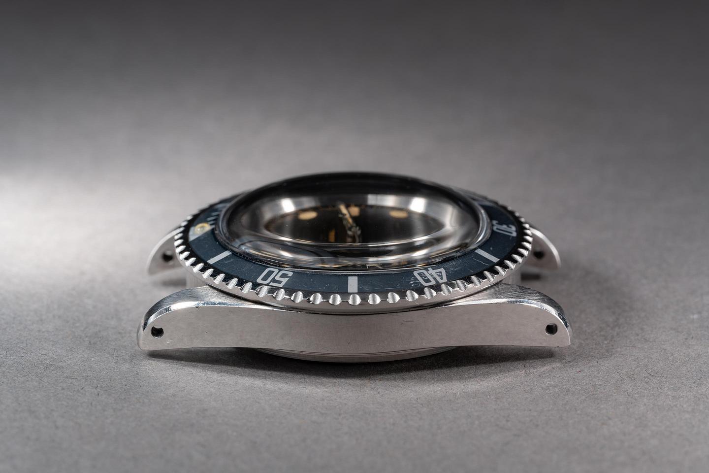 Case: The previously polished case is excellent showing sharp prominent bevels and only very light wear from use. The bezel insert is also in excellent condition and has faded to a light silvery blue.