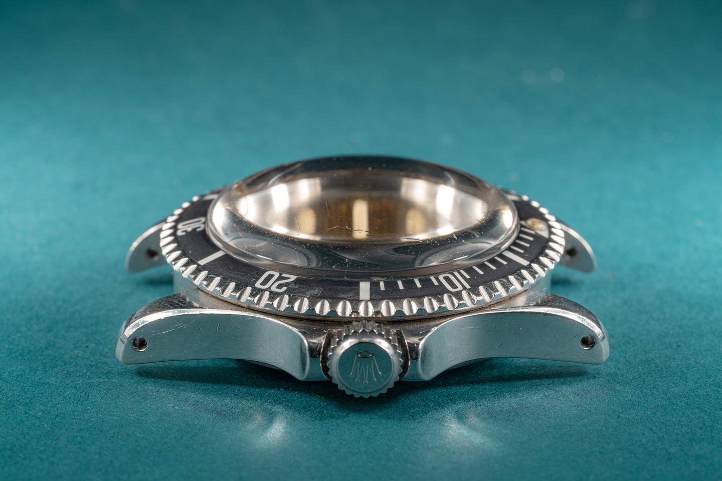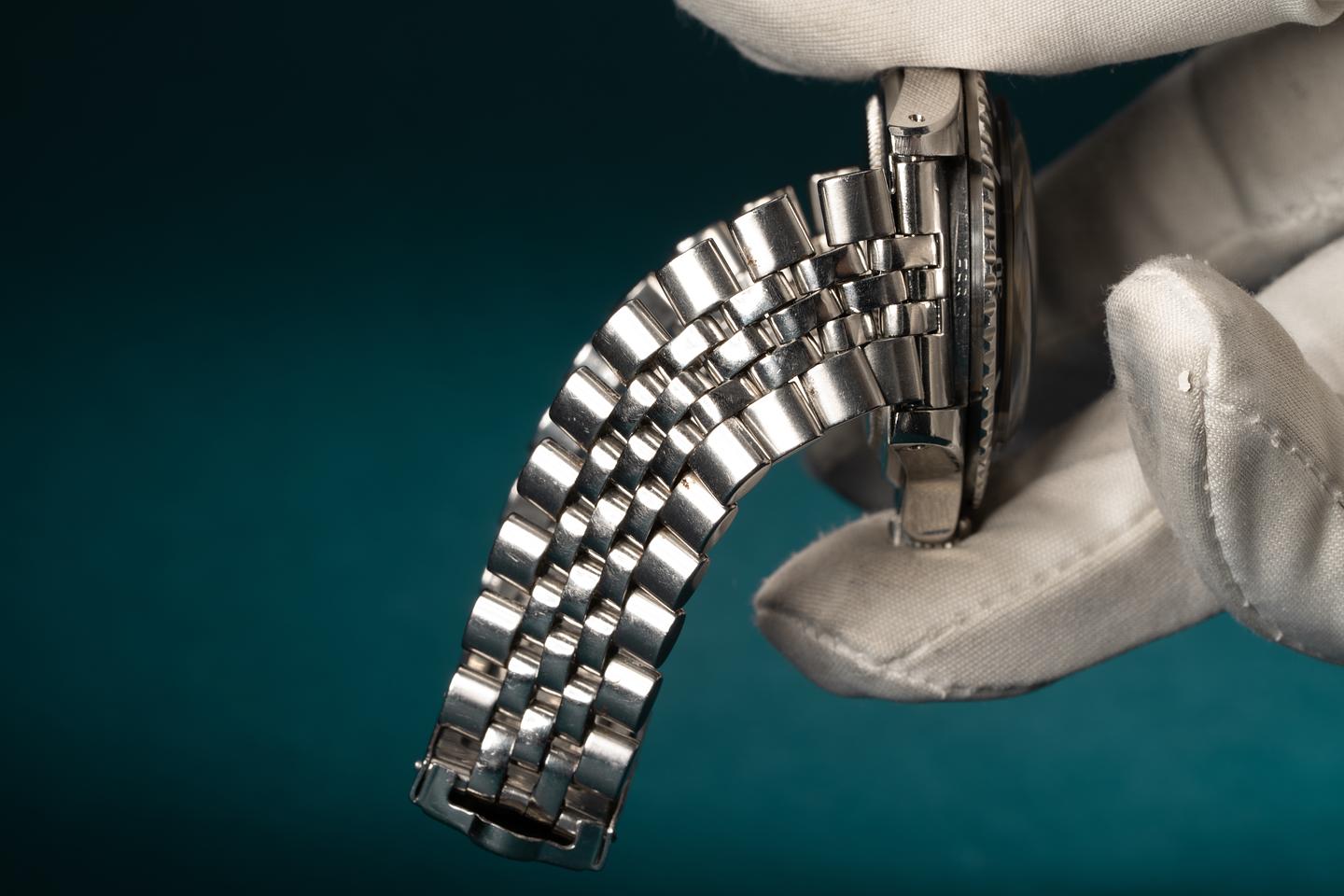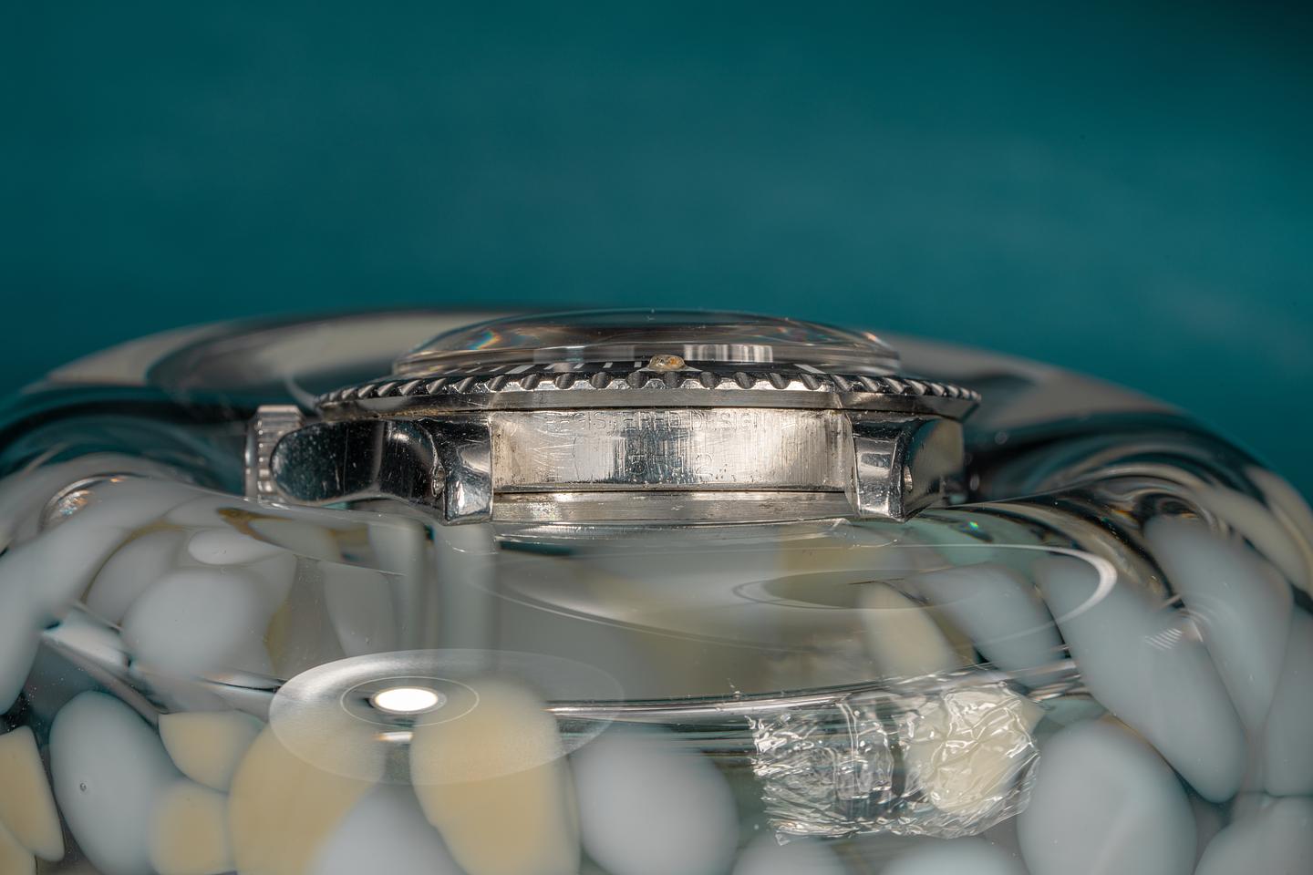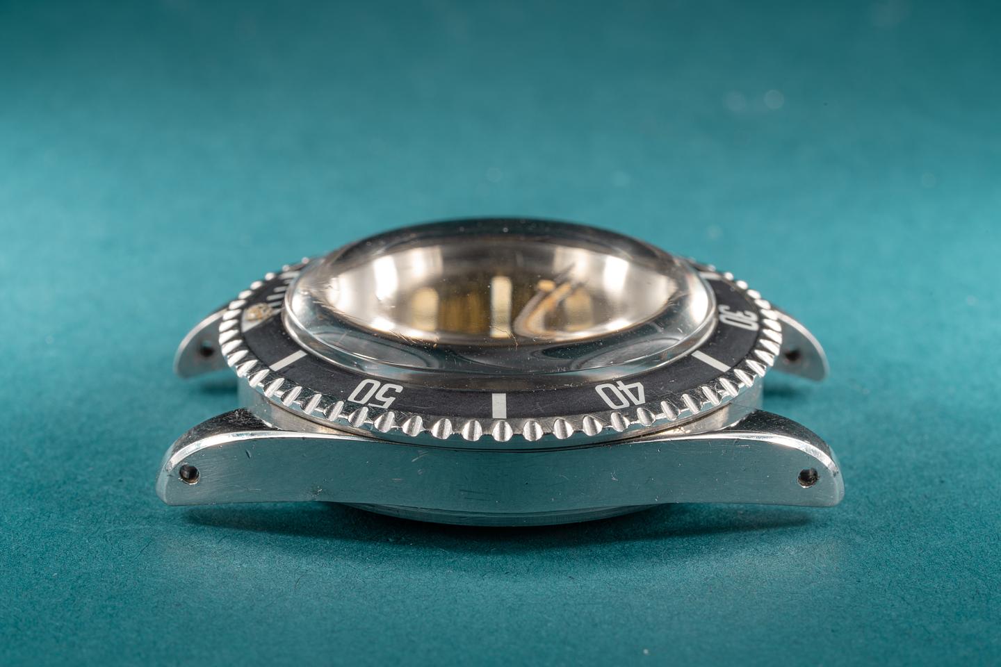 Case: The excellent case features wide prominent bevels and shows light wear for its age. The long 5 fat font bezel insert is also in excellent condition and shows light wear. The insert has faded to a satin graduated medium grey.