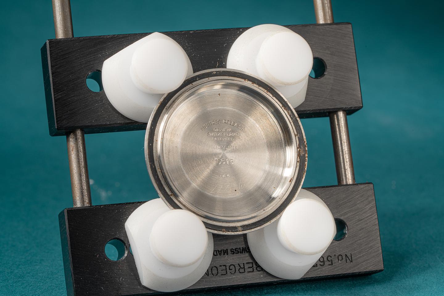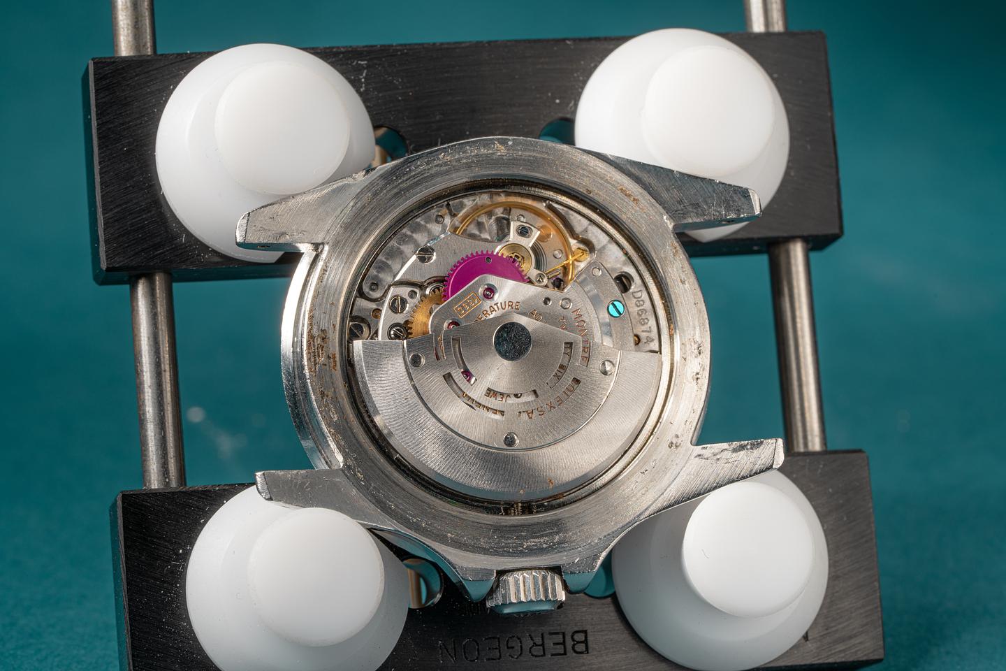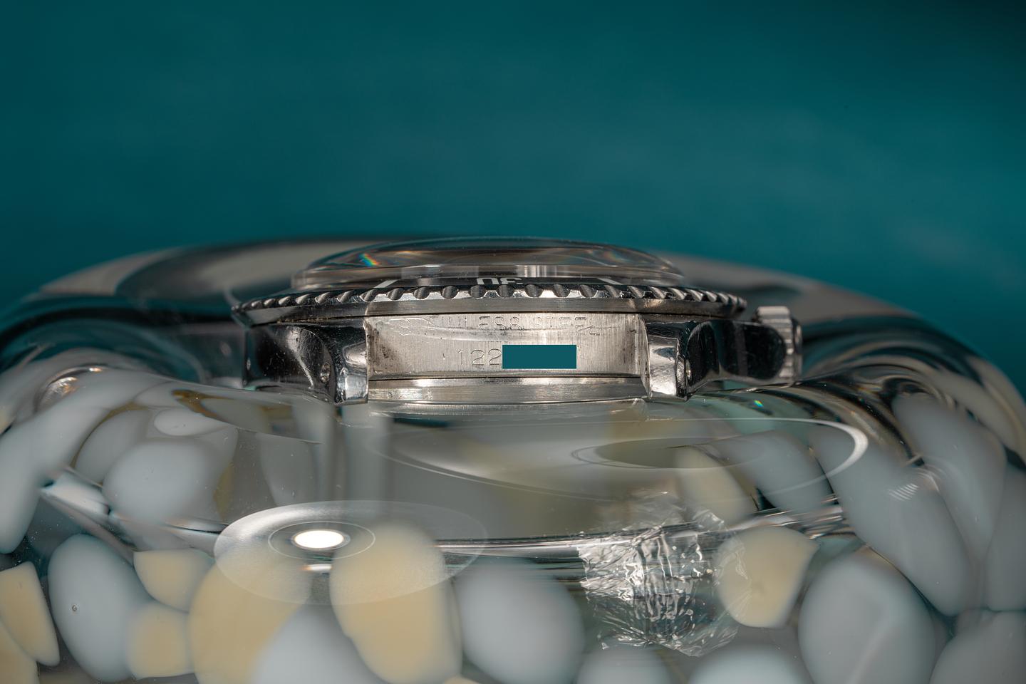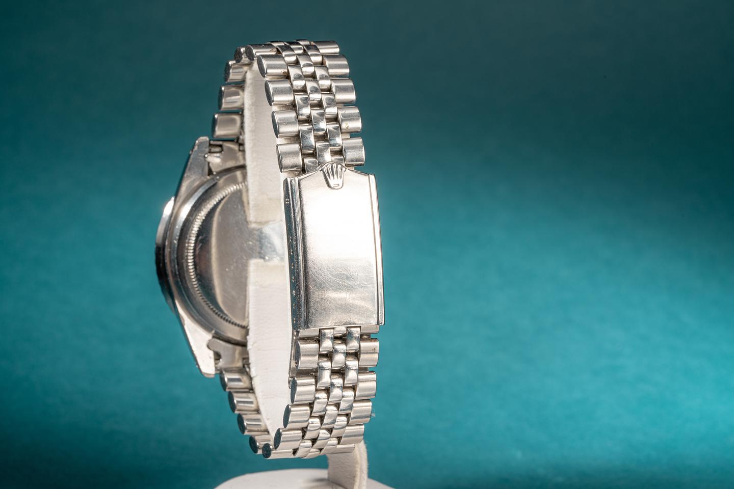 Case: The excellent case features wide prominent bevels and shows light wear for its age. The long 5 fat font bezel insert is also in excellent condition and shows light wear. The insert has faded to a satin graduated medium grey.