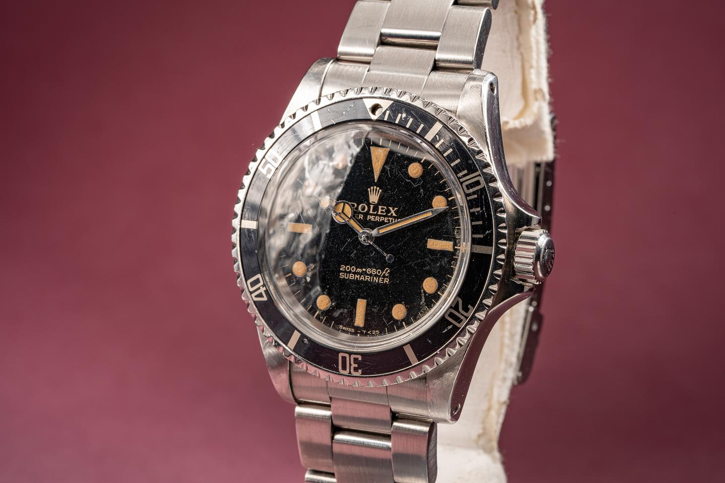 Case: Excellent case that has previously been polished and features prominent bevels. The bezel insert is also in excellent condition and shows some wear.