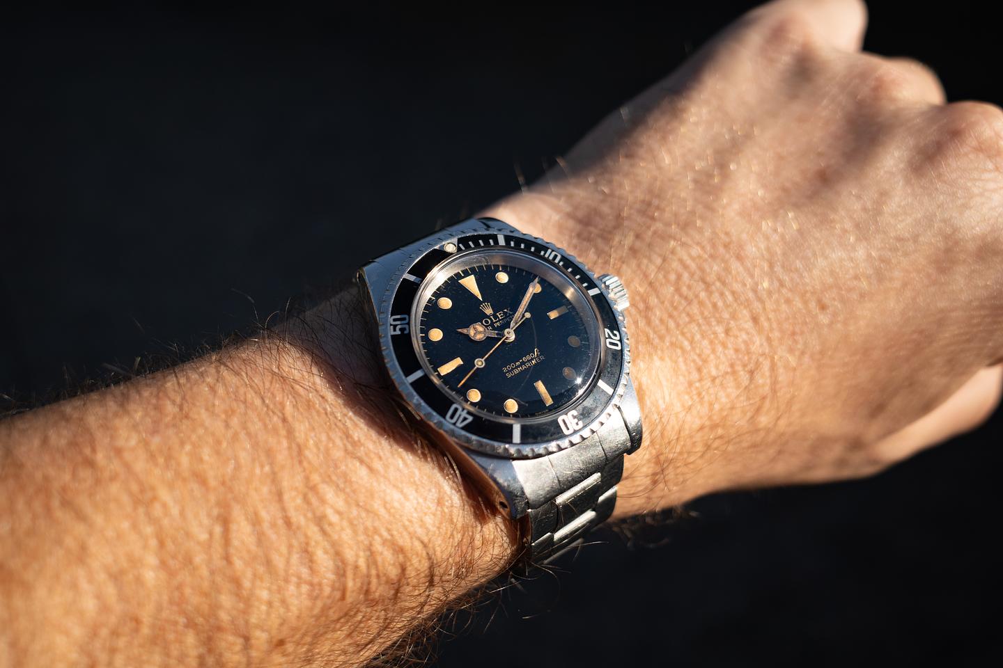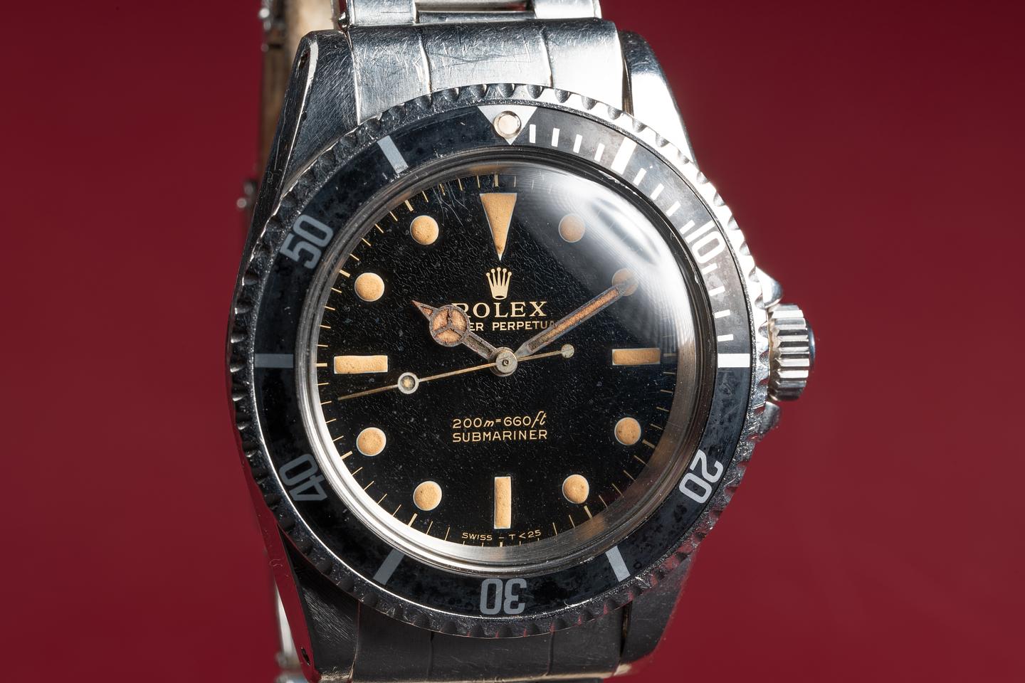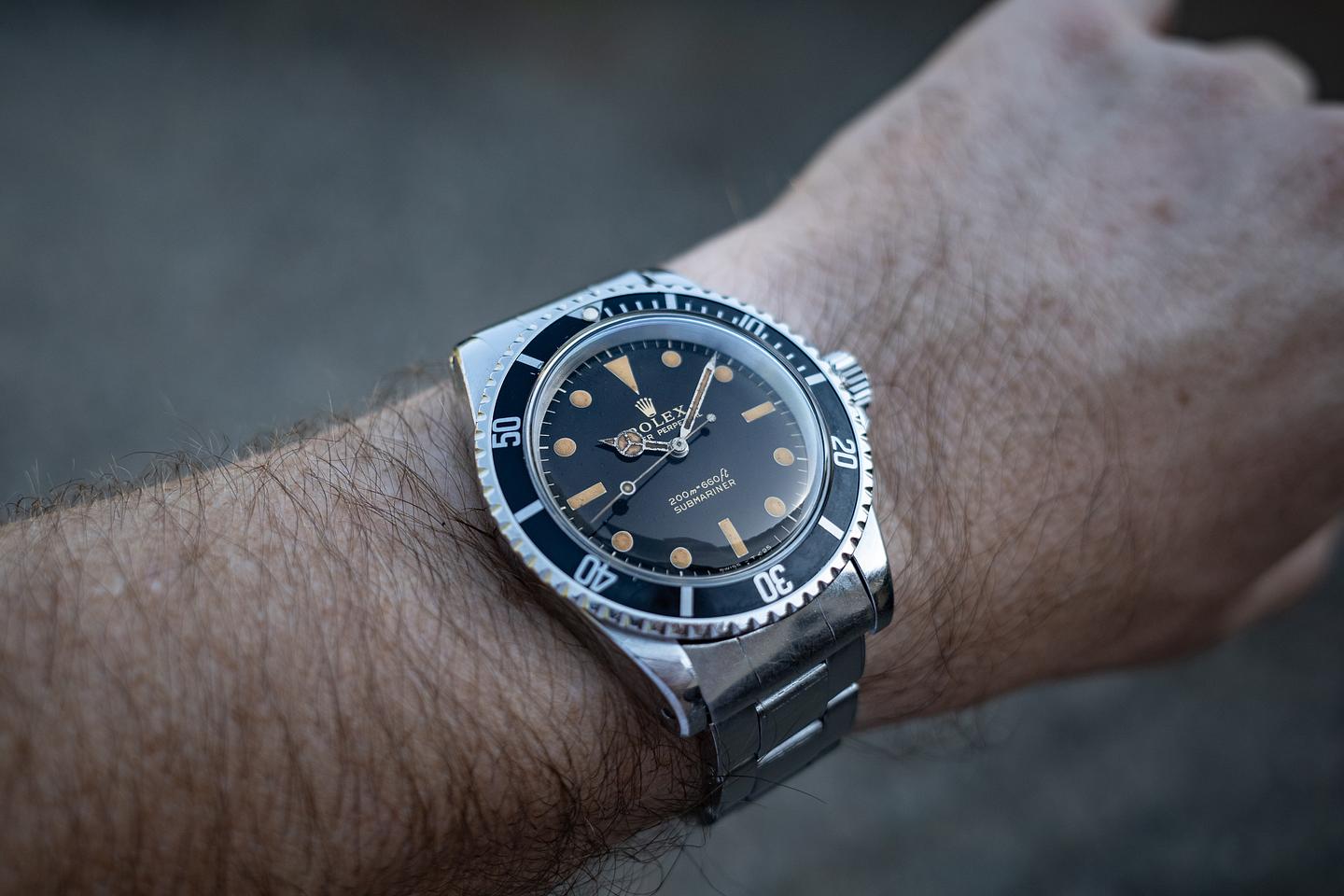 Case: The case is excellent showing wide prominent bevels and a bright sleeve polished finish. The black bezel insert is also in excellent condition showing some light wear from use.