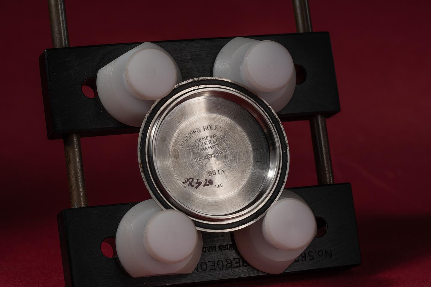 Notes: Time has woven a tight and intricate spider cracking pattern across the glossy gilt dial of this beautiful 5513.