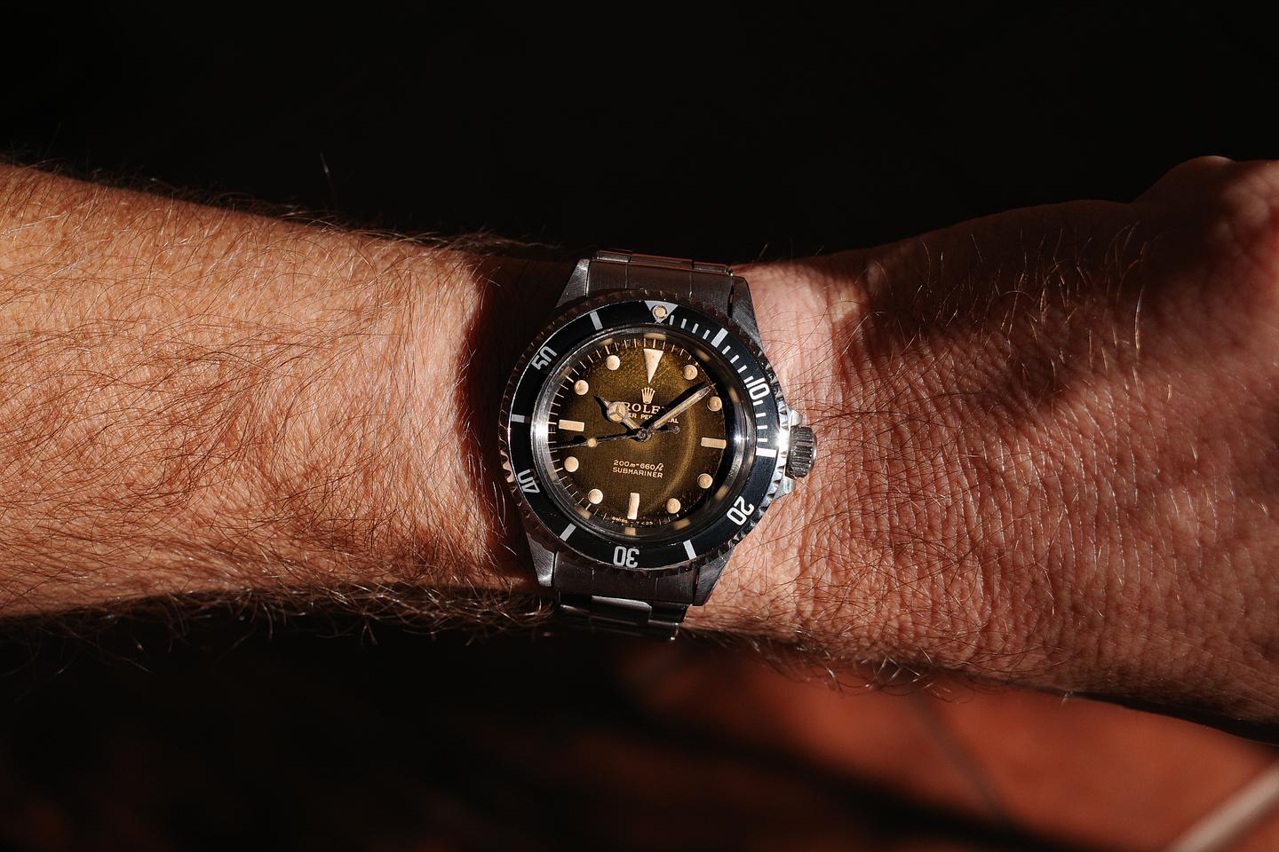 Dial: The glossy black dial is excellent and has aged with an extensive and even pattern of tropical speckling. The lume has aged to a warm vibrant creamy hue and the hands have aged just slightly darker than the lume on the dial.