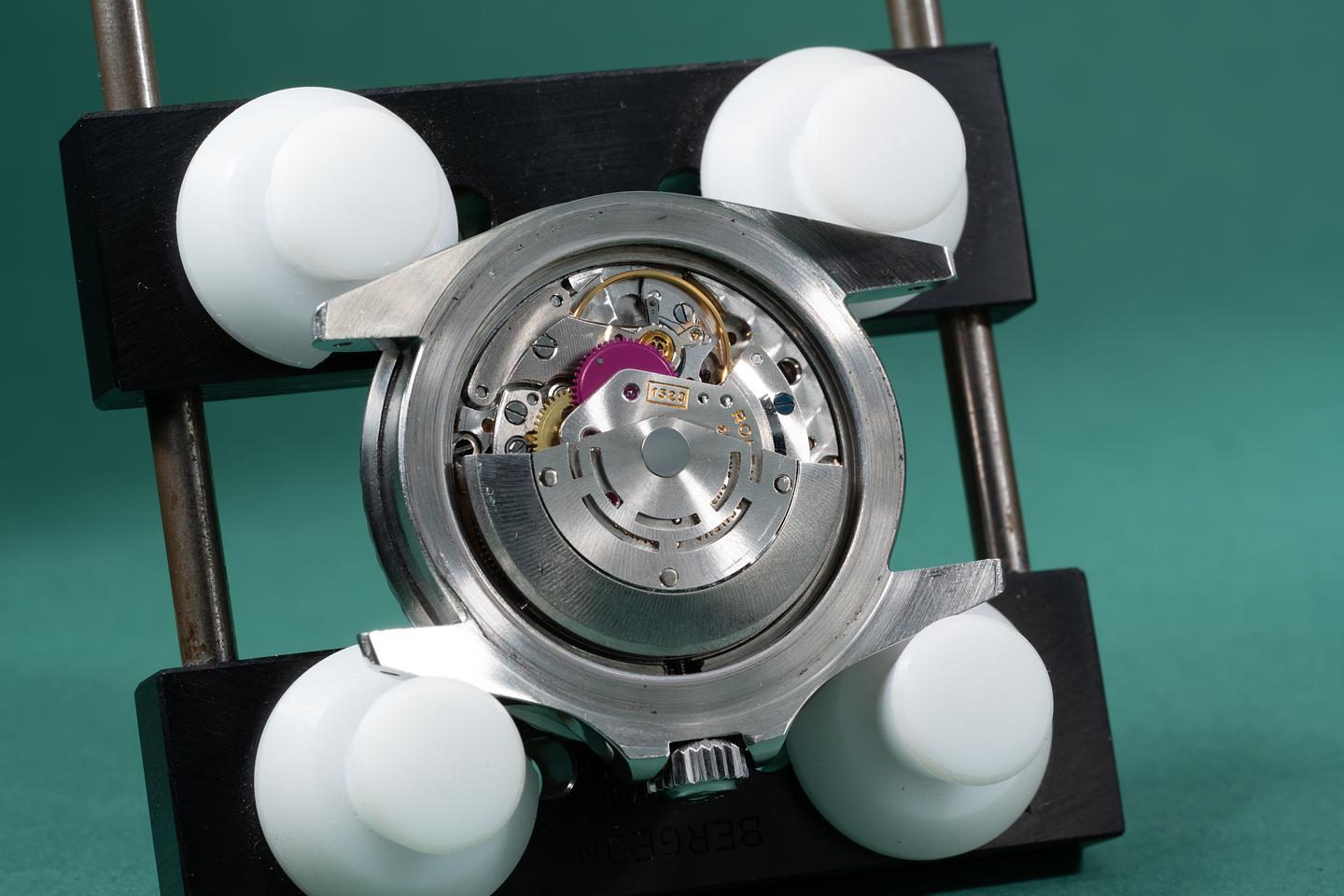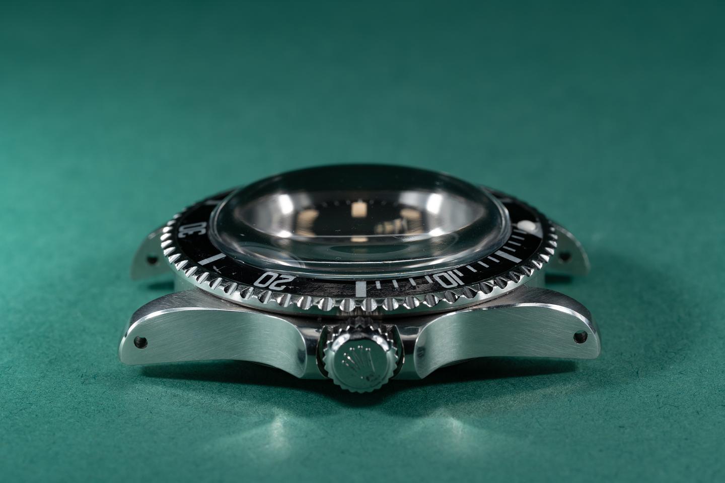 Case: The previously polished case is excellent showing sharp prominent bevels and only light wear from use. The black fat font "kissing 40" bezel is also in excellent condition showing some light wear from use.