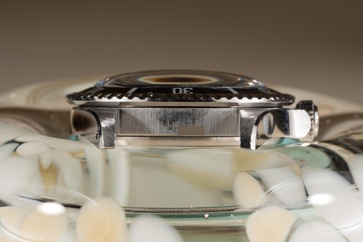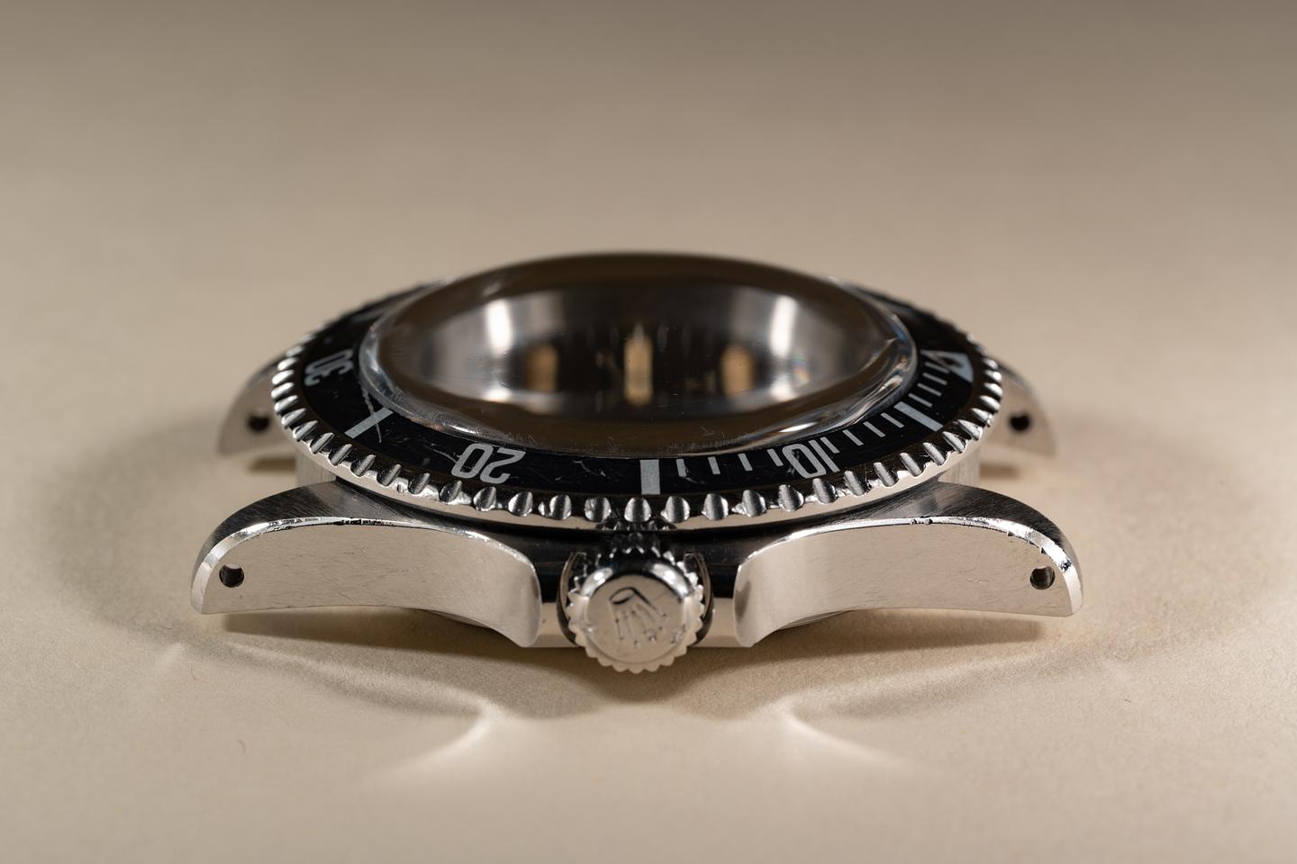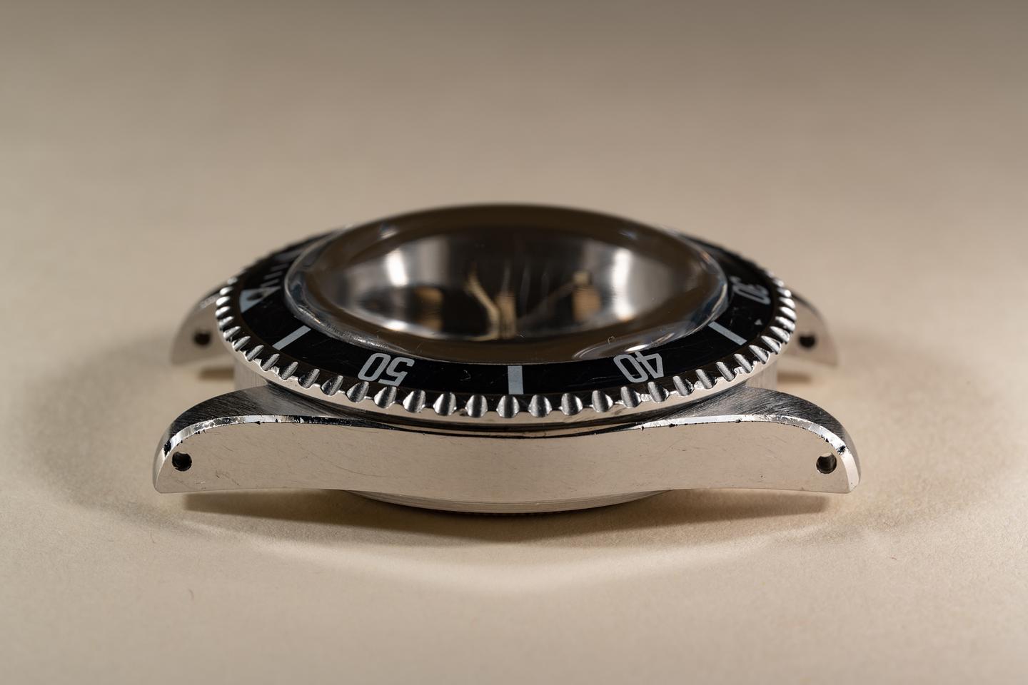 Case: The thick and even case is excellent showing wide, sharp, prominent bevels, and only very light wear from use. The matte black fat font bezel is in excellent condition showing some light wear from use.