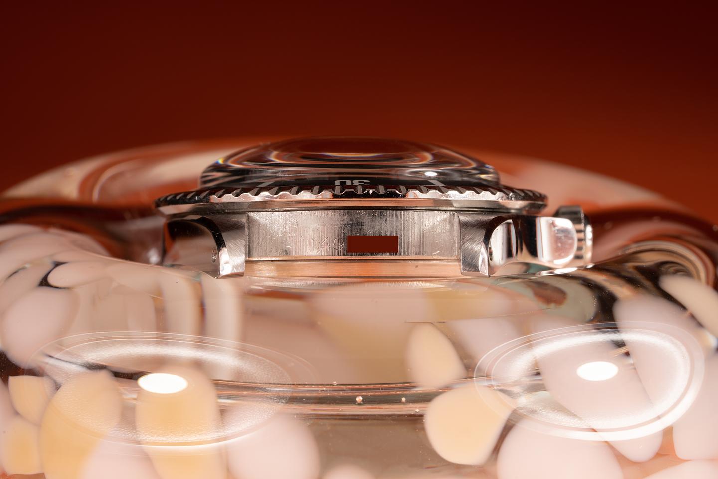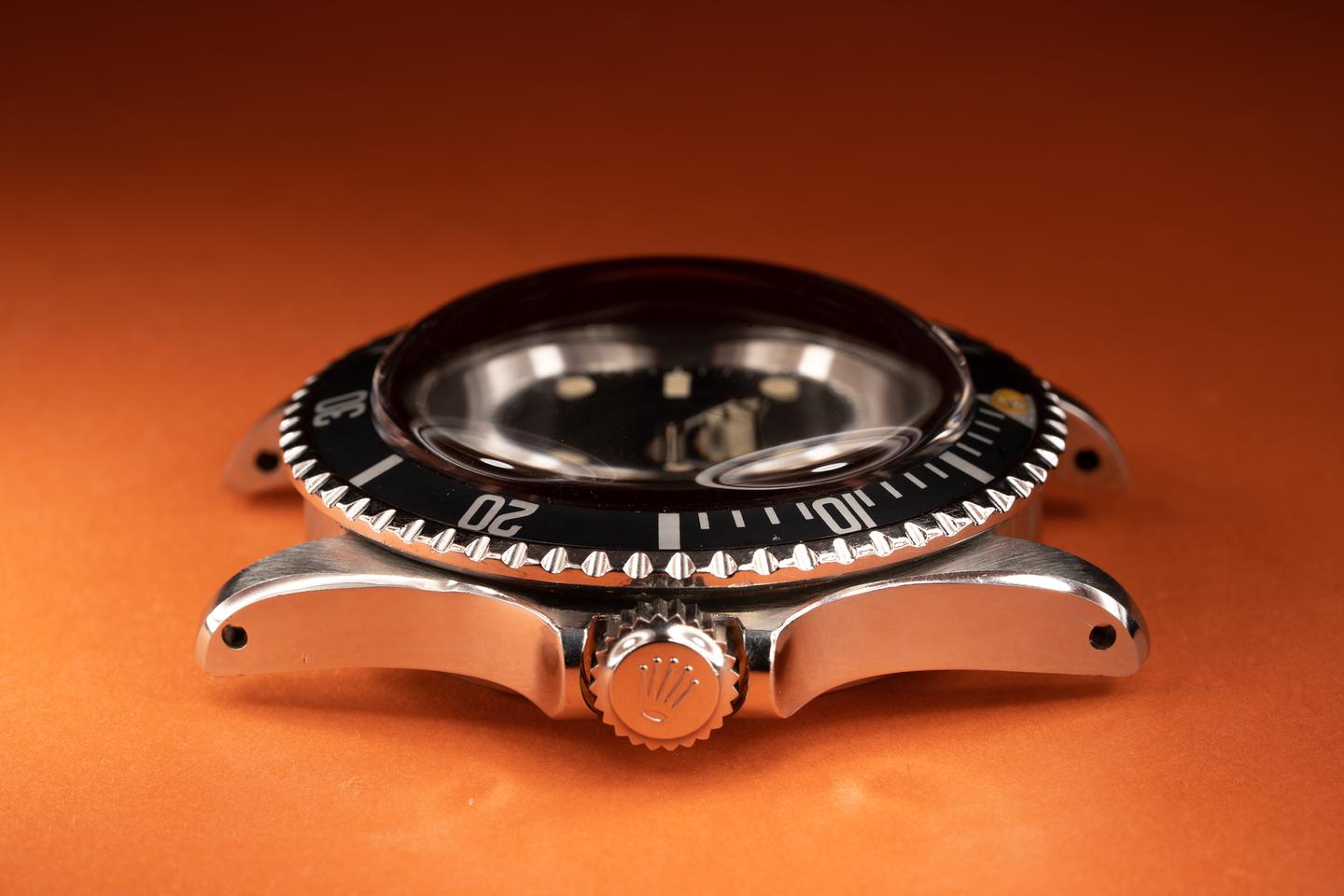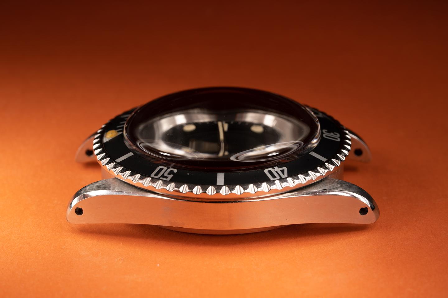 Case: The case has been polished in the past showing wide prominent bevels that closely resemble the factory profile. The black fat font bezel insert is also in excellent condition and has faded to a dark satin charcoal.