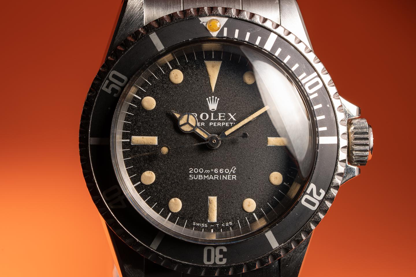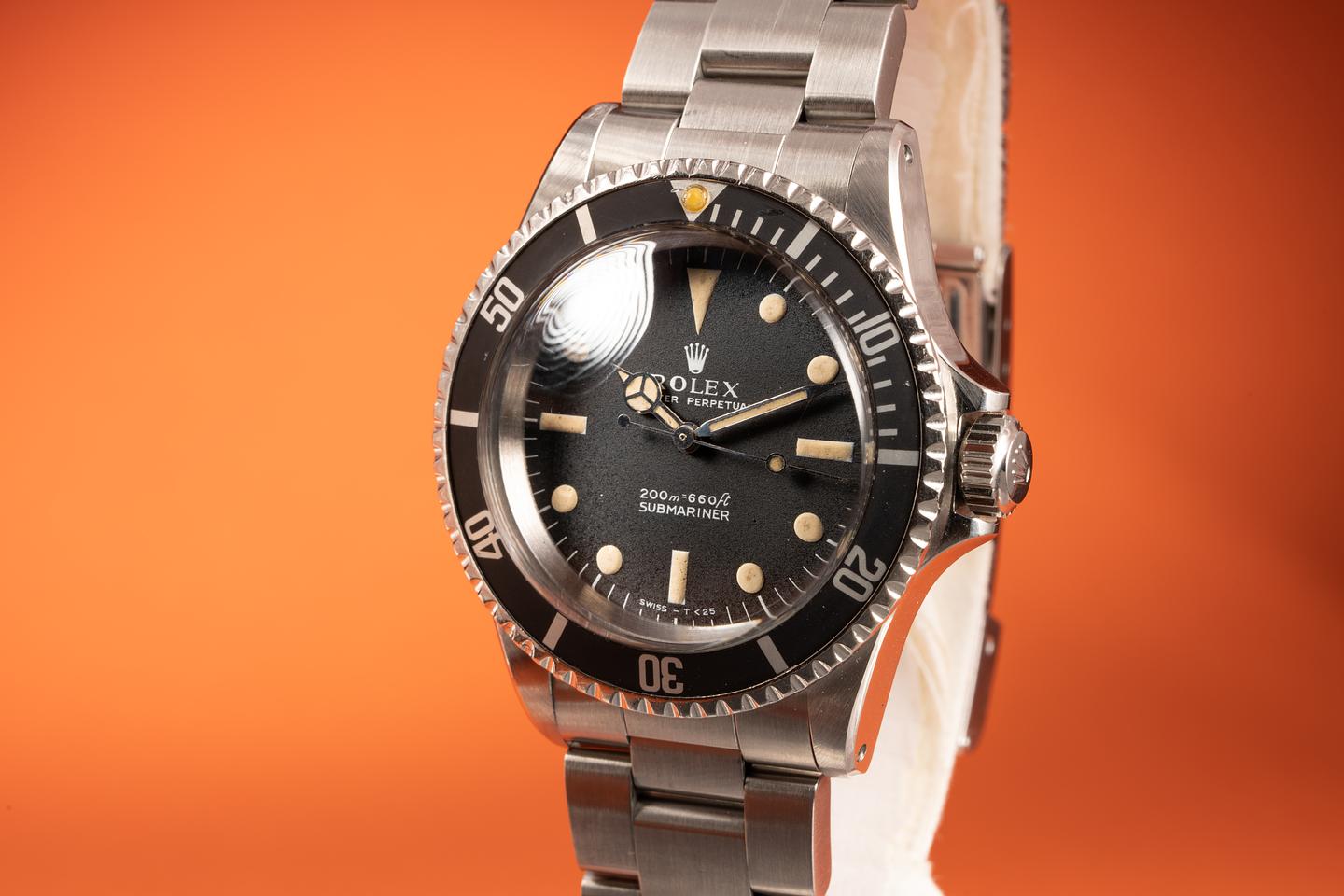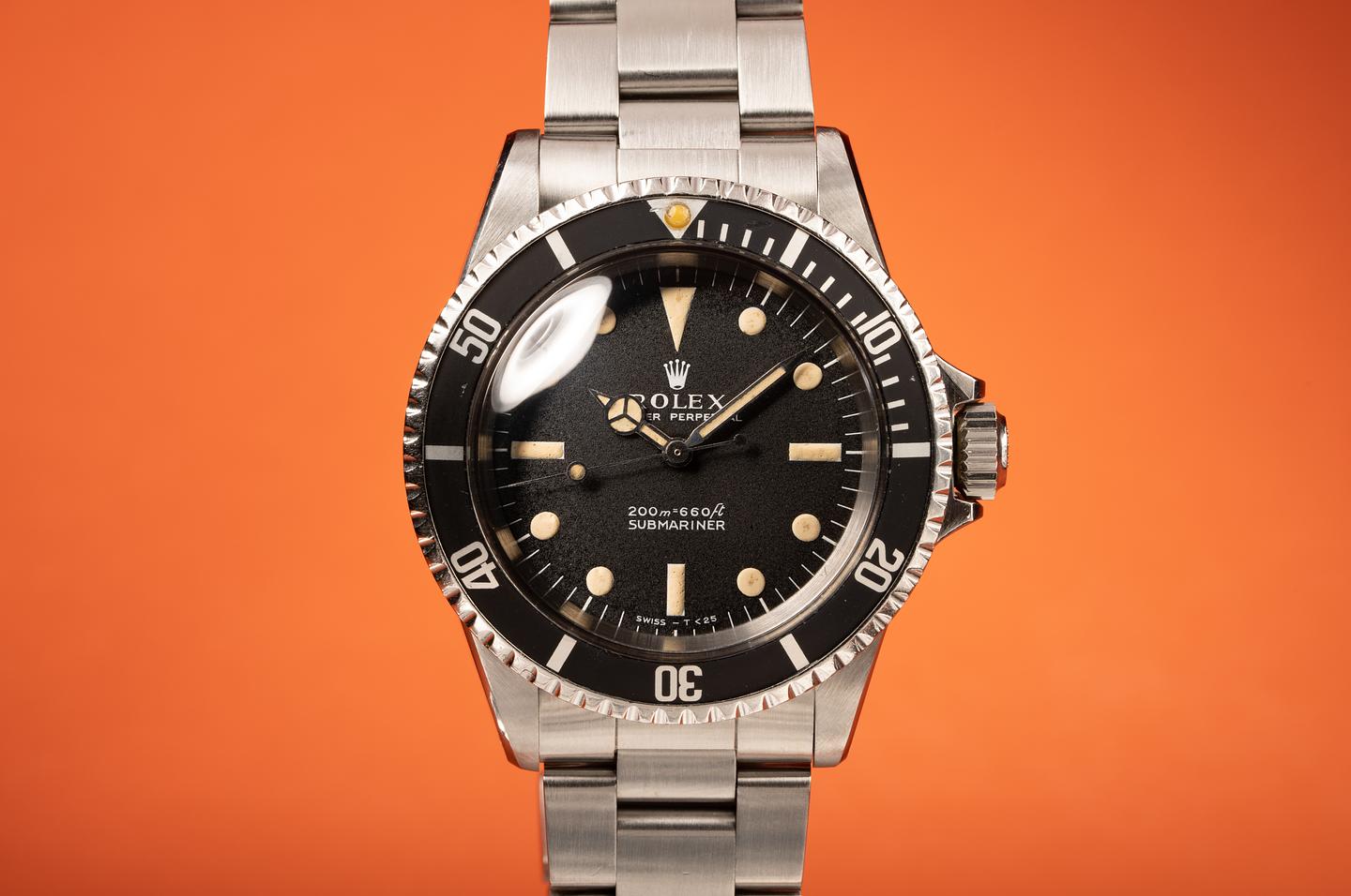 Case: The case has been polished in the past showing wide prominent bevels that closely resemble the factory profile. The black fat font bezel insert is also in excellent condition and has faded to a dark satin charcoal.