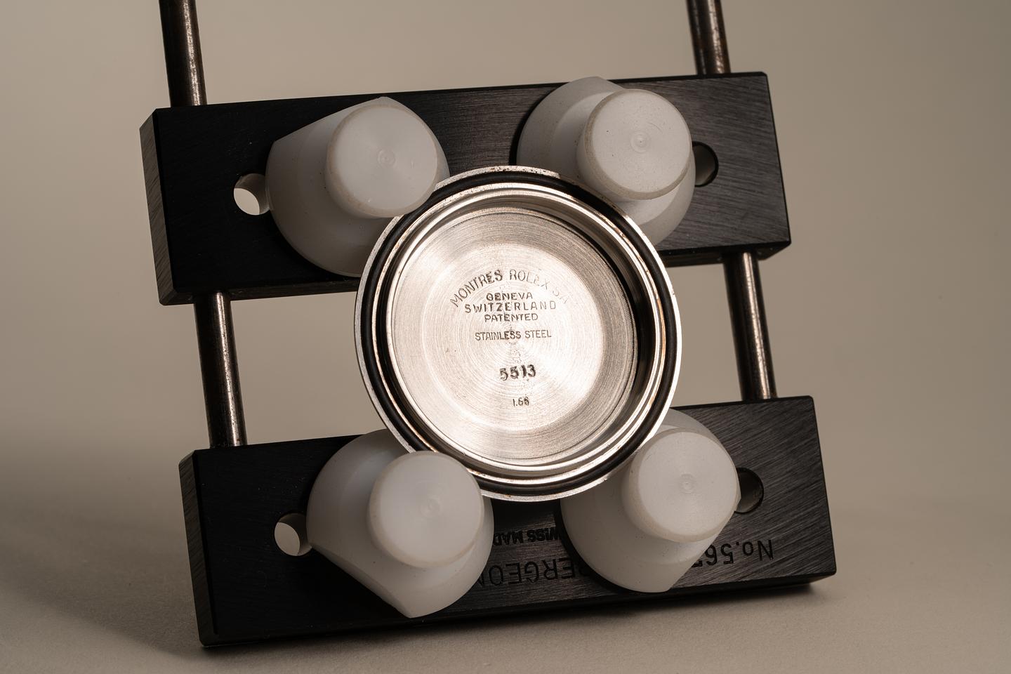 Dial: Excellent extremely glossy gilt 5513 dial. The surface of the dial has extremely minor wear and a little more obvious damage near the 55-58 min marker edge. The hands have beautifully patinated over time. The luminous on the dial is not chipped and has aged to a beautiful creamy orange hue. Both the dial and hands glow briefly when exposed to UV light which is correct for this era of dial.