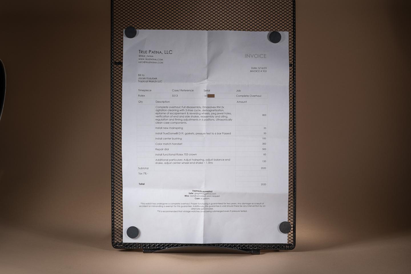 Accessories: May 2023 Service Papers from True Patina.