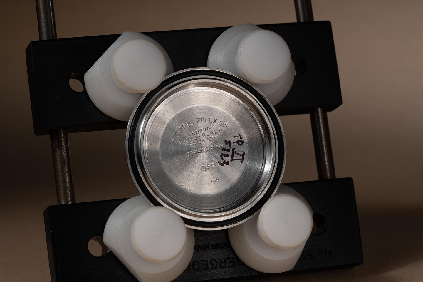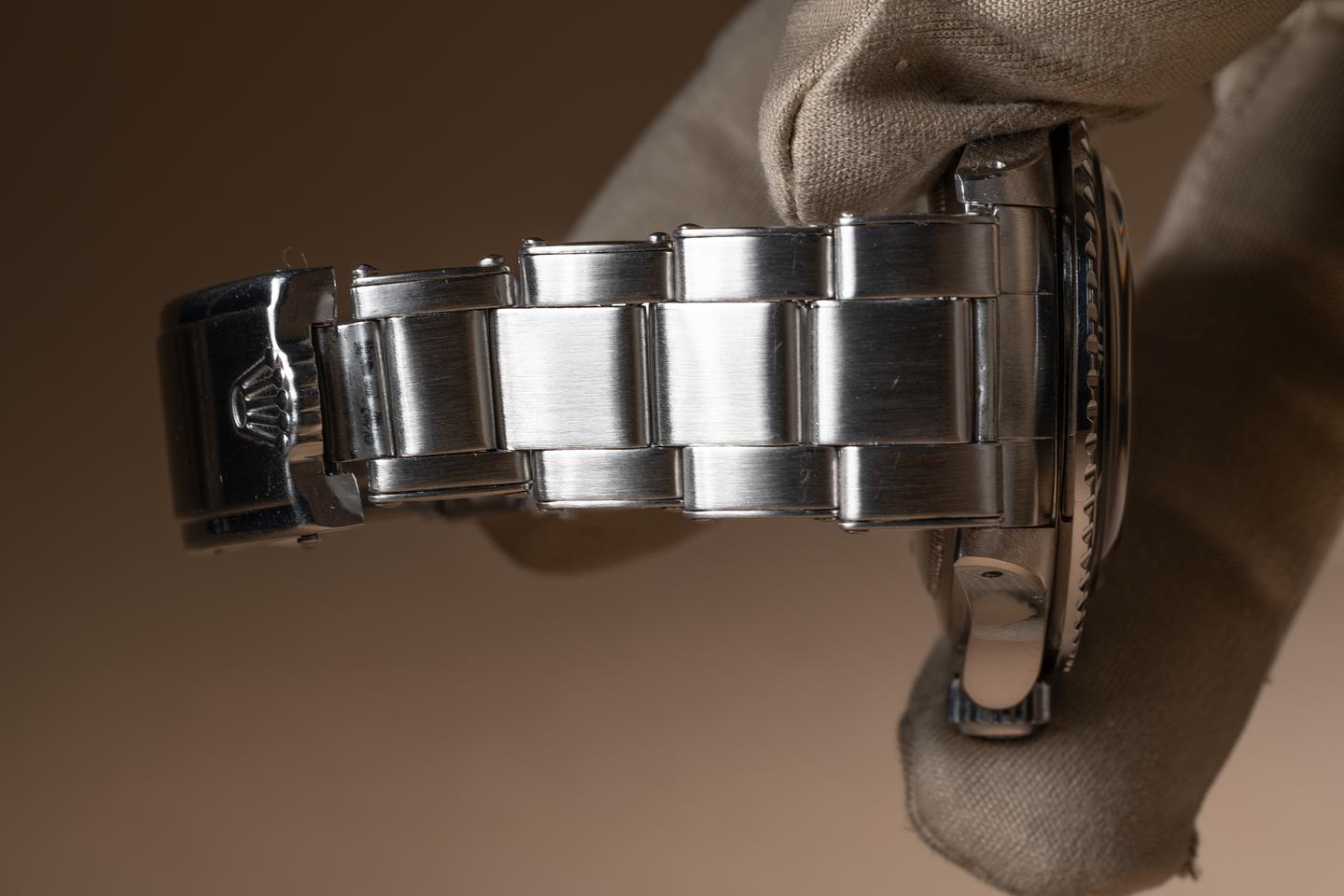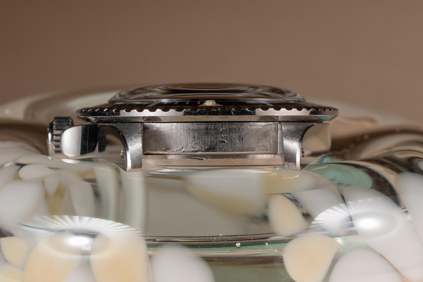 Case: The case is excellent showing sharp prominent bevels and only light wear from use. The black bezel insert is also in excellent condition showing only light wear from use.
