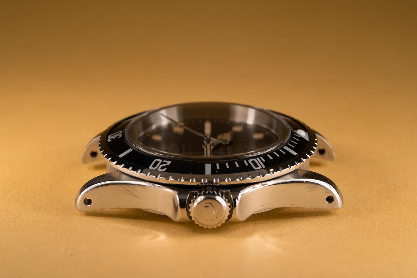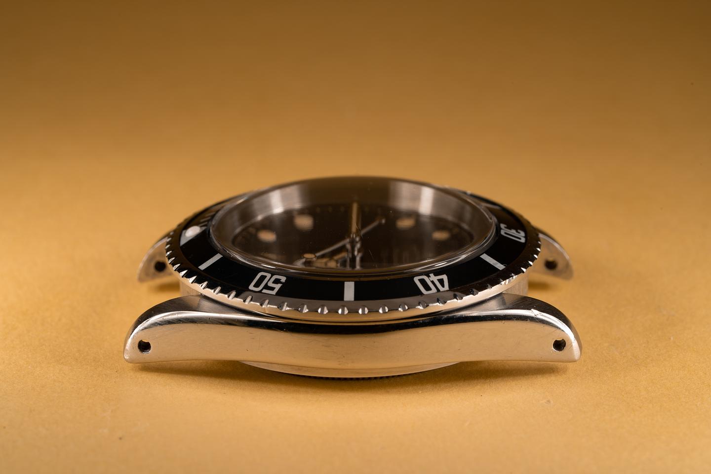 Case: The previously polished case is excellent showing some light wear from use. The black fat font bezel is also in excellent condition and has faded to a very dark navy blue.