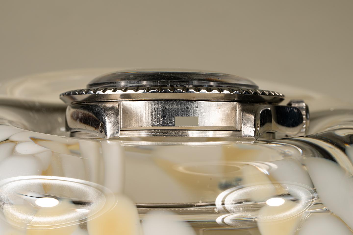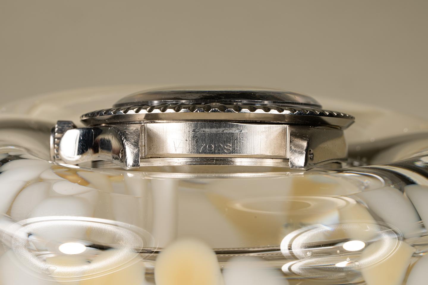 Case: Excellent case that has been polished in the past and shows average wear for its age. The fat font bezel insert is also excellent and shows light wear for its age. The crystal has 2 small chips one over the 8 and one over the 9 o'clock marker.