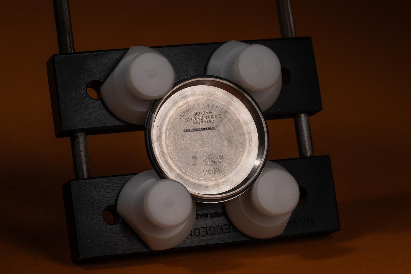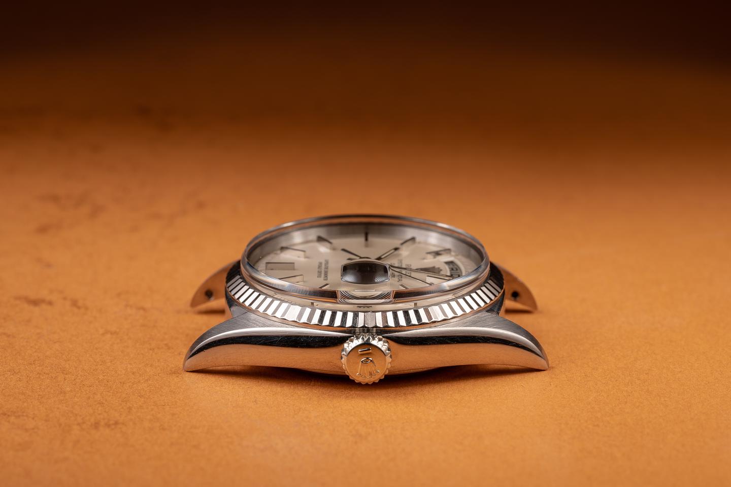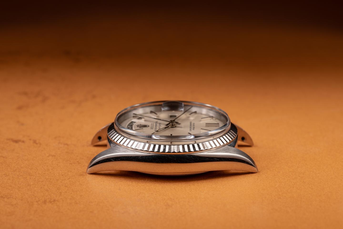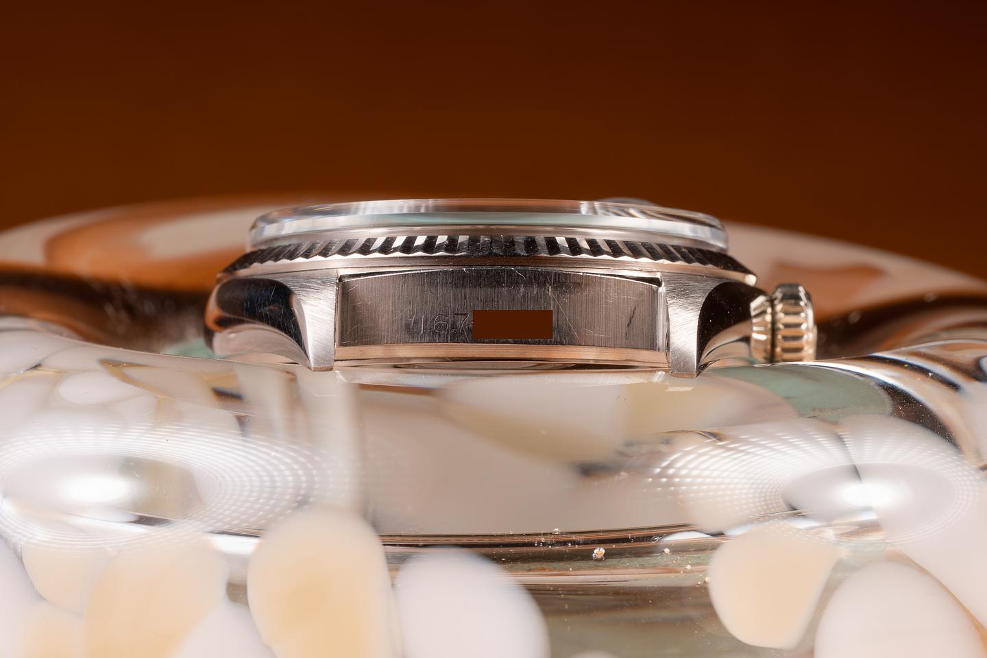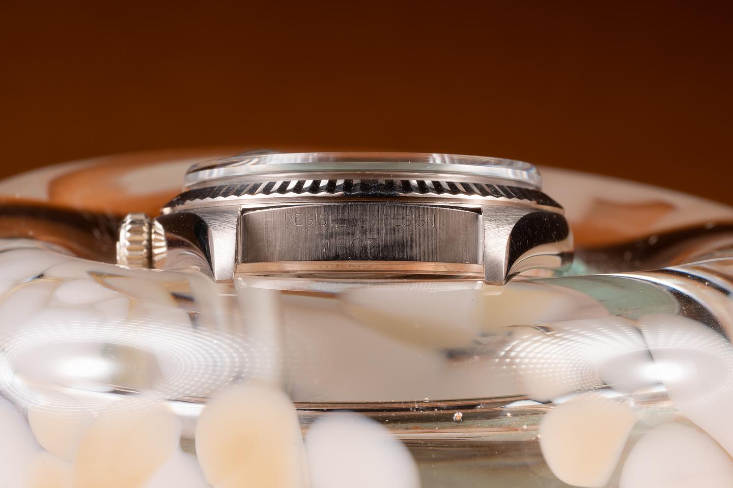Case: The sharp 18K white gold case is excellent, showing only very light wear from use. The sharp 18K white gold fluted bezel is also in excellent condition, showing only light wear from use.