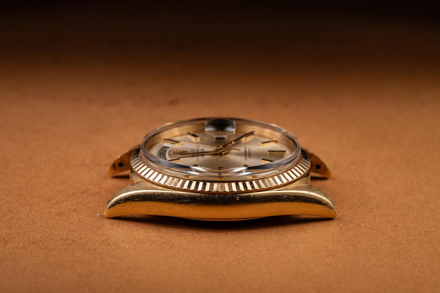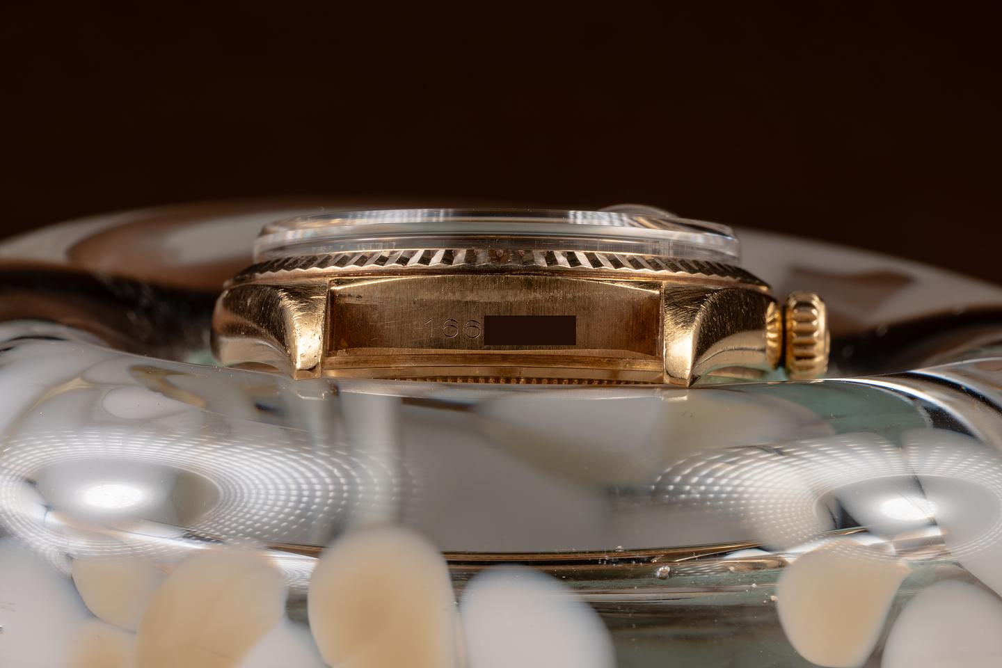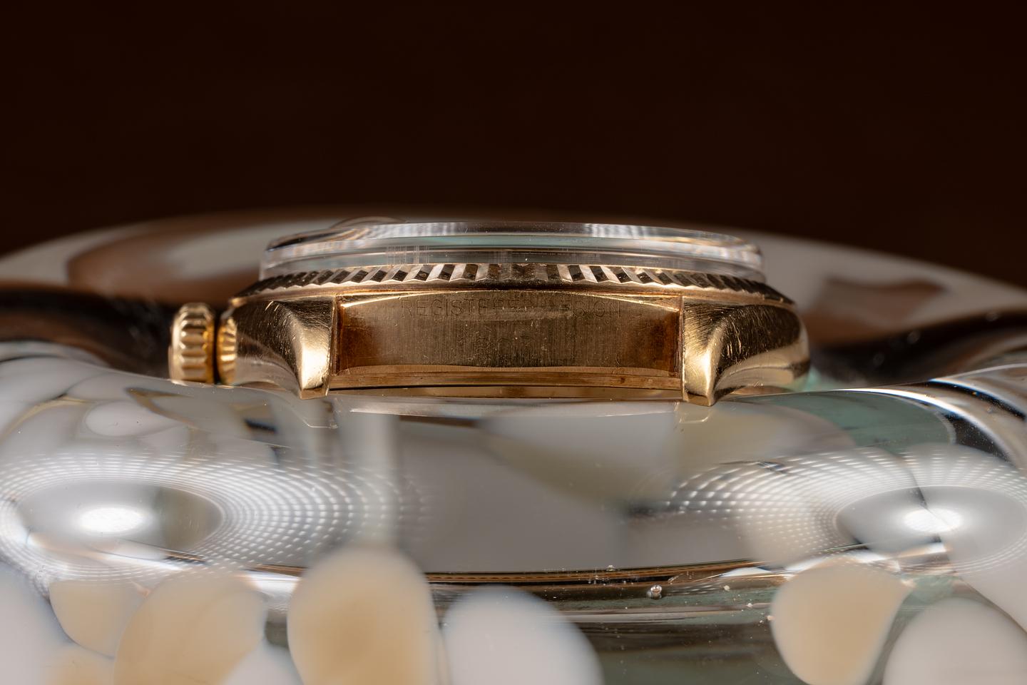 Case: The sharp 18K yellow gold case is excellent, showing only light wear from use. The sharp 18K yellow gold fluted bezel is also in excellent condition, showing only light wear from use.