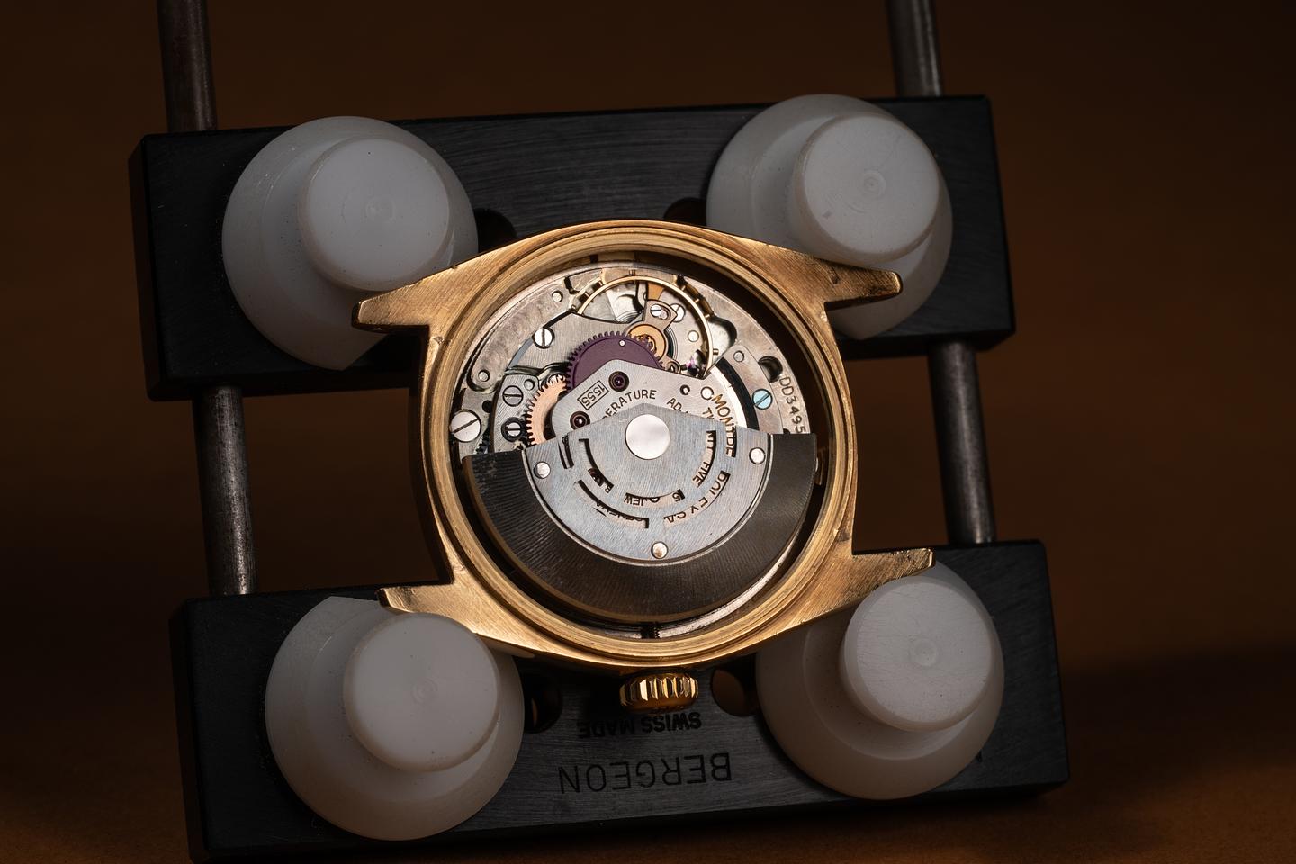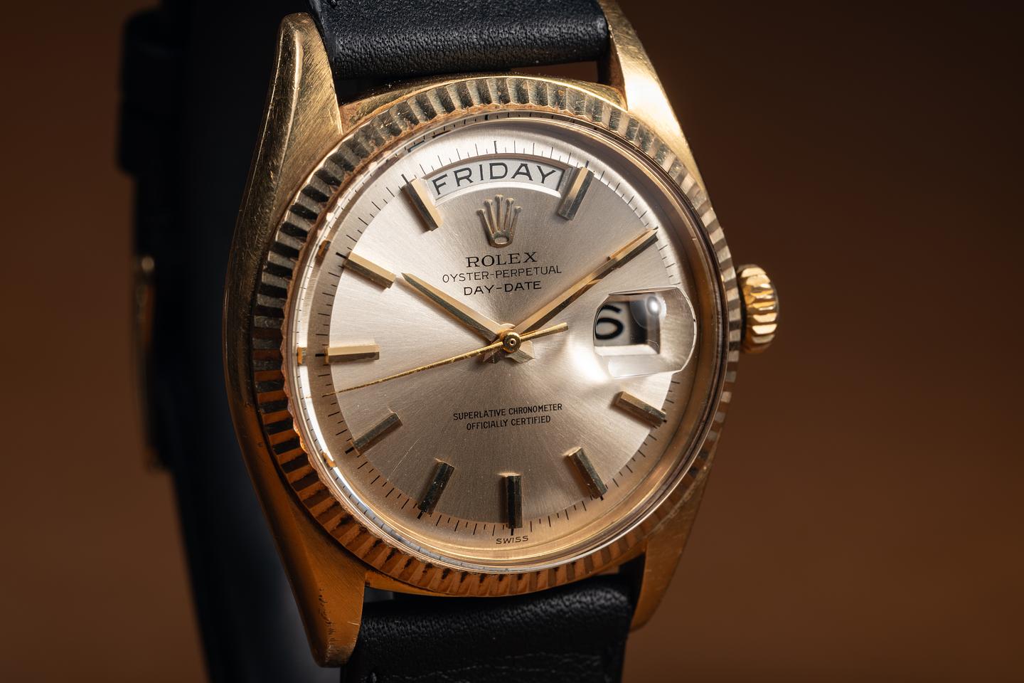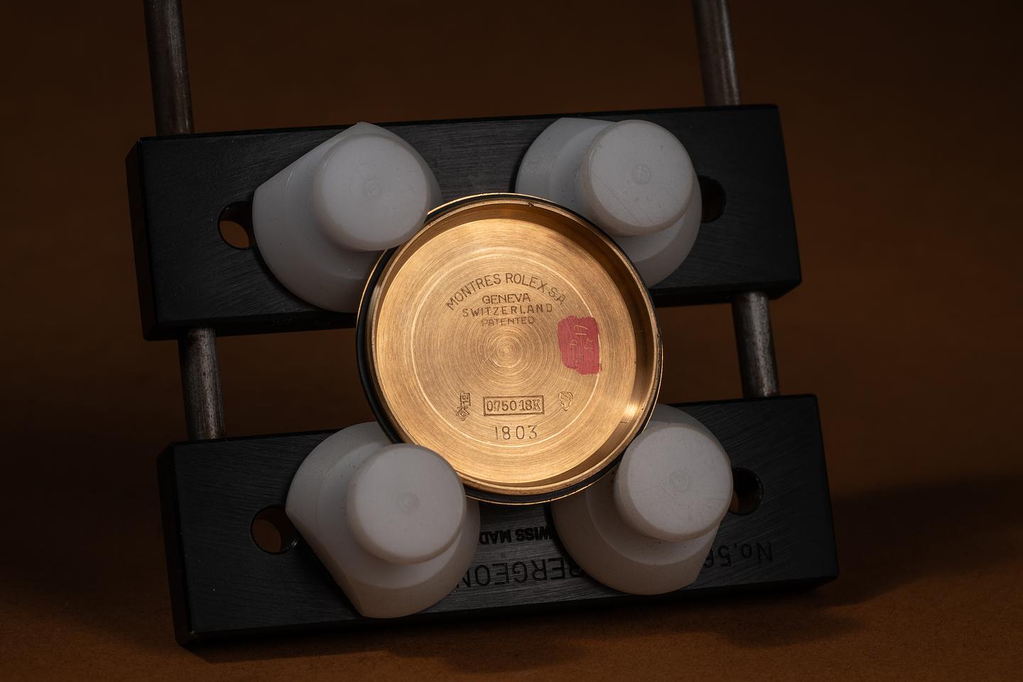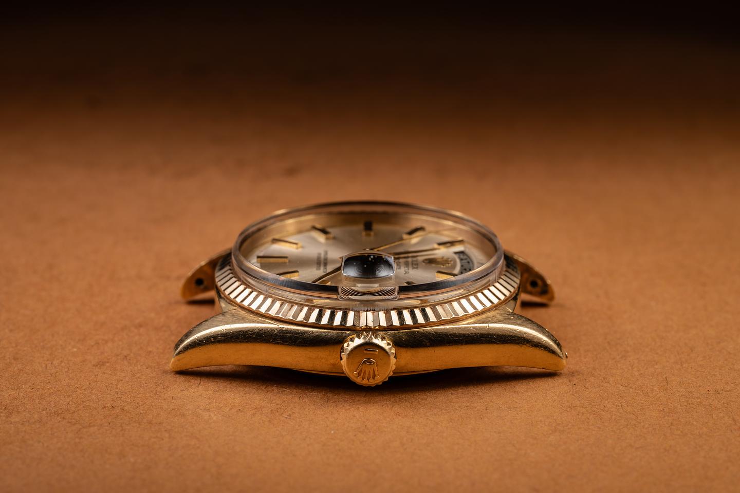 Case: The sharp 18K yellow gold case is excellent, showing only light wear from use. The sharp 18K yellow gold fluted bezel is also in excellent condition, showing only light wear from use.