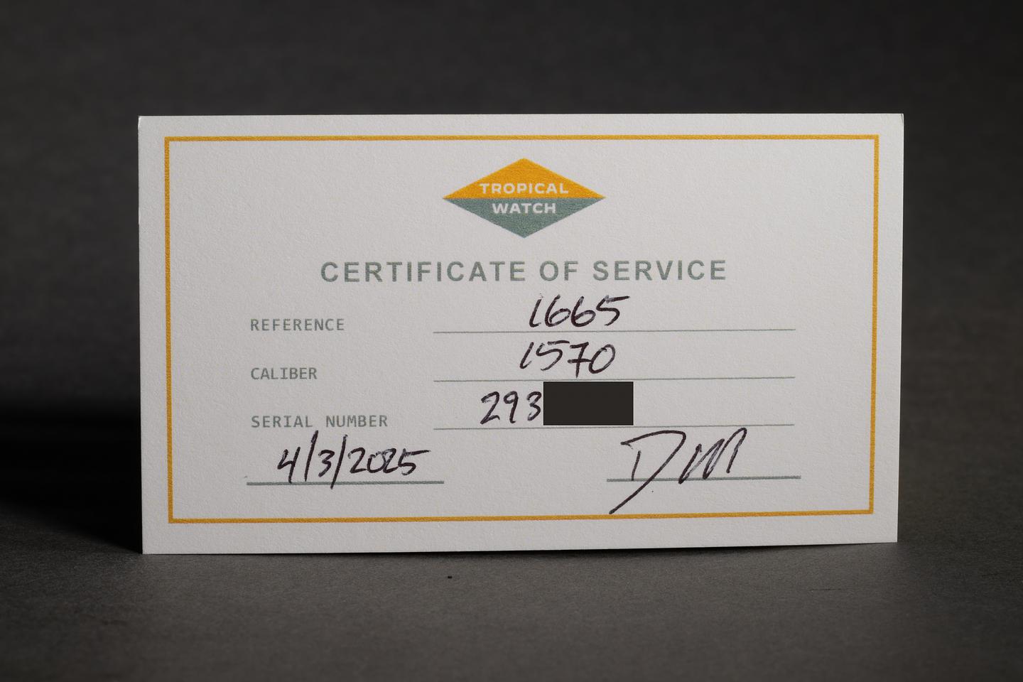 Accessories: Tropical Watch service papers dated 4/3/2025