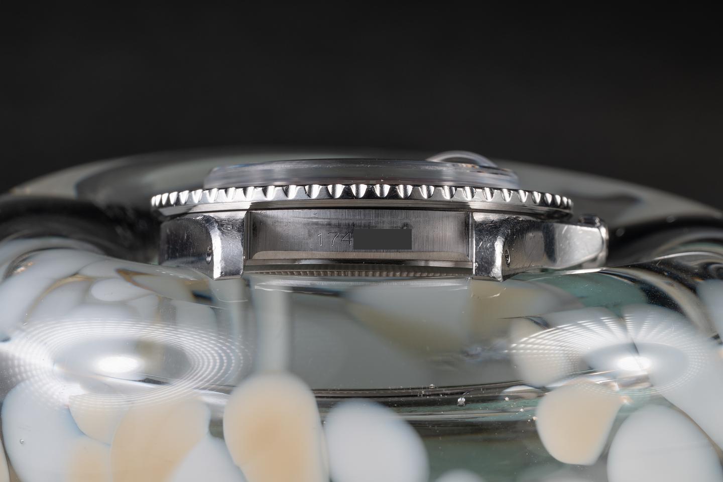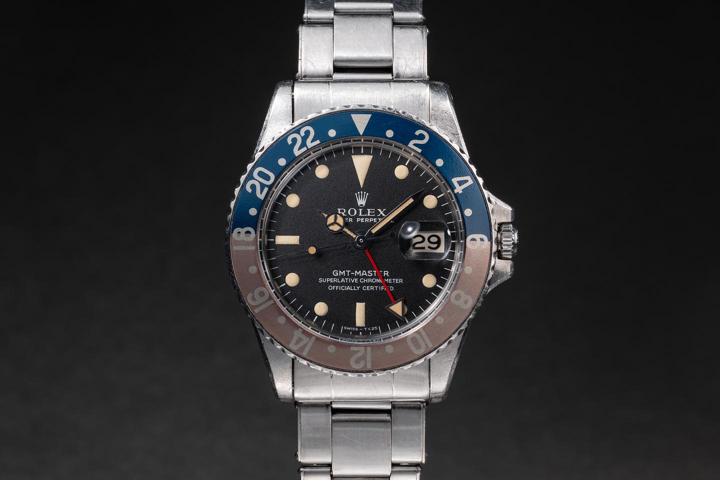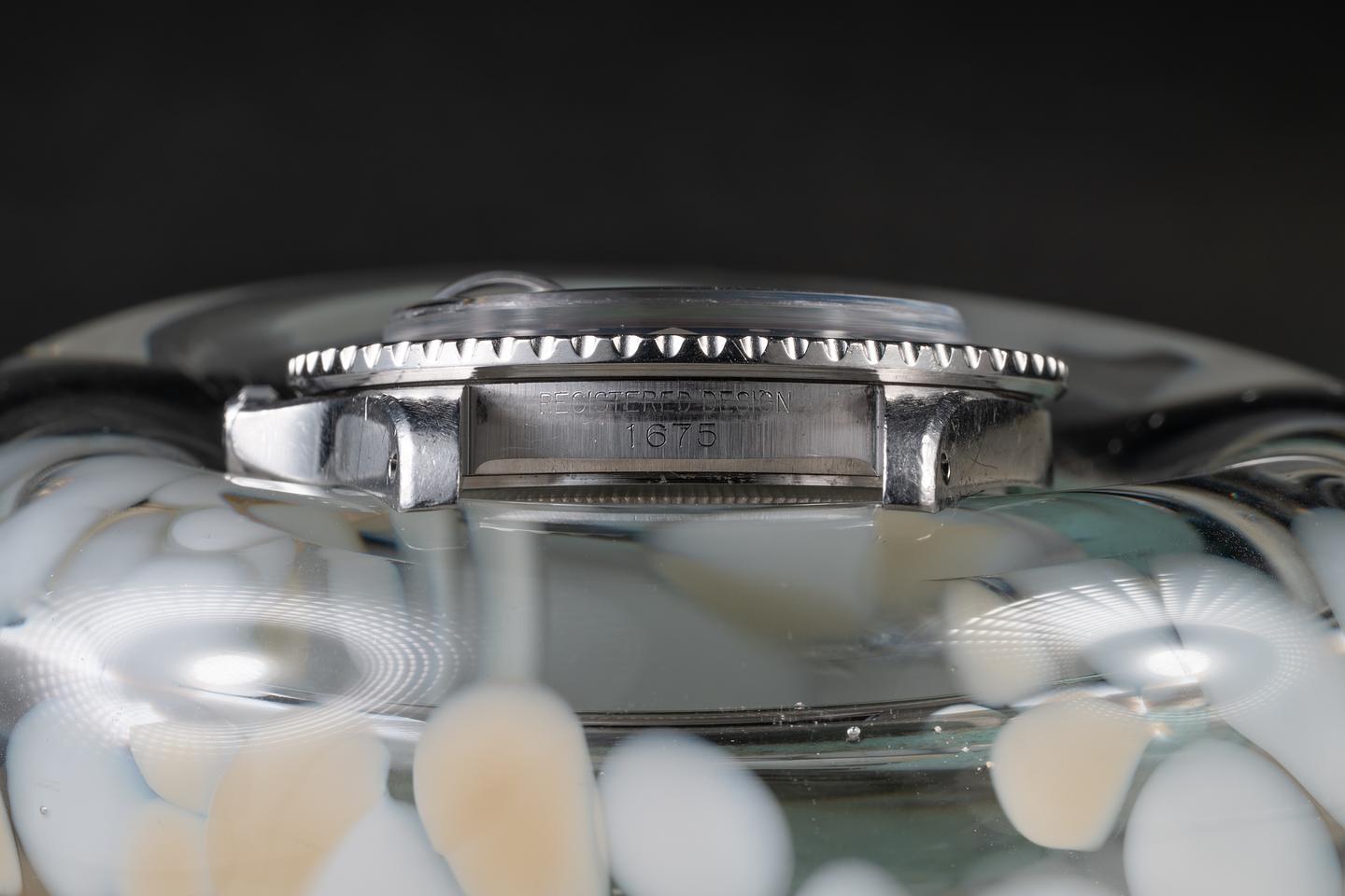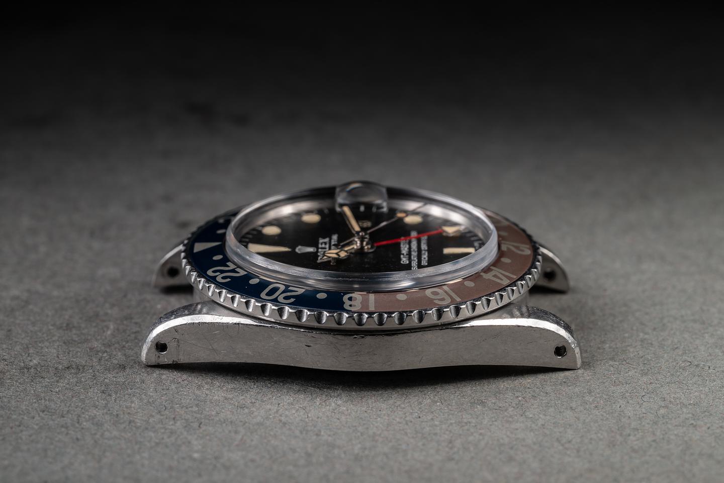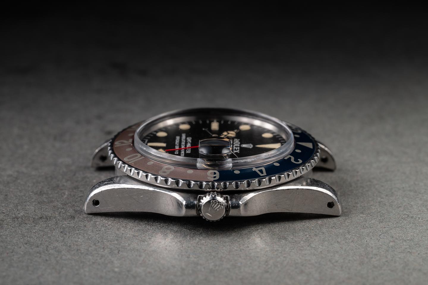 Case: The unpolished case is excellent, showing prominent factory bevels and average wear for its age. The bezel insert is also in excellent condition, showing significant fading to the red portion of the insert and only very light wear for its age.